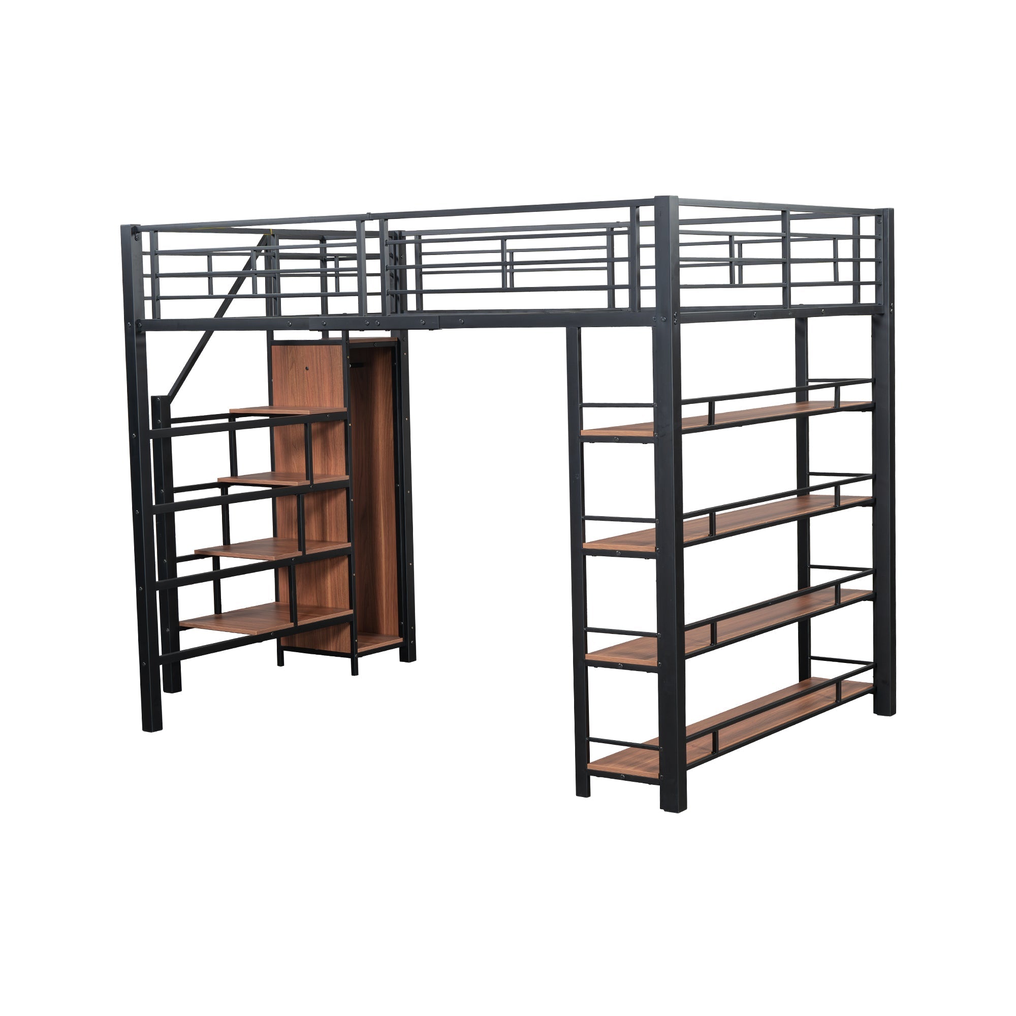 Loft Bed 140*200, Safety Stairs, Storage, Wardrobe, Shelves, Black
