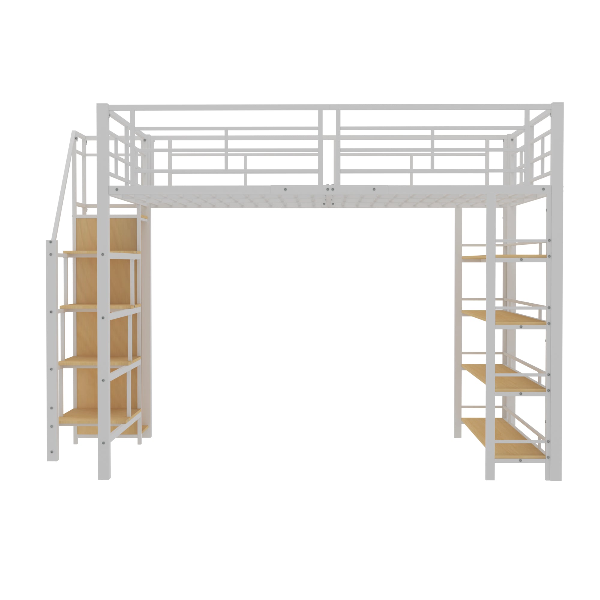 Loft Bed, 140*200 with Stairs, Storage, Wardrobe, Shelves, White