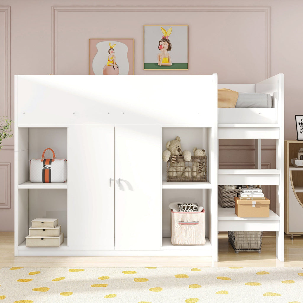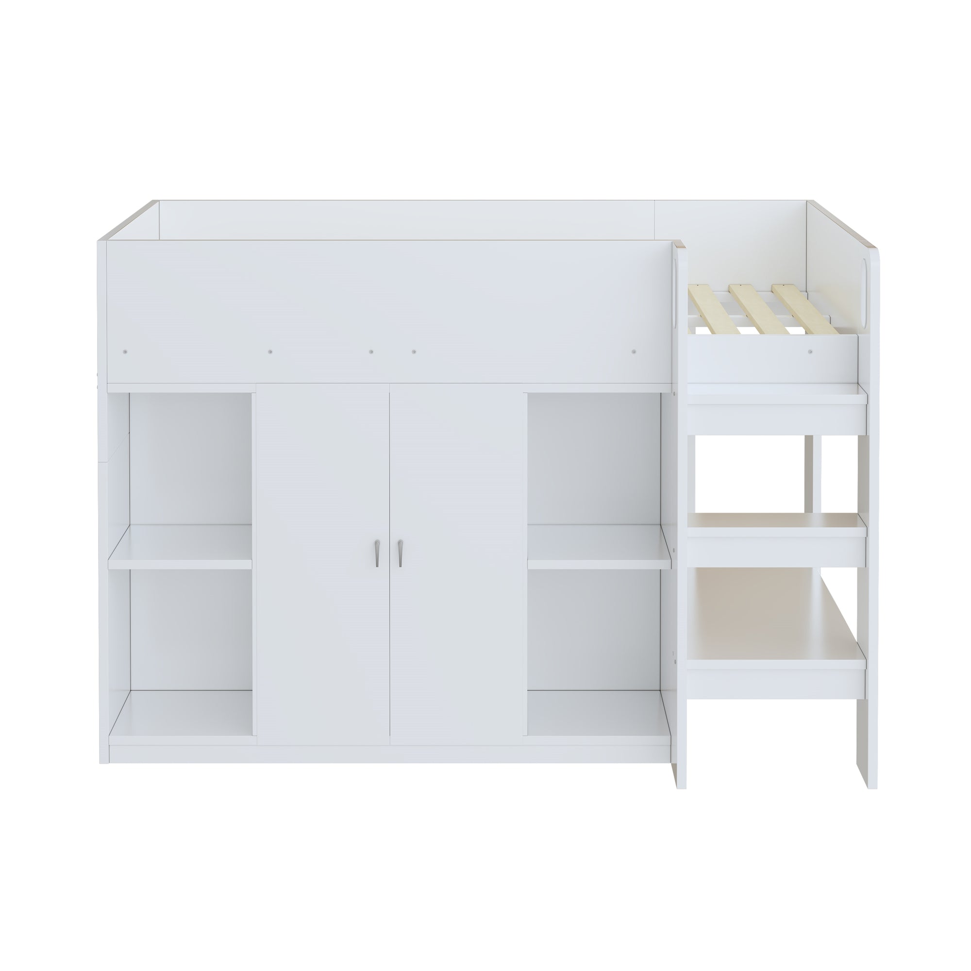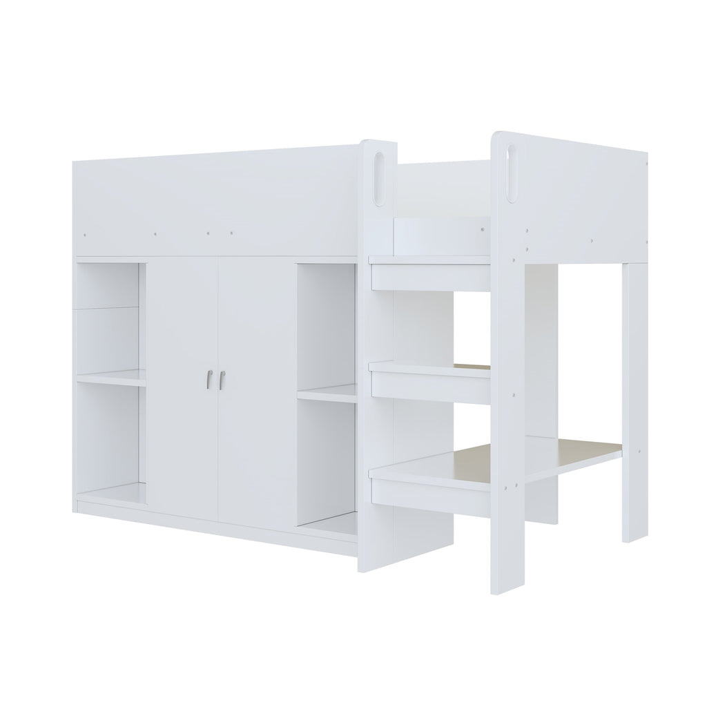 Loft Bed 90*200, Storage, Wardrobe, Shelves, Ladder, White