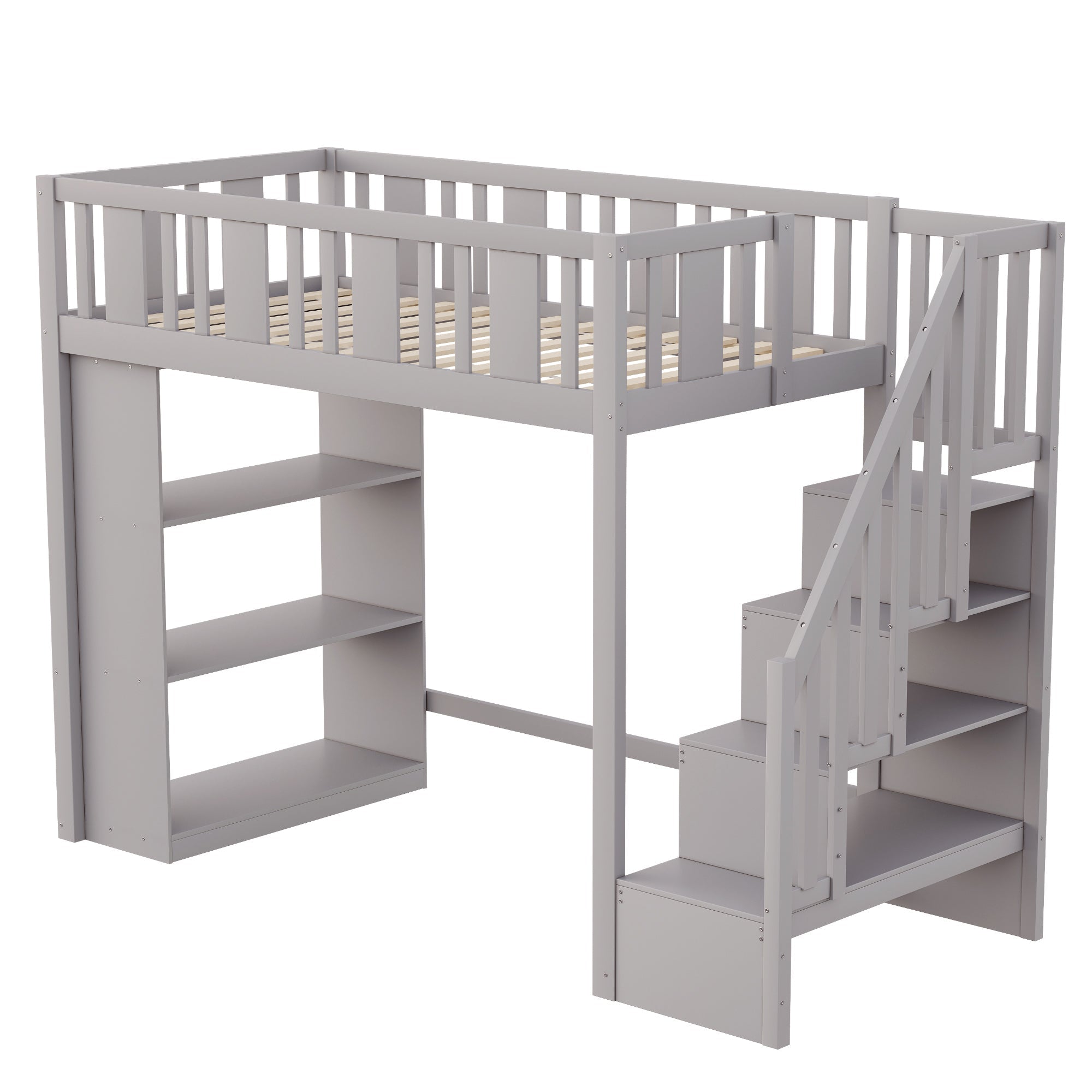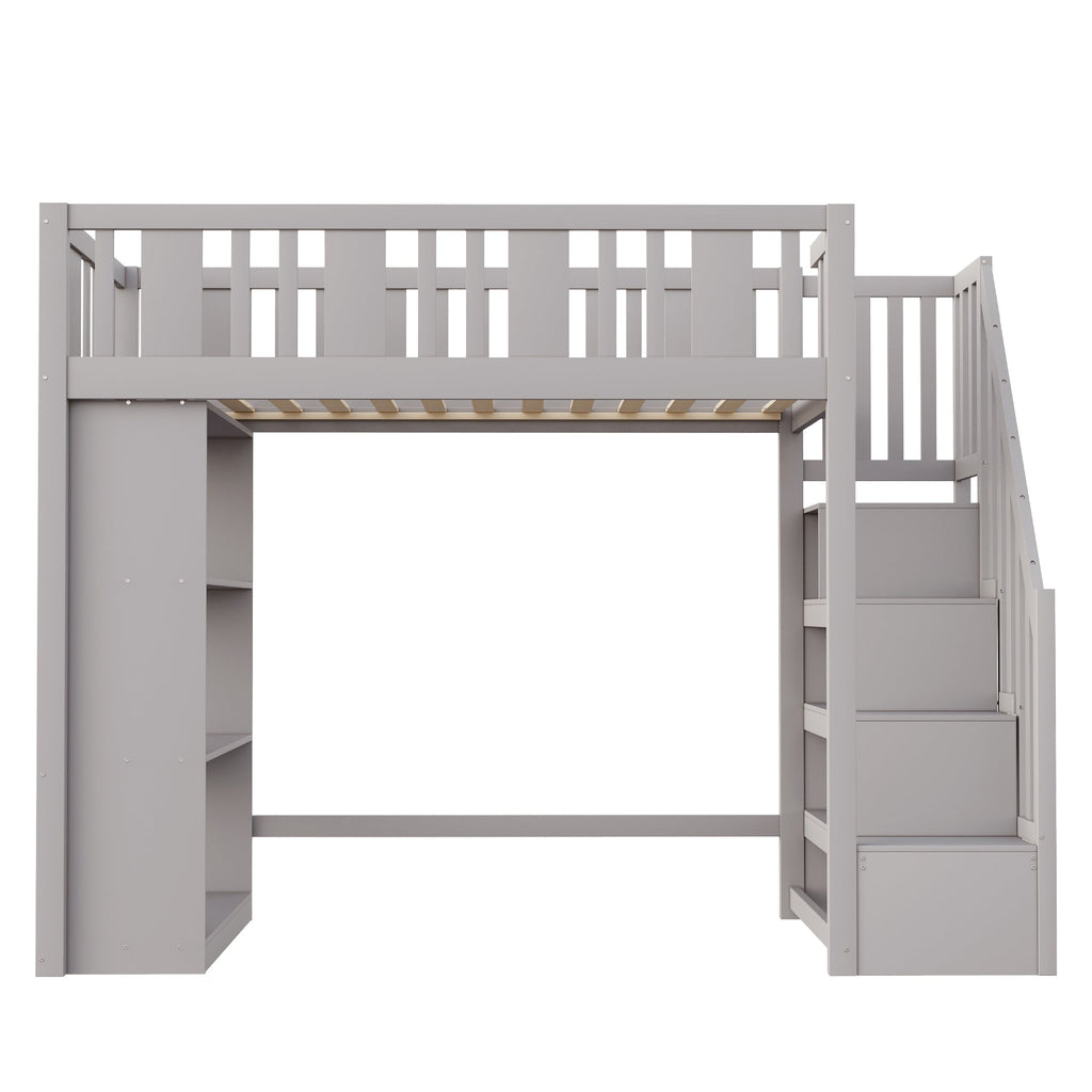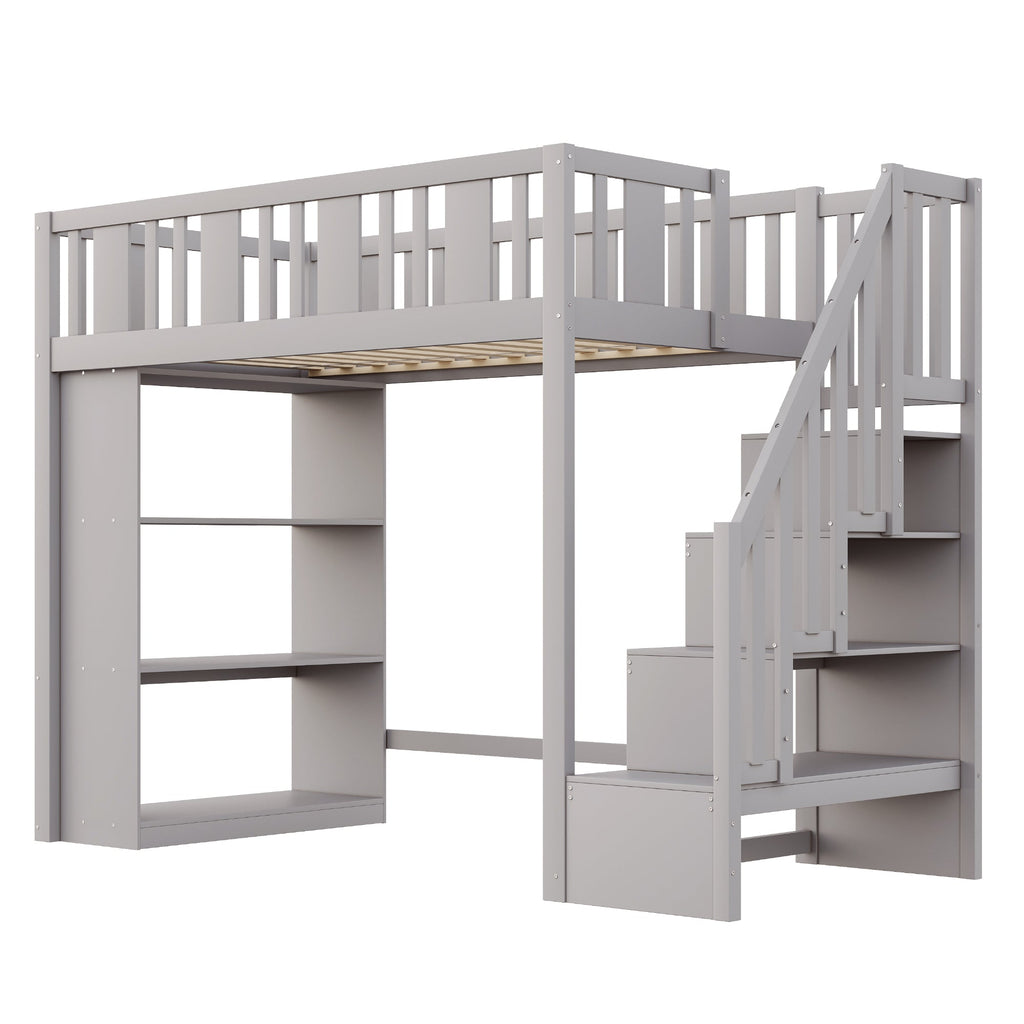 Loft Bed, 90 x 200 cm, Storage Stairs & Compartments, Wood, Grey