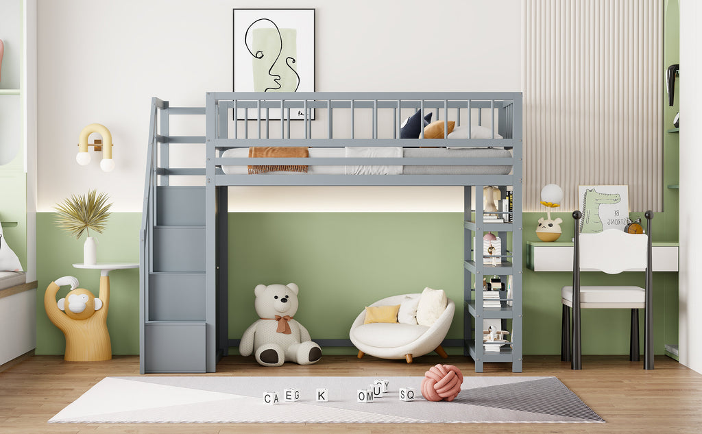 This loft bed is equipped with cabinets, storage units, and shelves that offer plenty of space for clothes, toys, books, snacks, and more, helping to keep your room organized. The safety ladder allows you and your child easy access to the loft bed, while the solid wood construction ensures years of durability and stability.