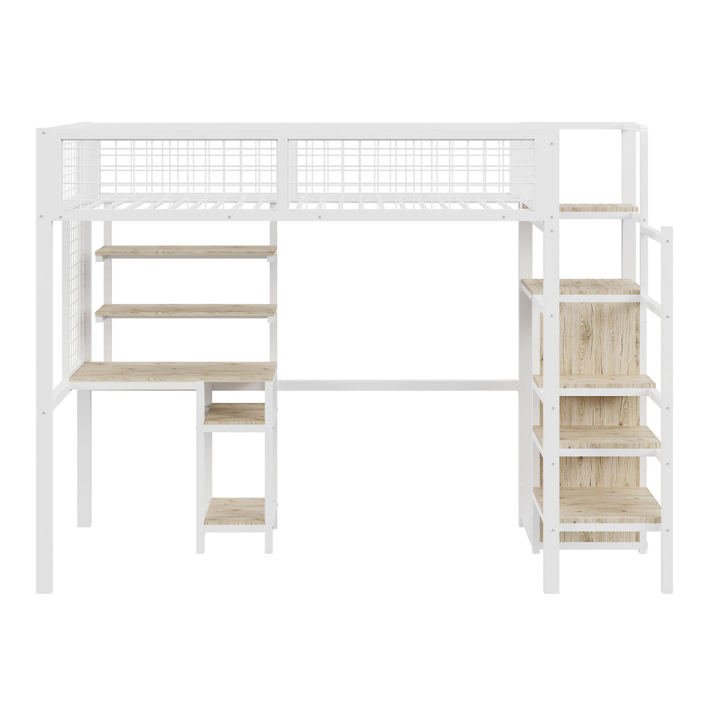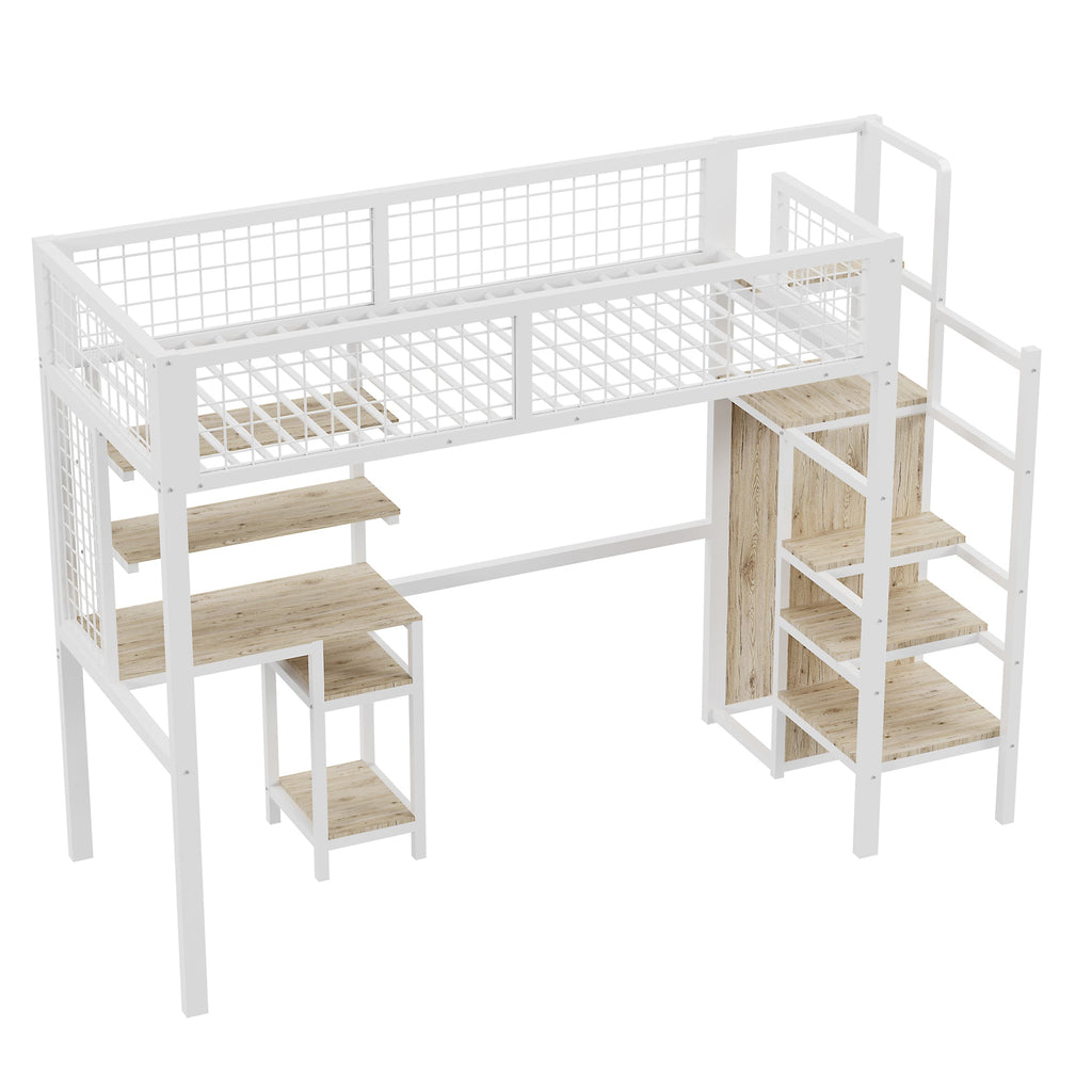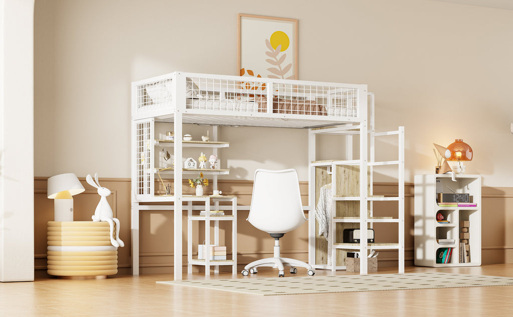 If you are looking for a children's bed or a bed suitable for small spaces, this high loft bed is an excellent choice. It offers a perfect sleeping area with a large activity area underneath. This open concept allows for creativity, whether you want to add another bed, a desk, or a small sofa. The safety ladder makes getting in and out safer and more reliable for children, and this bed also provides additional storage space with its simple wardrobe design.