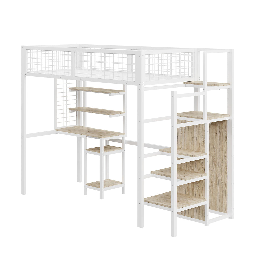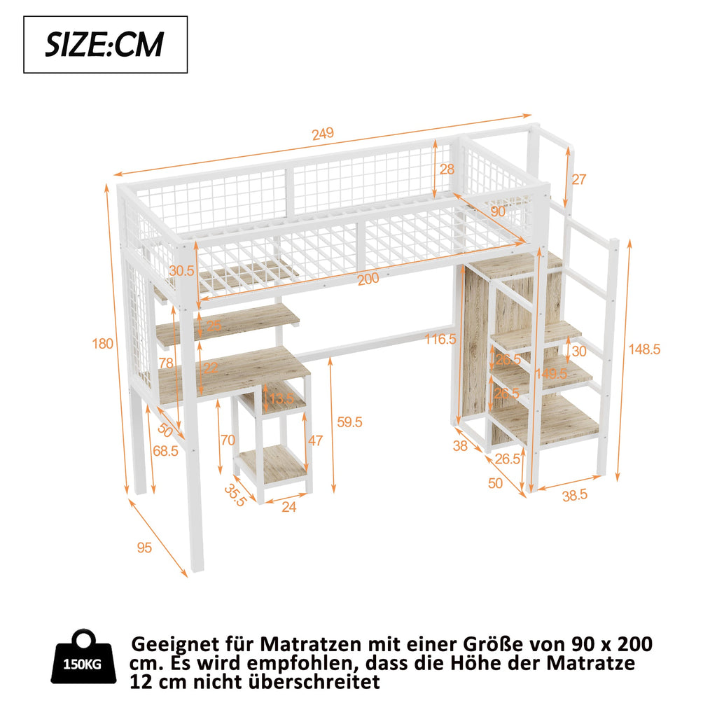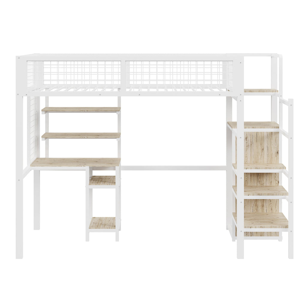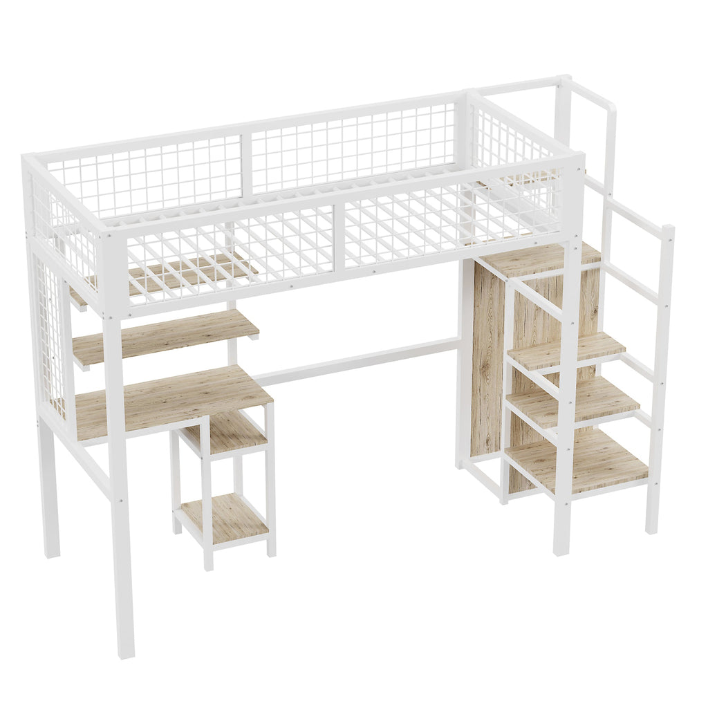 Loft Bed with Safety Ladder, Wardrobe & Computer Table, White