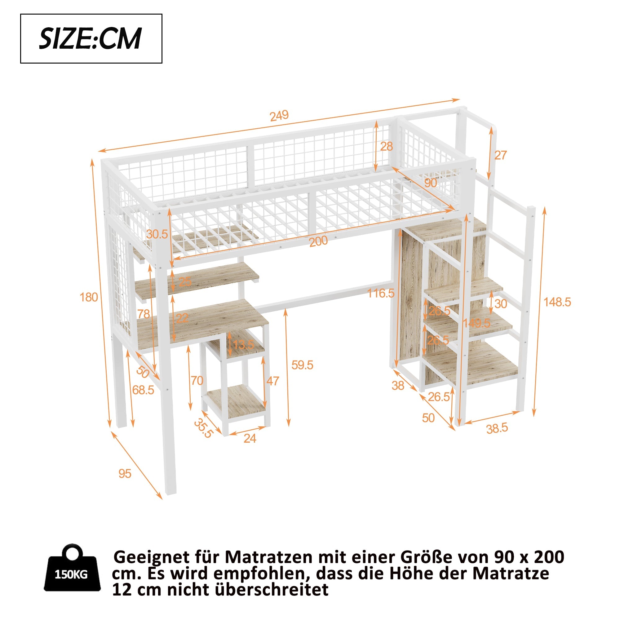 The safety ladder ensures safer and more reliable entry and exit for children. This bed also offers additional storage space, and its simple wardrobe design facilitates organized storage.