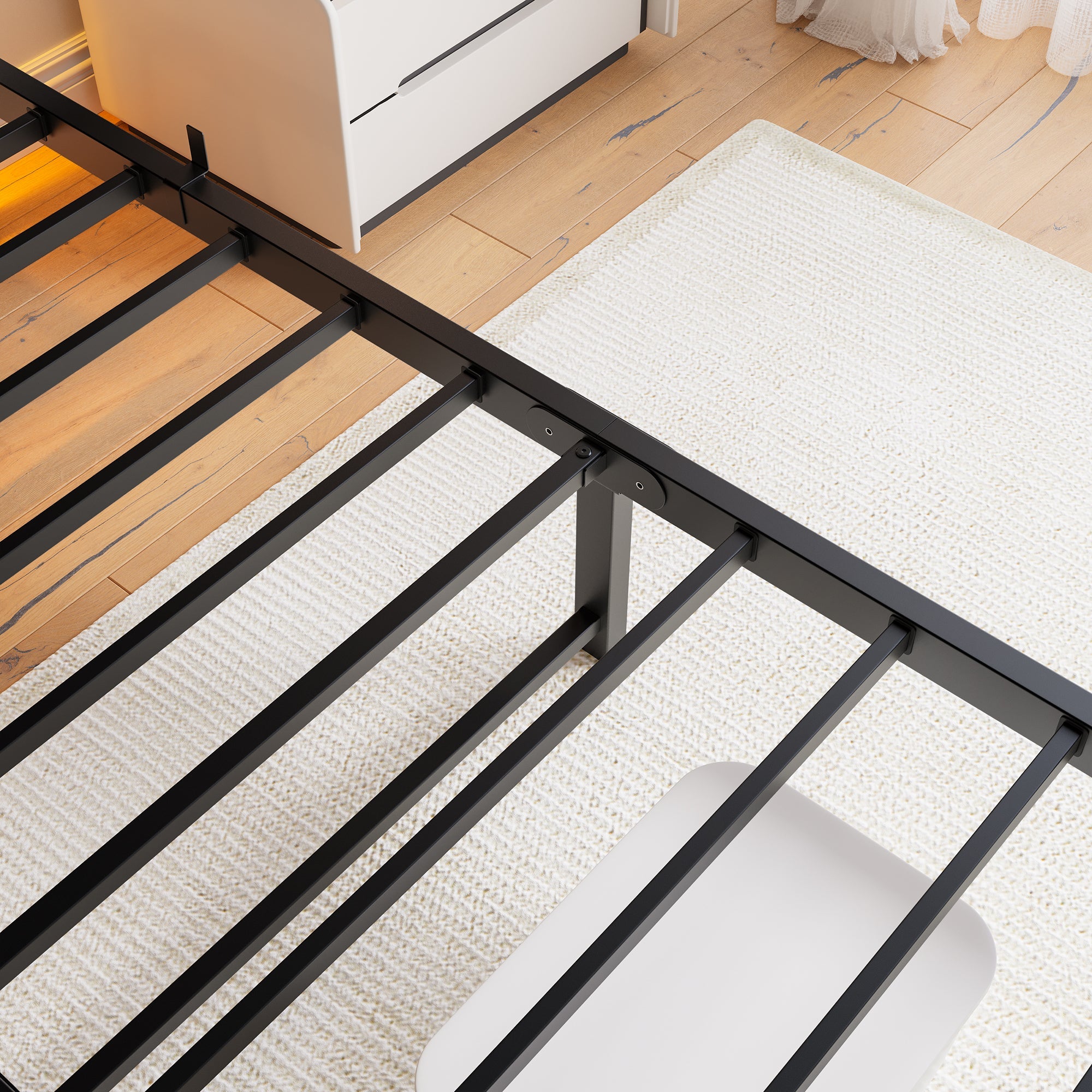 The metal bed frame uses high-quality steel slats coated with rust-resistant paint, further extending its lifespan. The steel bars are strong and robust, capable of supporting heavy items.