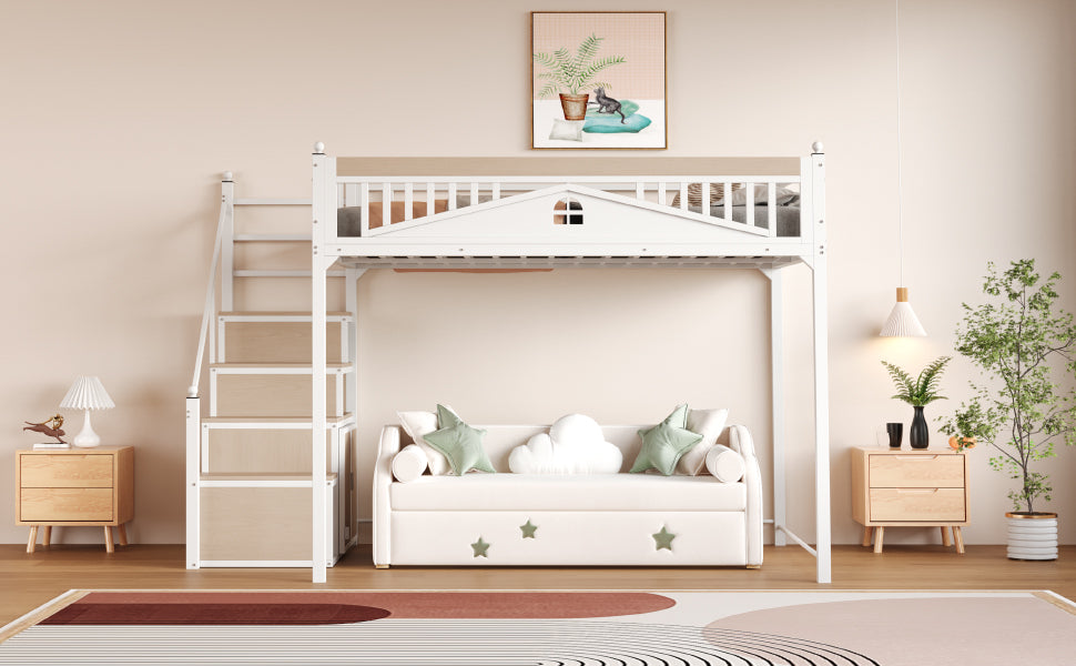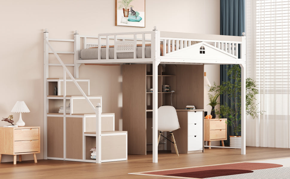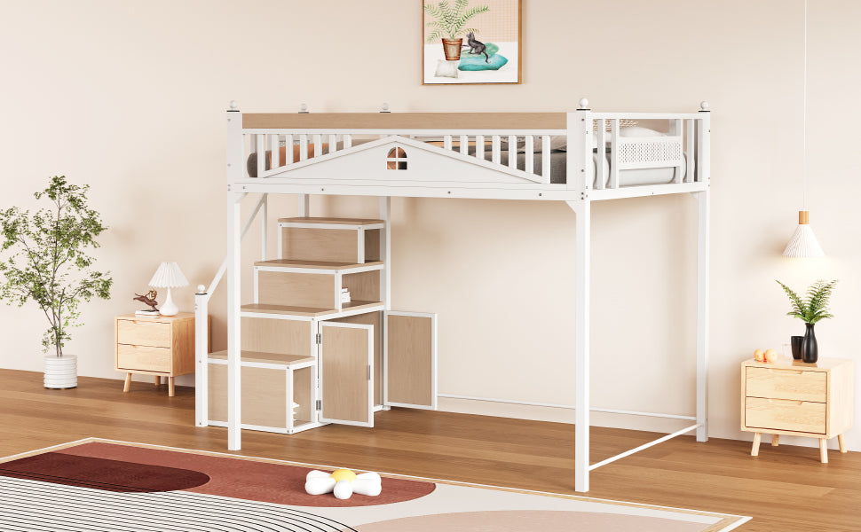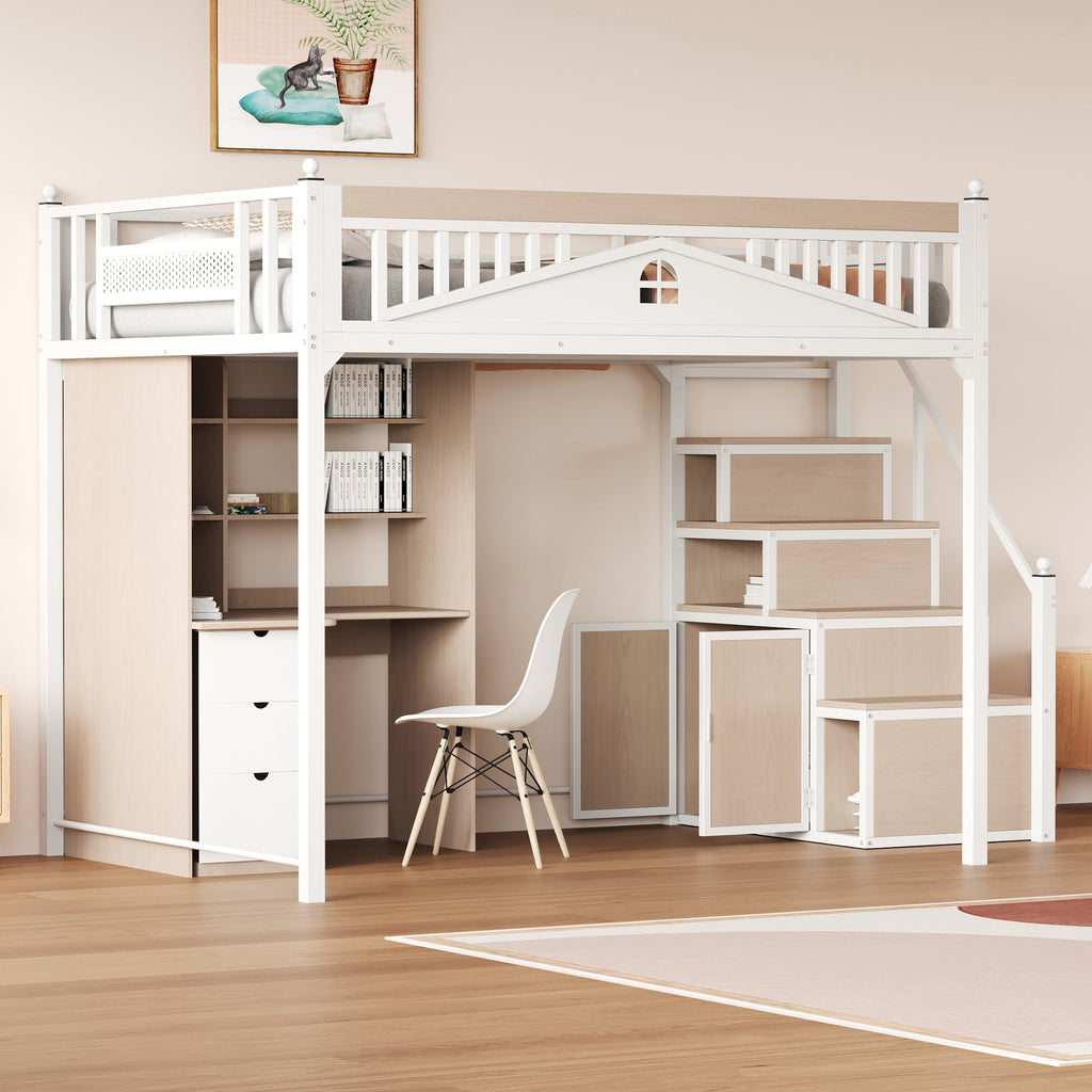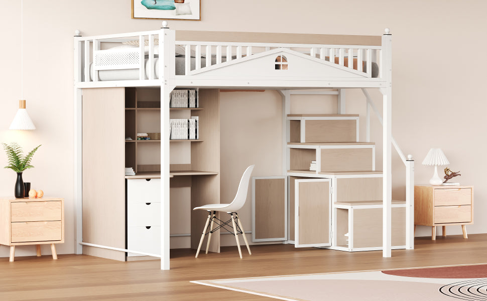 The structure of this loft bed offers ample space underneath, allowing you to create separate areas for studying, playing, or relaxing. Additionally, safety steps on both sides provide easy and secure access. Each step includes built-in storage and a small cabinet, perfect for organizing essentials.