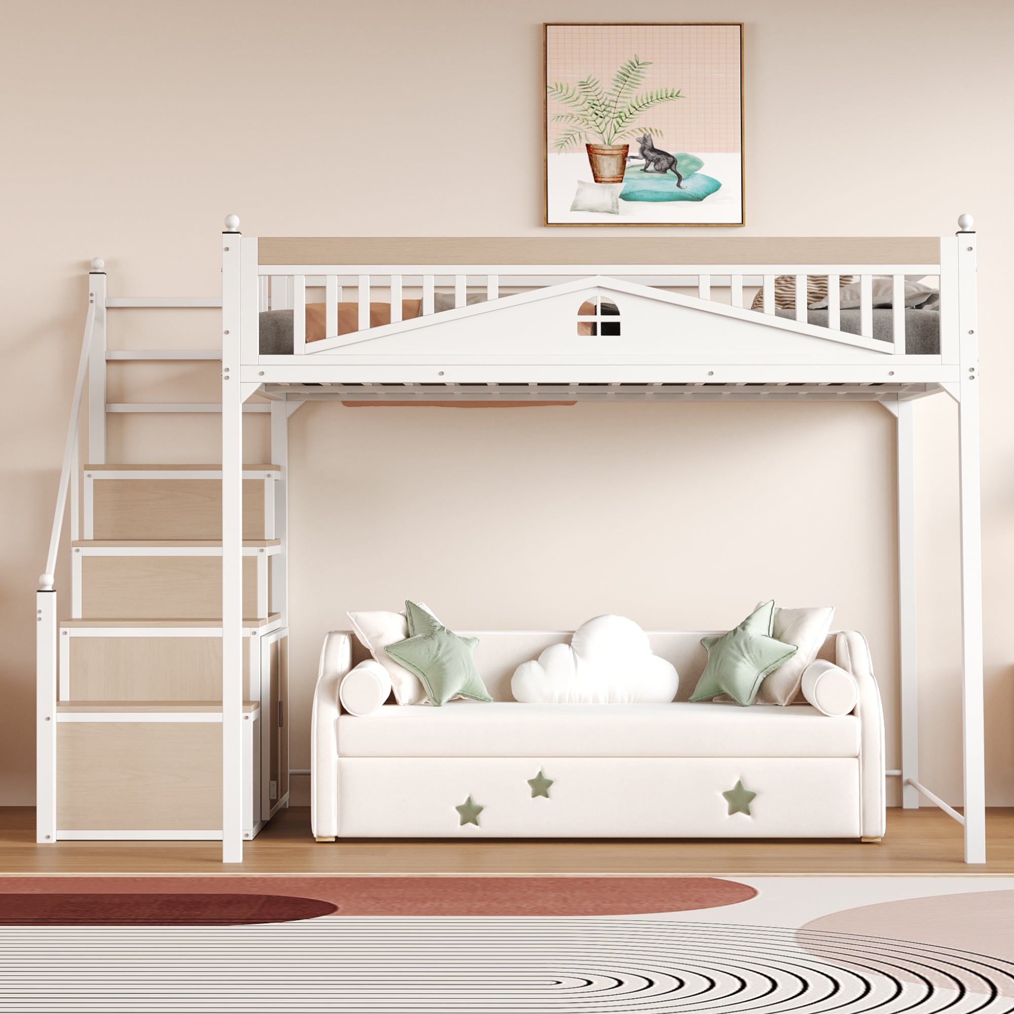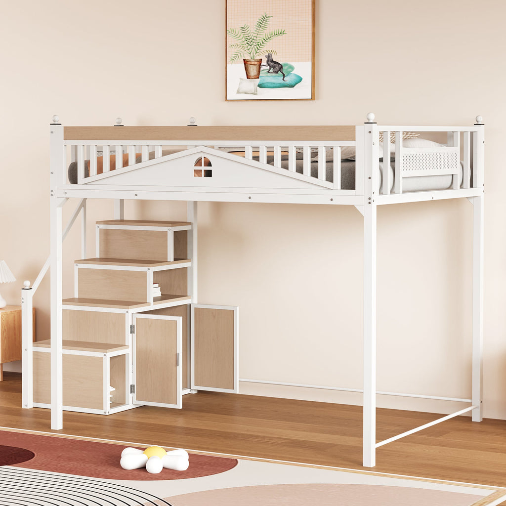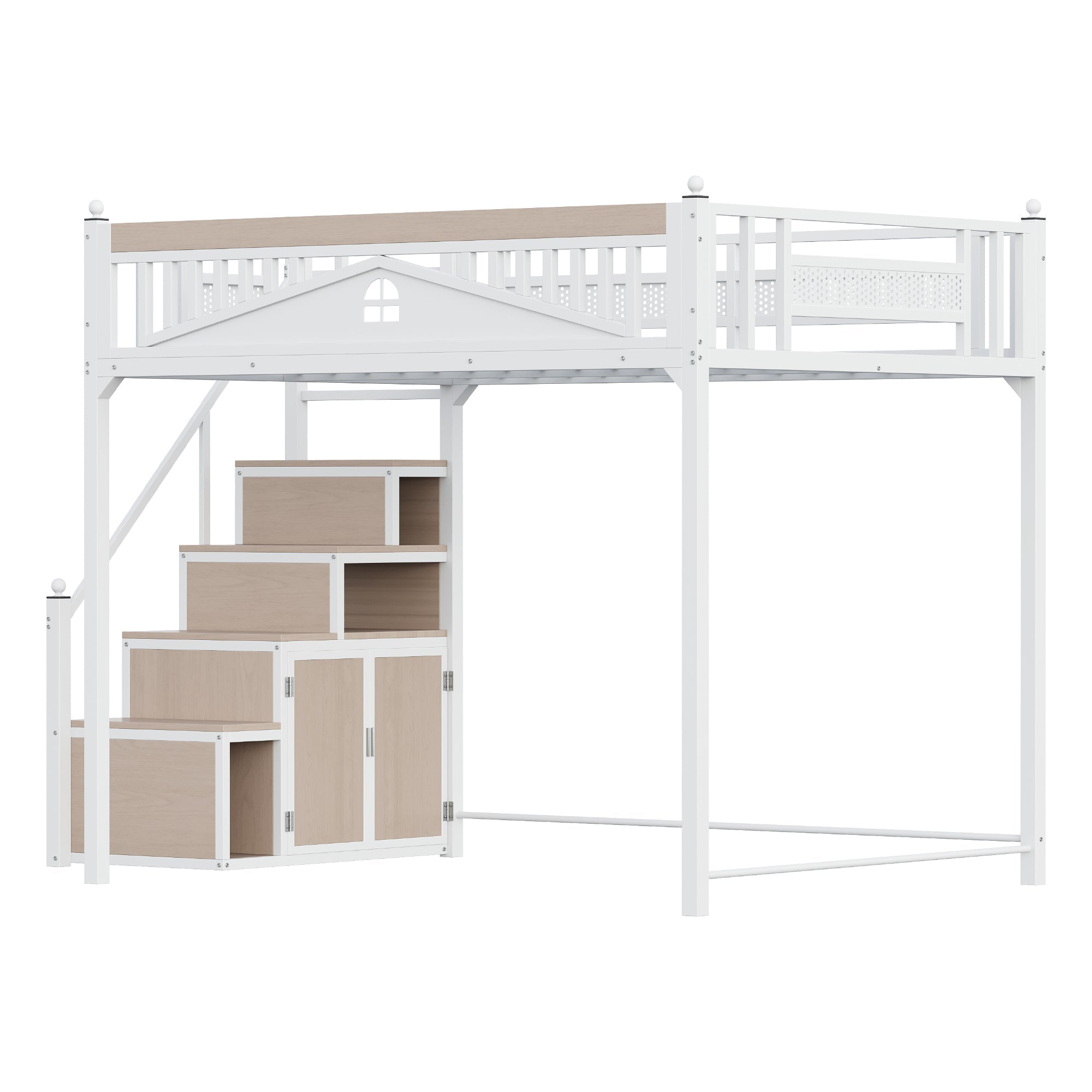 The structure of this loft bed offers ample space underneath, allowing you to create separate areas for studying, playing, or relaxing. Additionally, safety steps on both sides provide easy and secure access. Each step includes built-in storage and a small cabinet, perfect for organizing essentials.