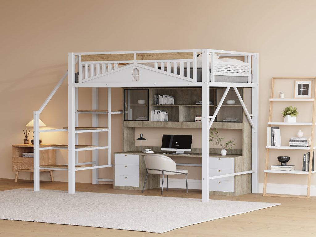 The raised design of this loft bed provides ample space underneath, allowing you to create separate areas for studying, entertaining, or lounging. Safety steps are conveniently located on both sides of the bed to ensure secure access.