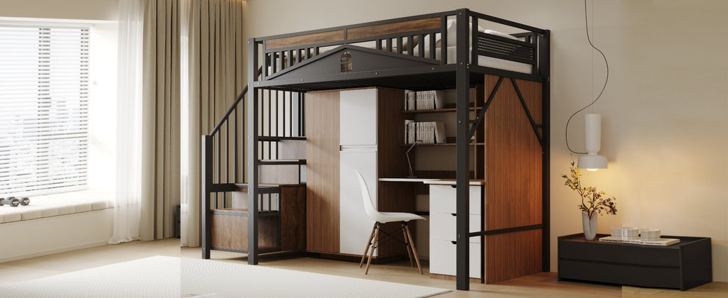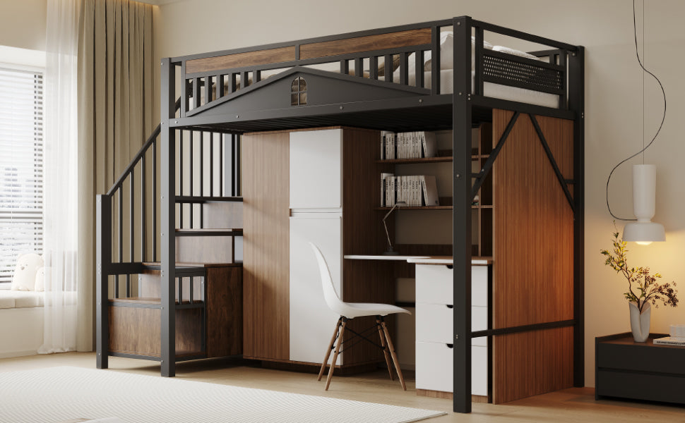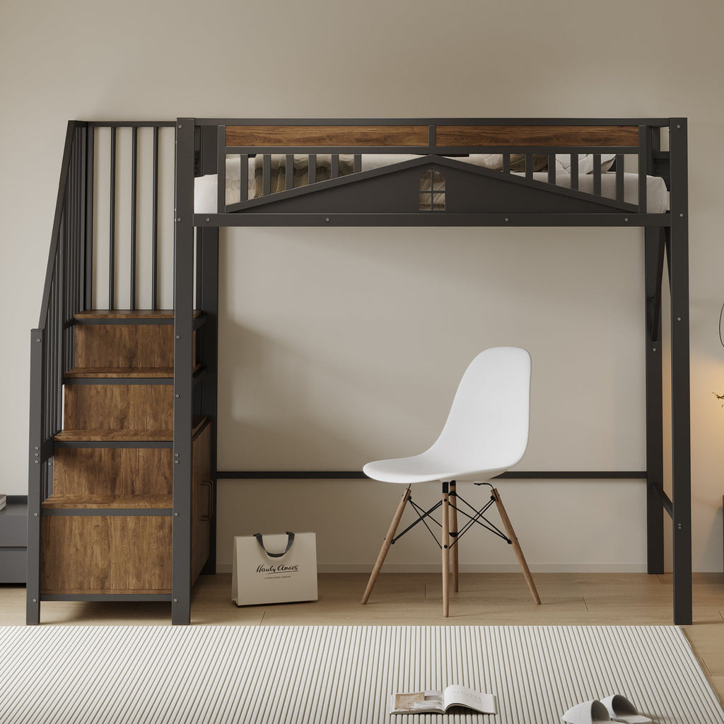 The raised structure of this loft bed provides ample space underneath, allowing you to create separate areas for your child to study, play, or relax. It also includes safety steps on both sides for safe access. Each step has built-in storage and a small cabinet for organizing essentials.