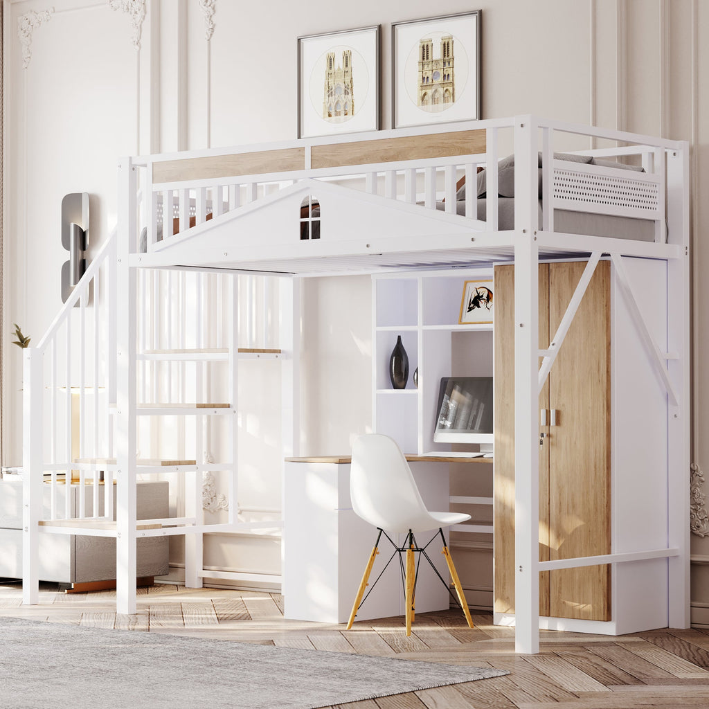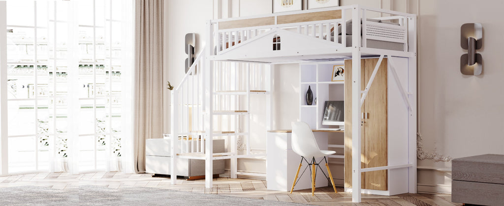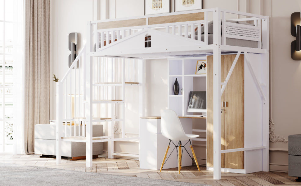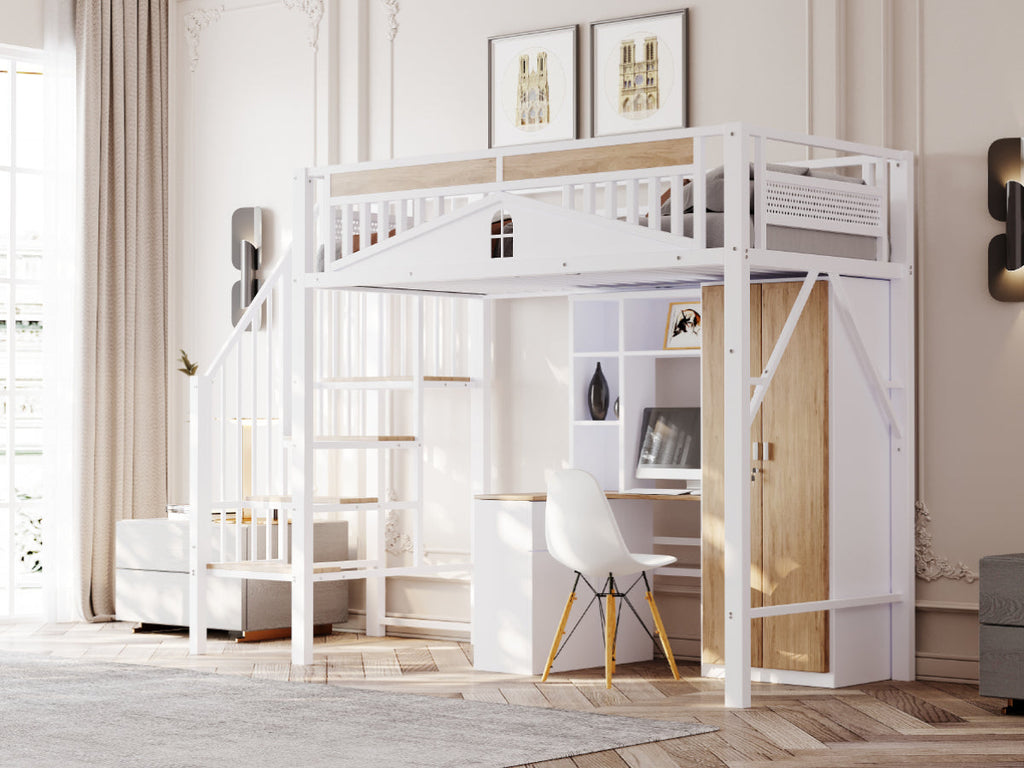 The raised construction of this loft bed provides ample space underneath, allowing you to create separate areas for your child to study, play, or rest. It also features safety steps on both sides to ensure safe access. Each step has built-in storage and a small cabinet for storing and organizing essentials.