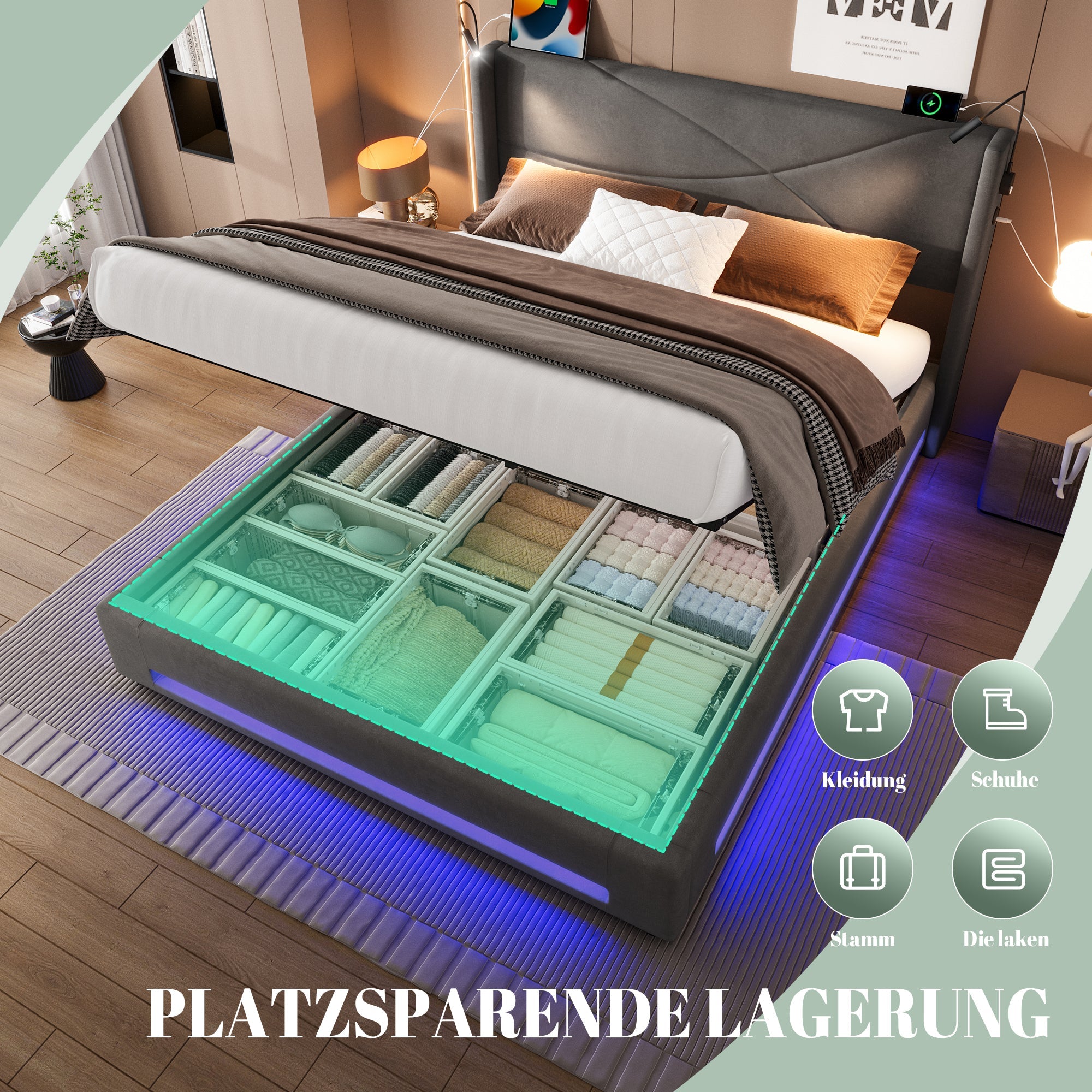 No more searching for power outlets! The bed frame is equipped with USB ports so you can charge your devices right in bed. From smartphones and tablets to e-readers, everything is within easy reach and ready to use. Transform your bed into a true smart home hub and enjoy the comfort that modern technology can offer.
