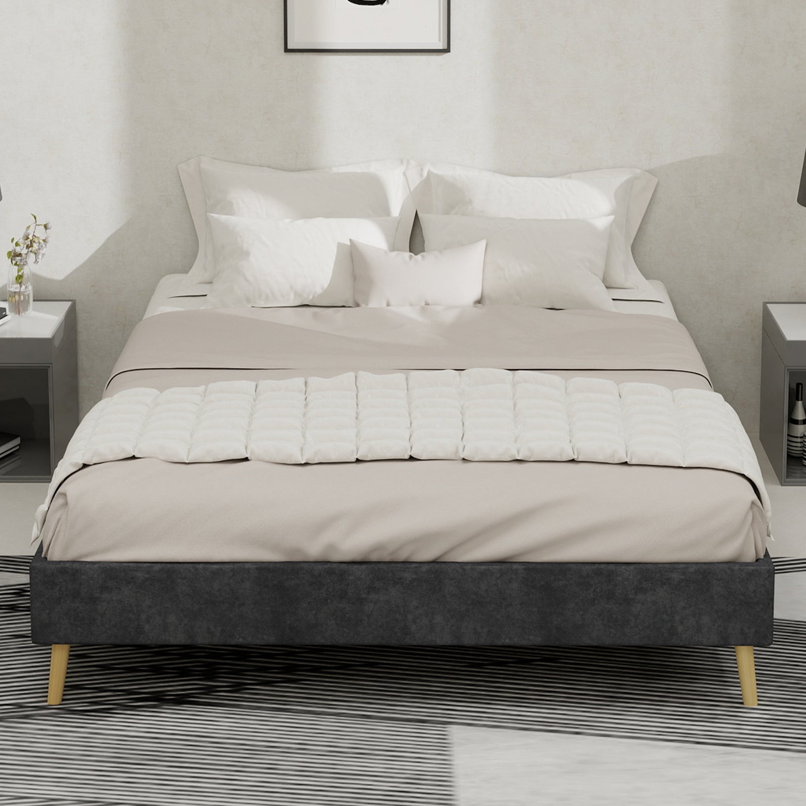Modern Minimalist Bed Frame, 140x200CM Low Box, Dutch Velvet Gray