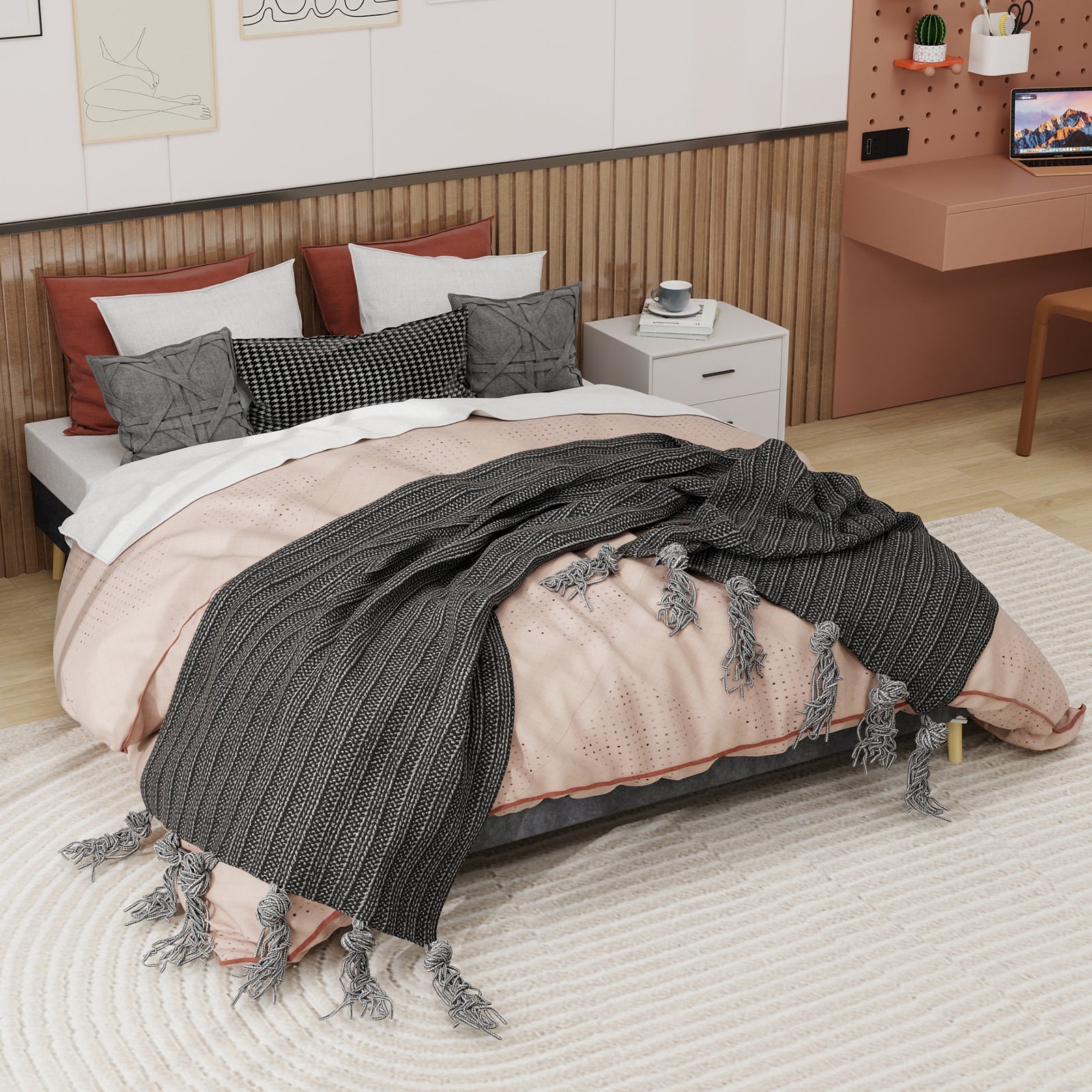 Modern Minimalist Bed Frame 160x200 cm Low-Profile Dutch Velvet Grey