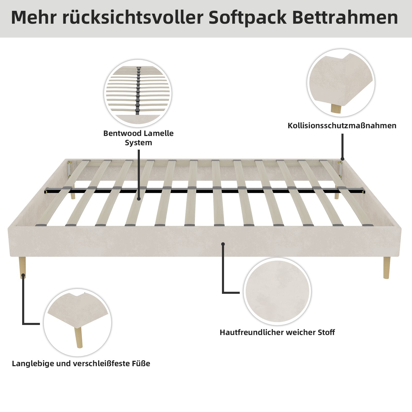 Modern Minimalist Bed Frame 160x200cm Low-Profile Base, Beige Dutch Velvet