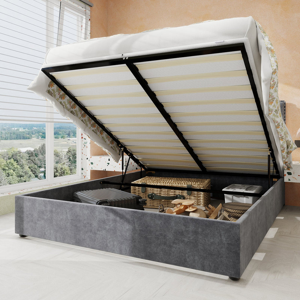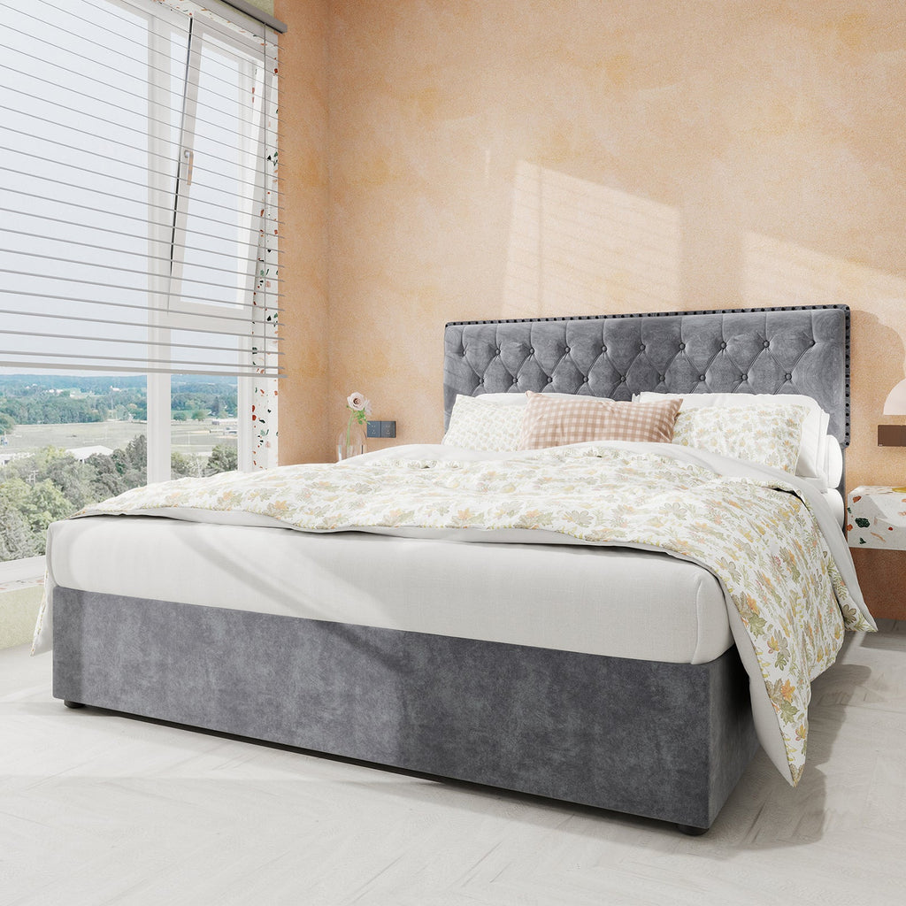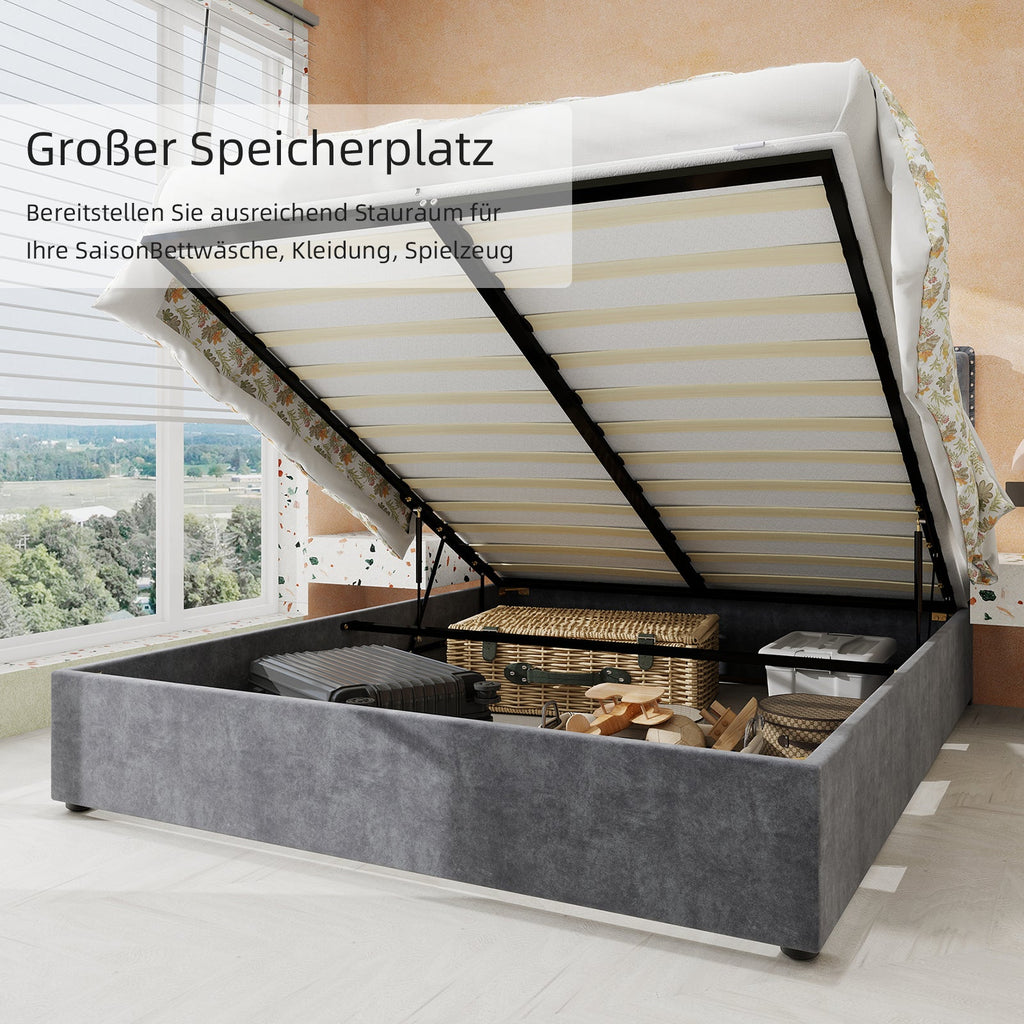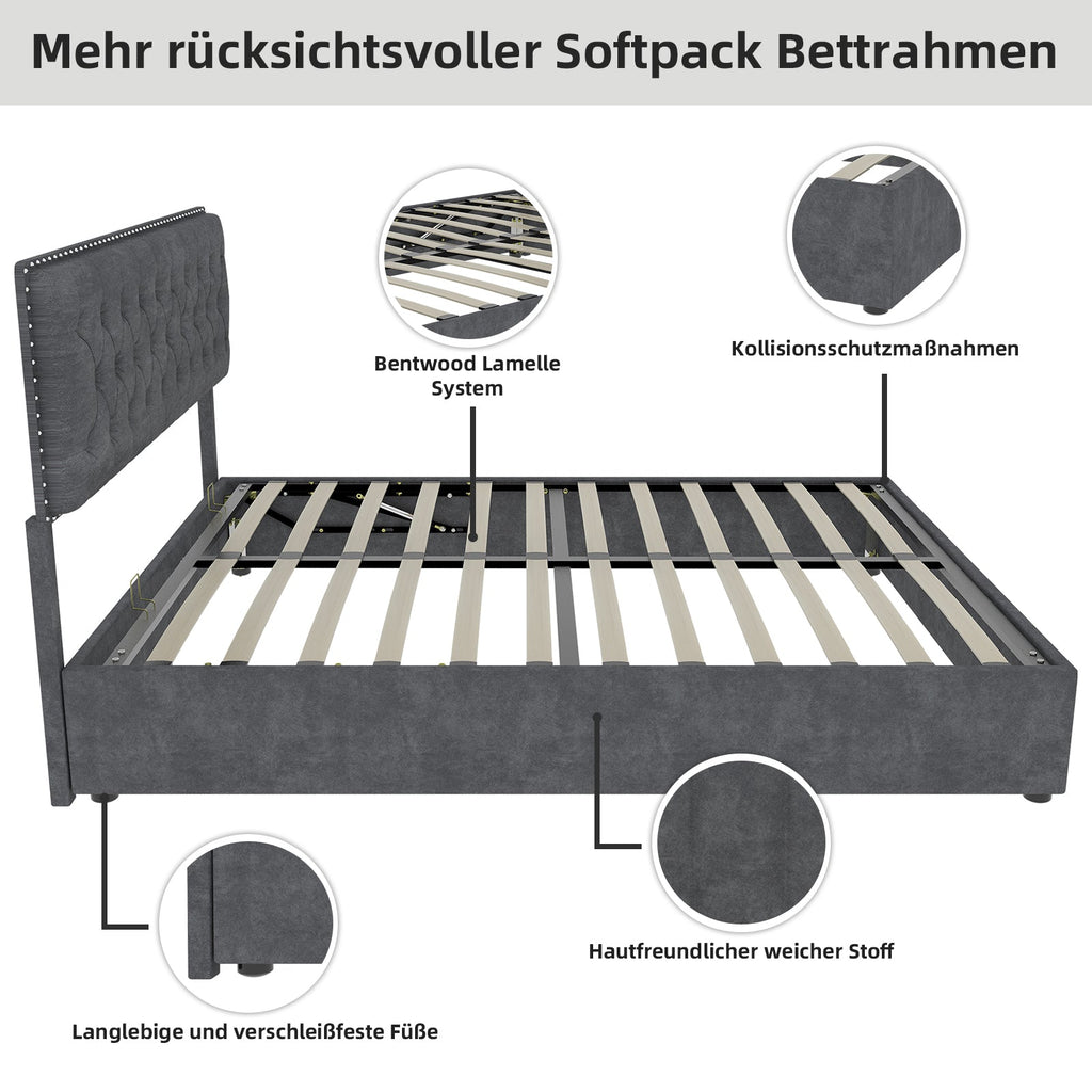 Perfect Size: This extra-modern bed frame is available in two sizes, 140 cm x 200 cm and 160 cm x 200 cm, perfect for your bedroom. The tall headboard adds a touch of glamour, while the overall size ensures a comfortable and spacious sleeping area. Please note that the mattress is not included.