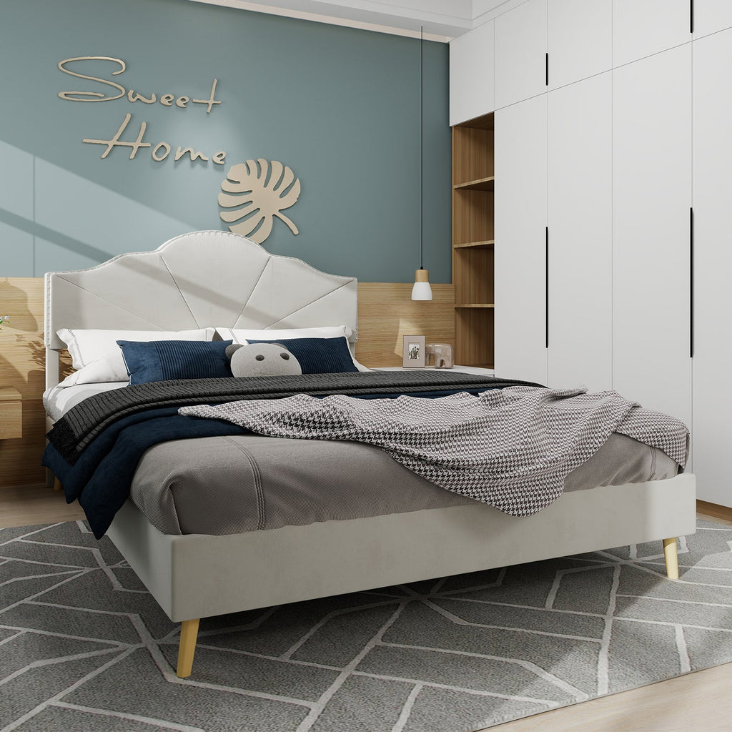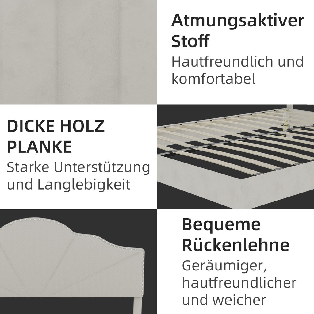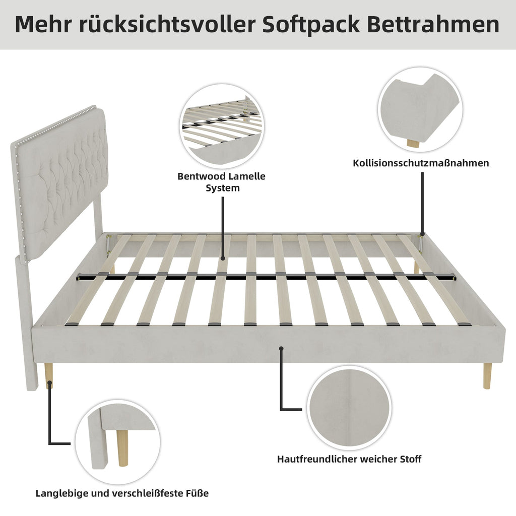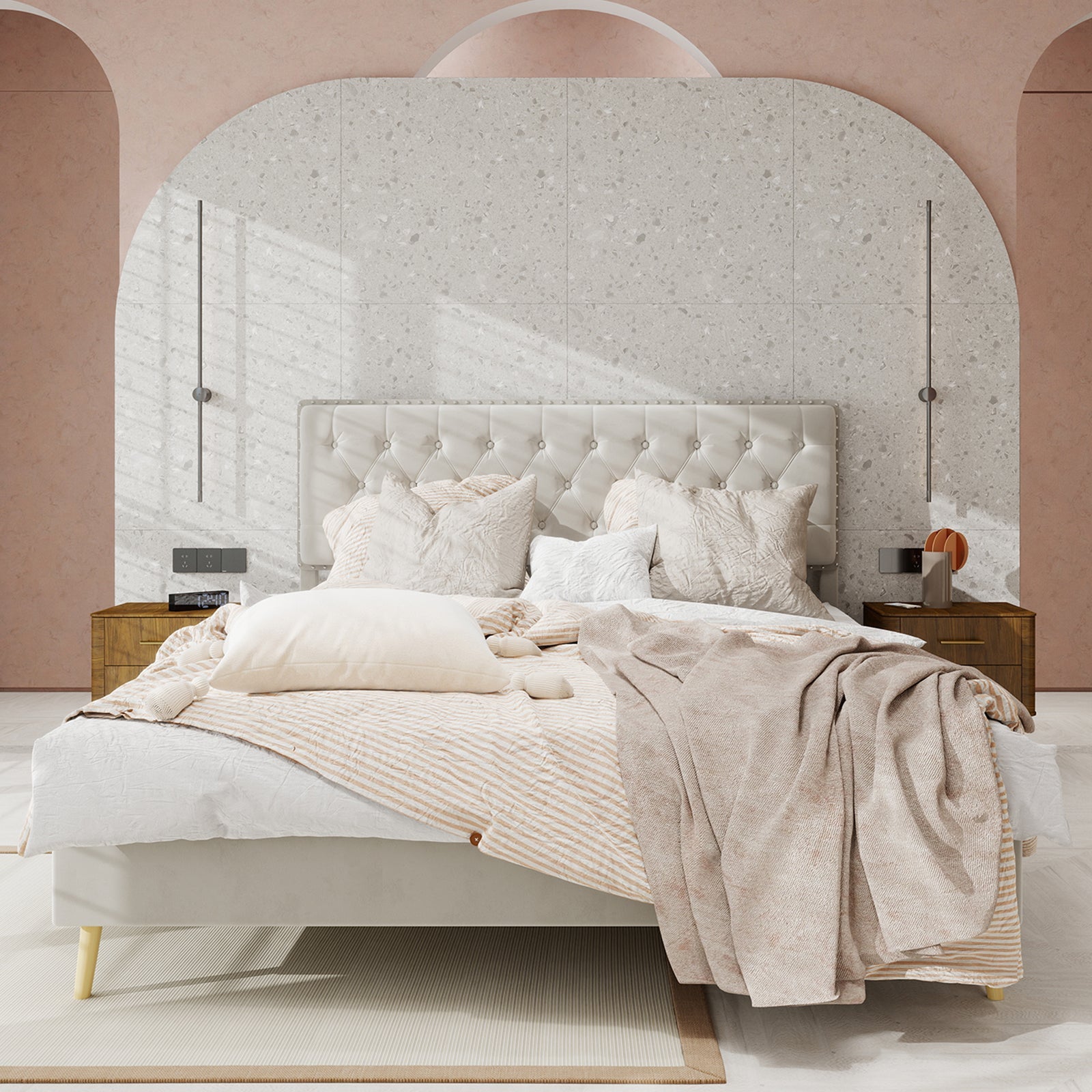 Modern Minimalist Soft Bed, Comfortable Headboard, 160x200CM, Beige