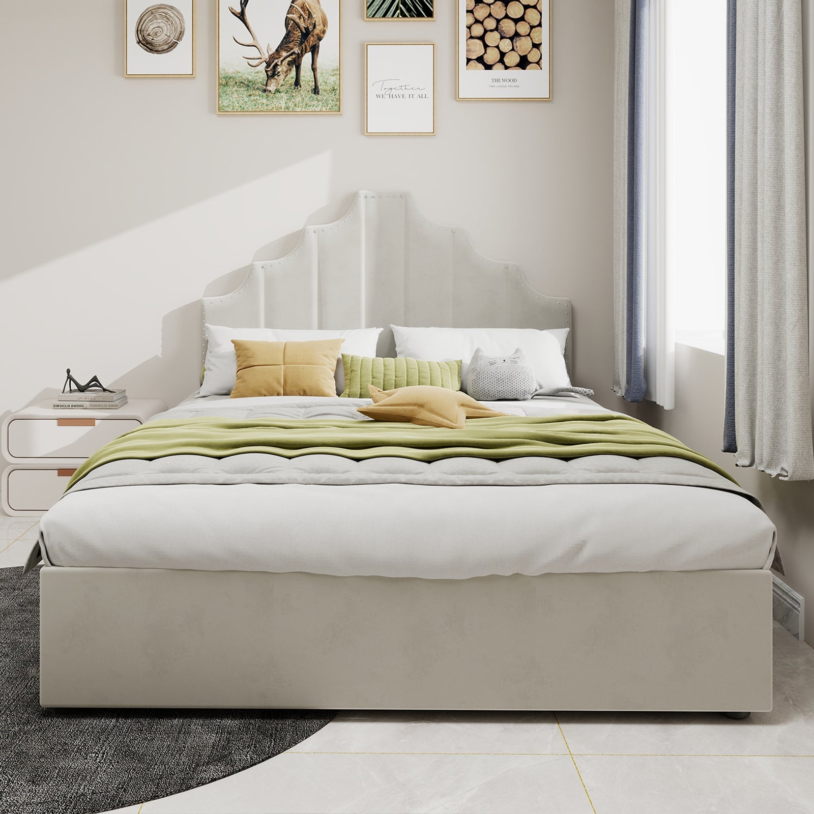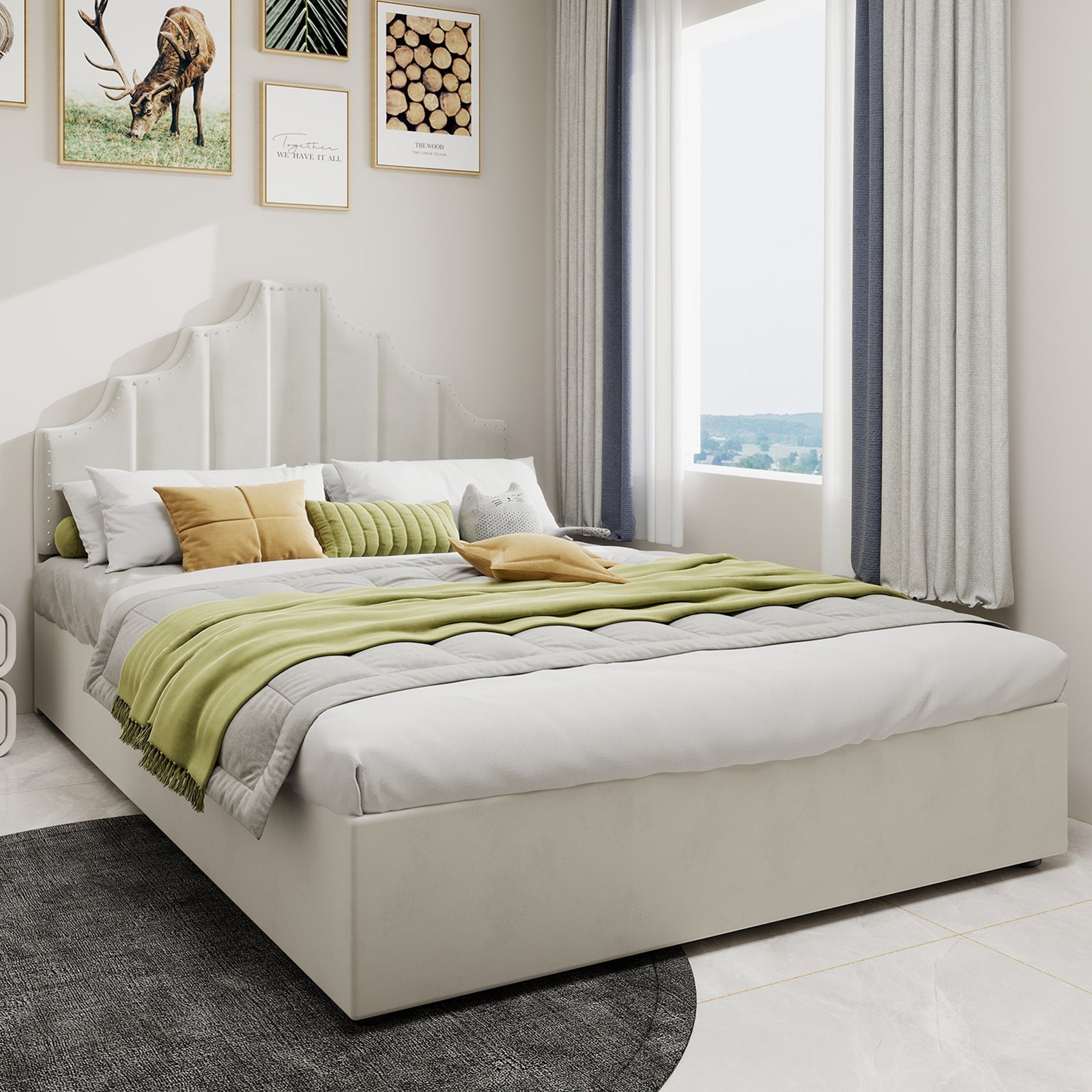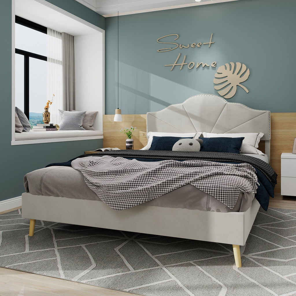 Modern Minimalist Soft Bed, Comfortable Headboard, 160x200CM, Beige