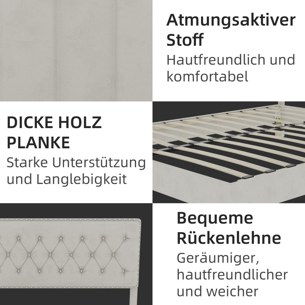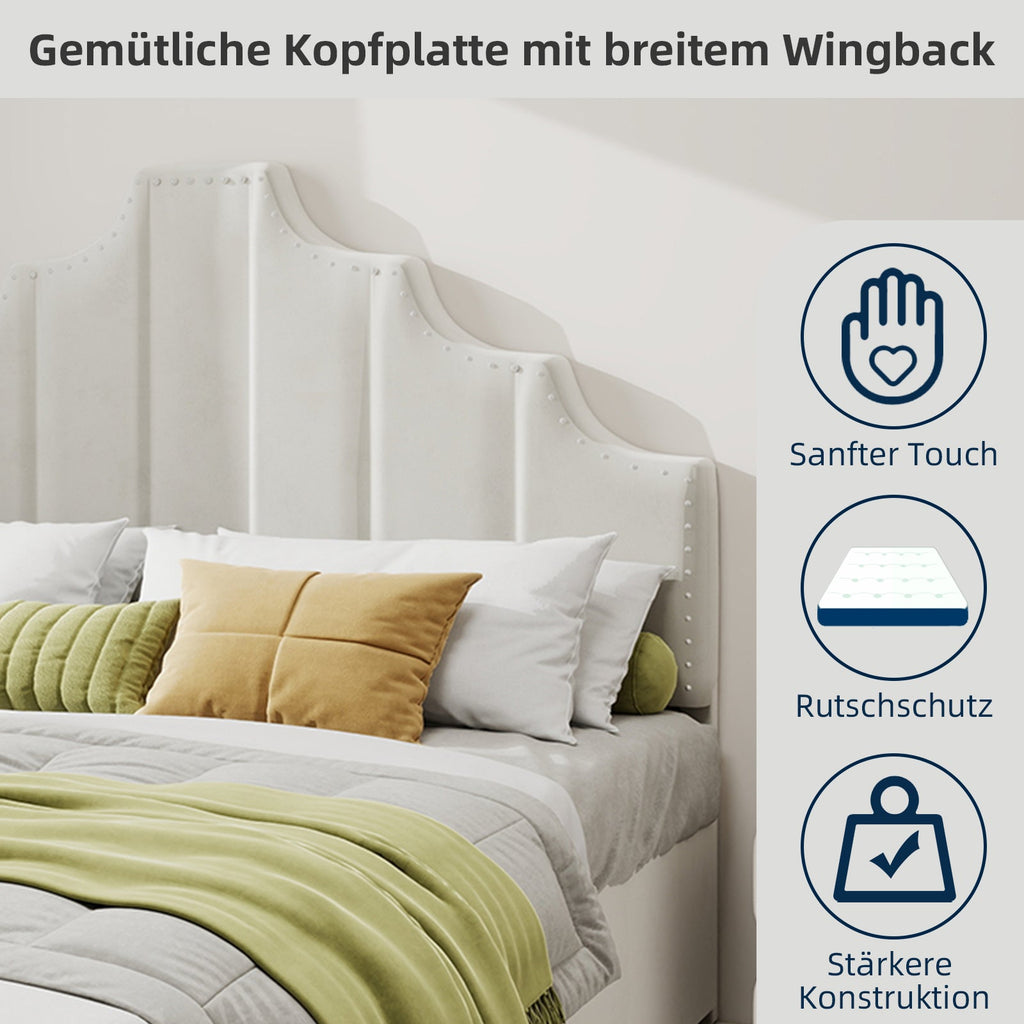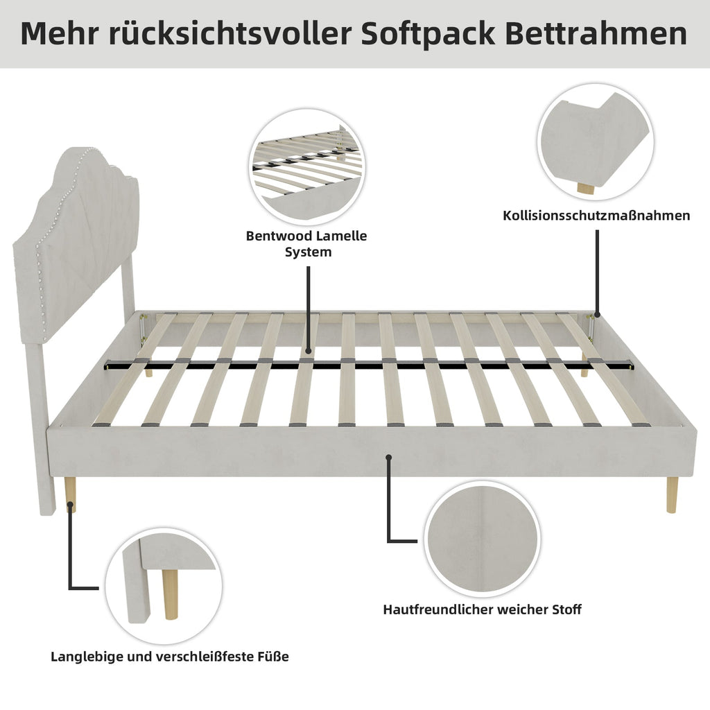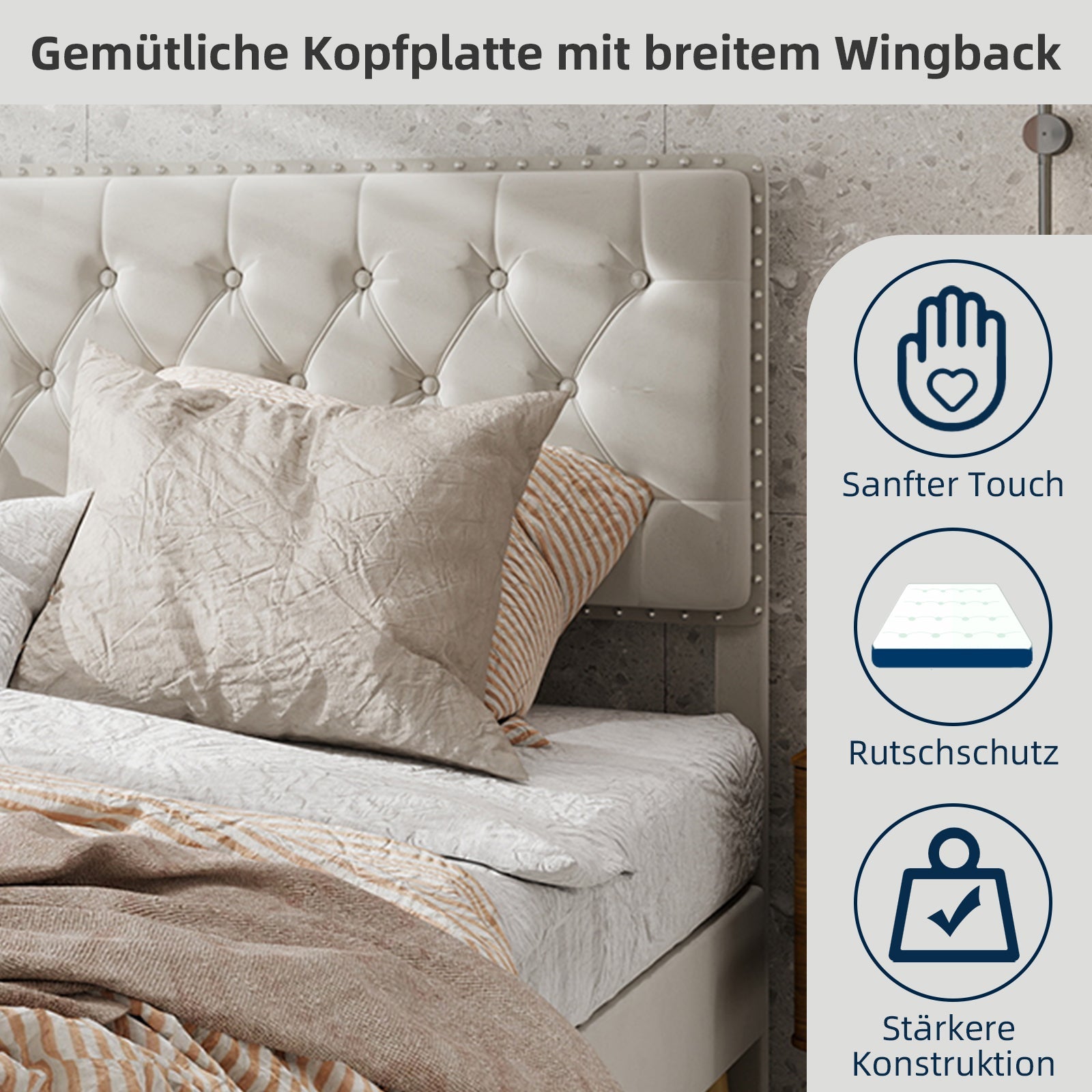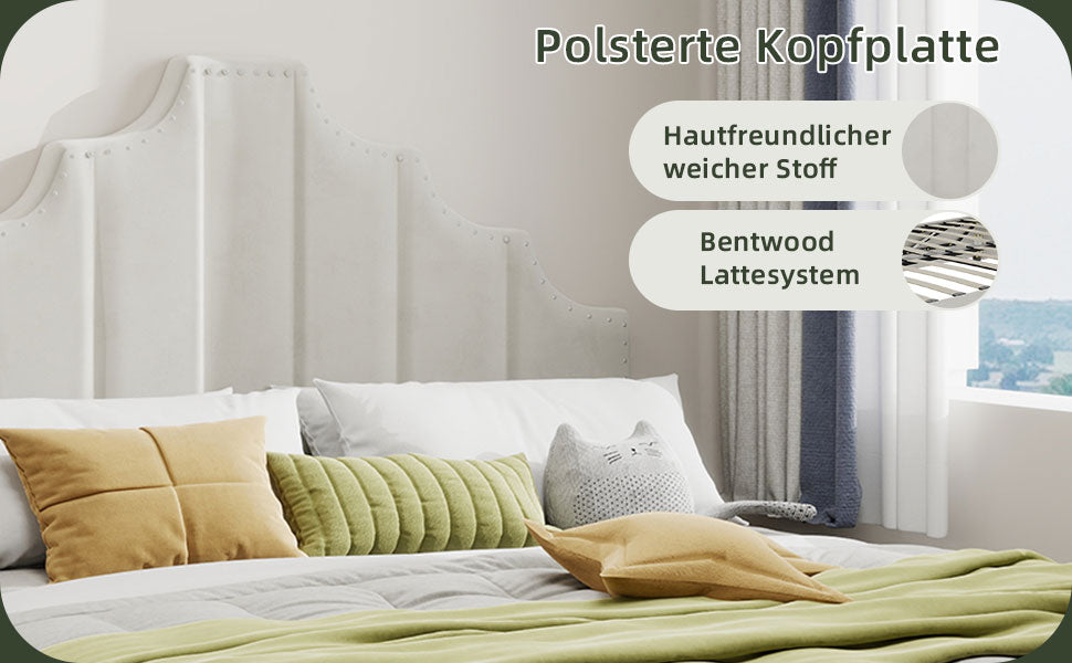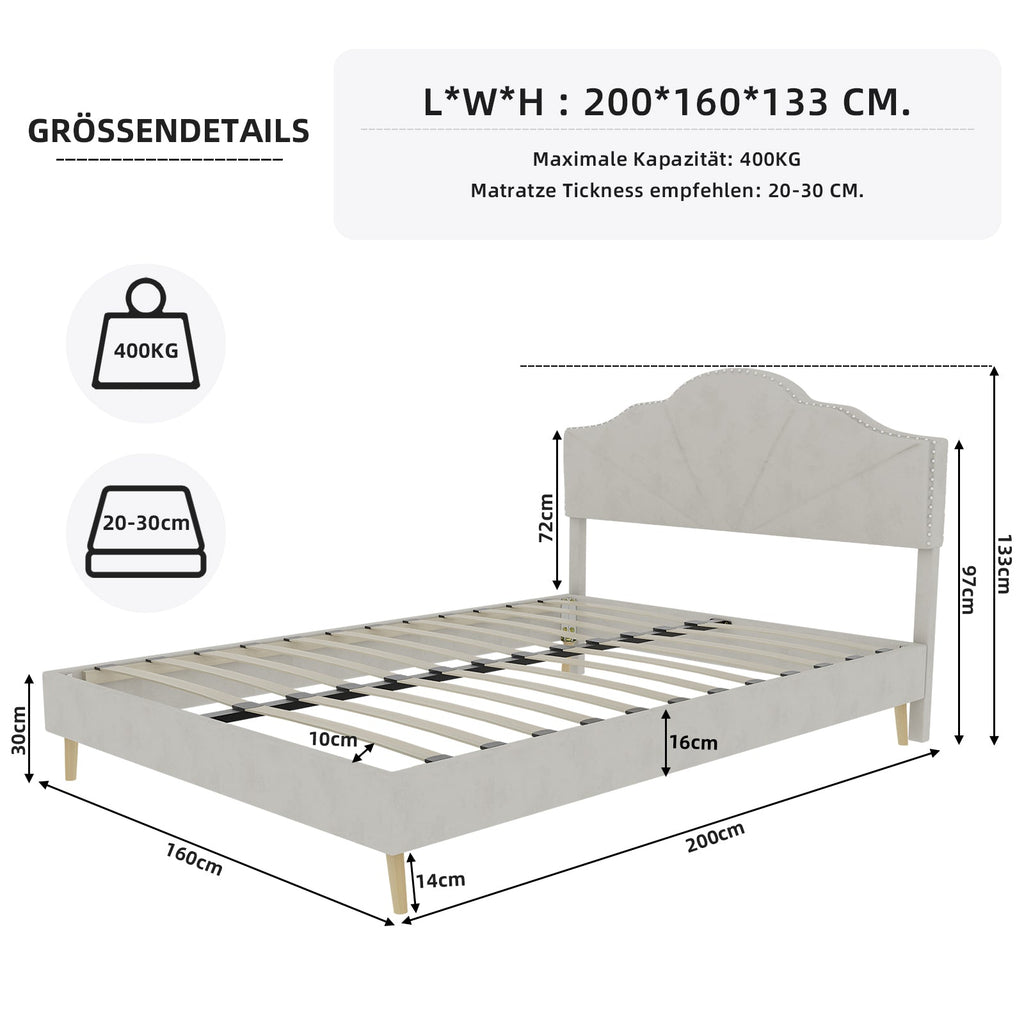 Perfect size: This extra-modern bed frame is available in two sizes, 140cm x 200cm and 160cm x 200cm, perfect for your bedroom. The tall headboard adds a touch of glamour, while the overall size ensures a comfortable and spacious sleeping area. Please note that the mattress is not included.