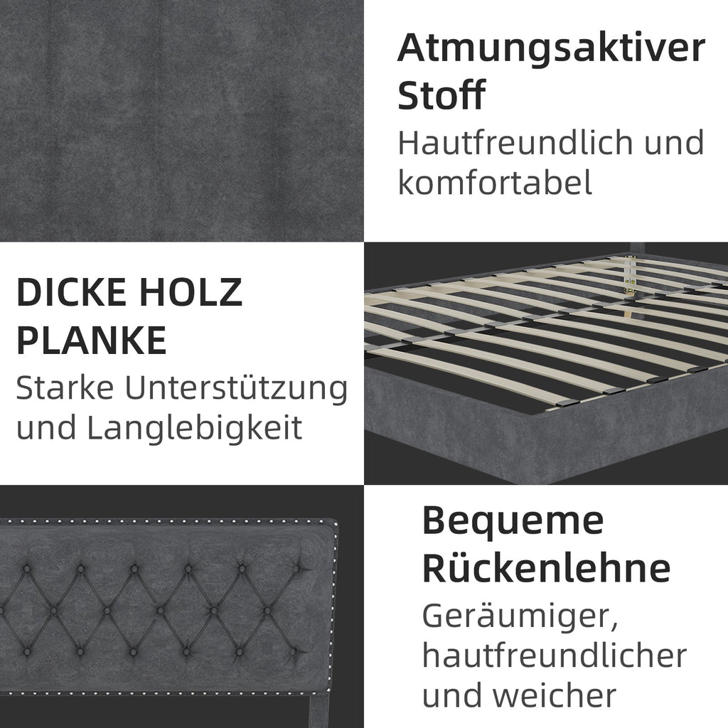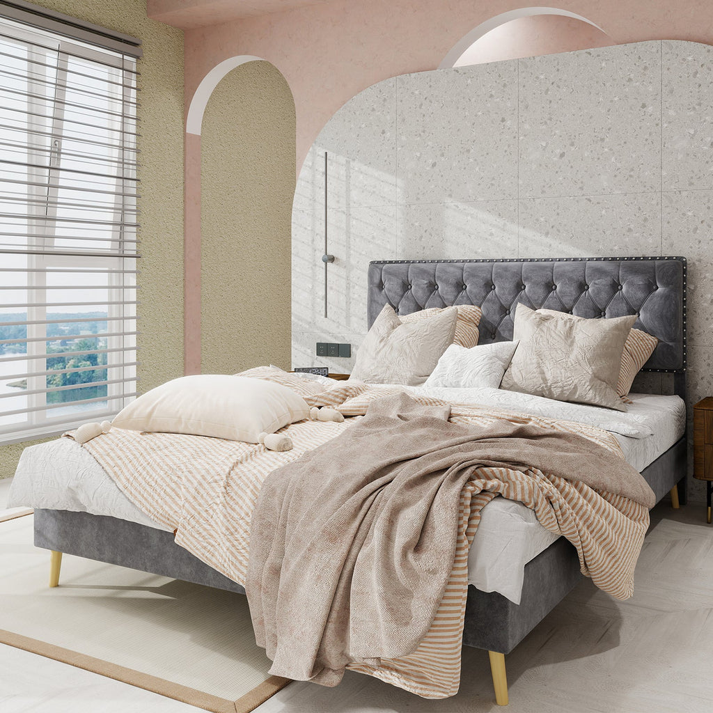 Perfect size: This extra-modern bed frame is available in two sizes: 140 cm x 200 cm and 160 cm x 200 cm, perfect for your bedroom. The tall headboard adds a touch of glamour, while the overall size ensures a comfortable and spacious sleeping area. Please note that the mattress is not included.