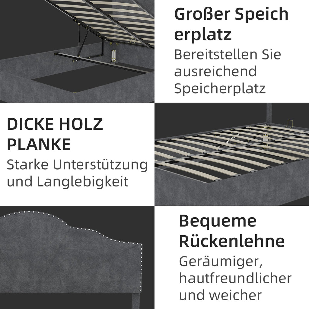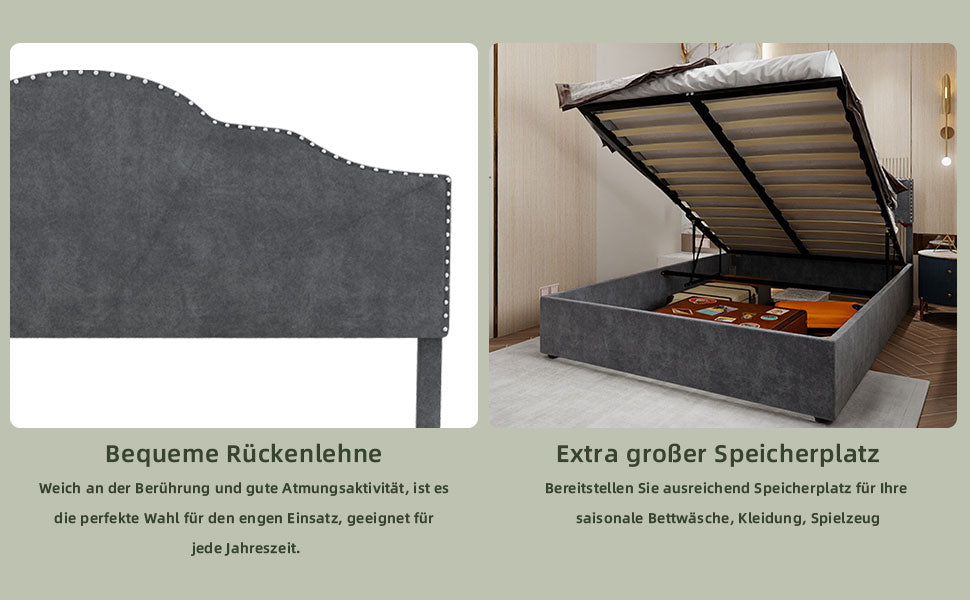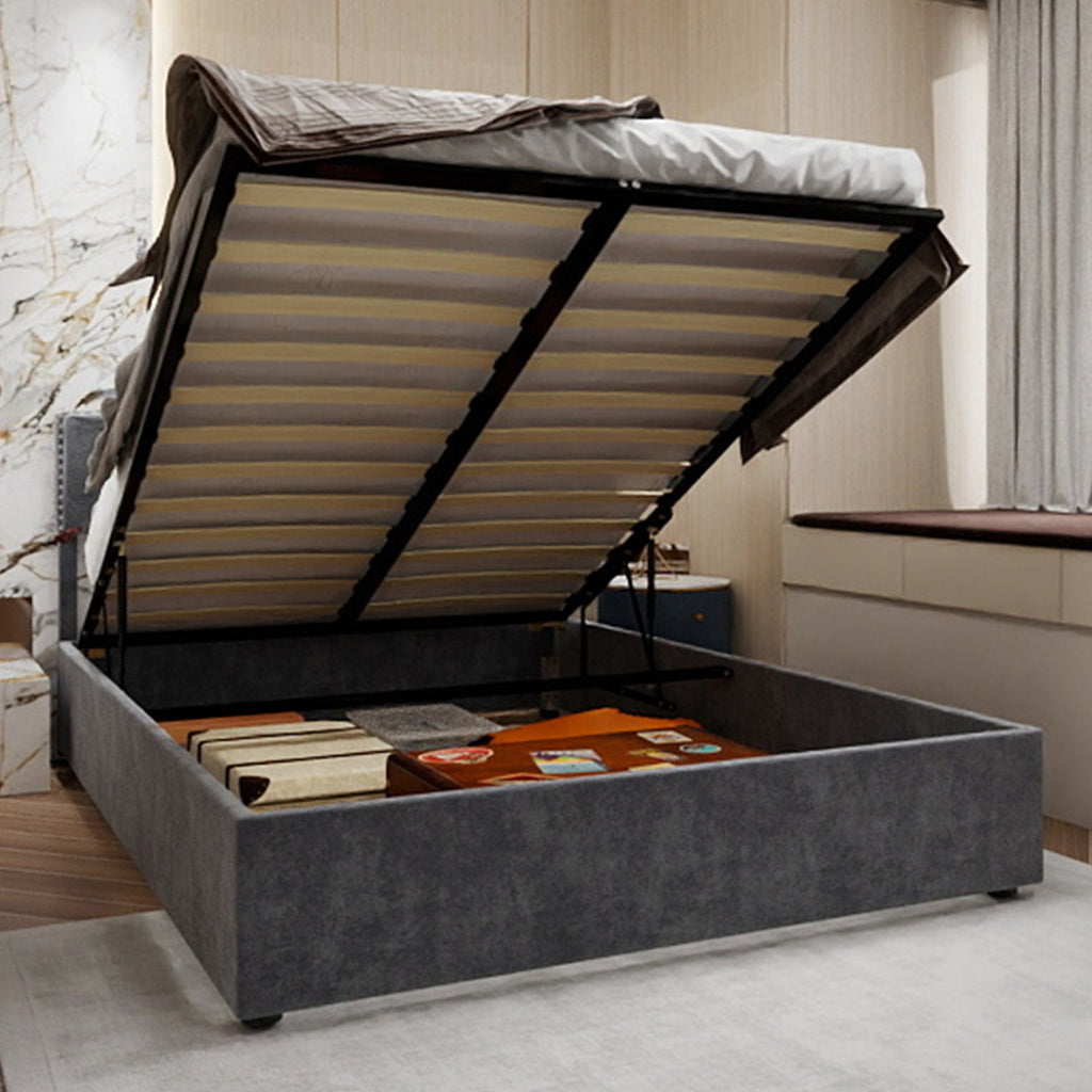 Modern Minimalist Soft Bed, High Box with Pneumatic Rod, 140*200CM, Gray