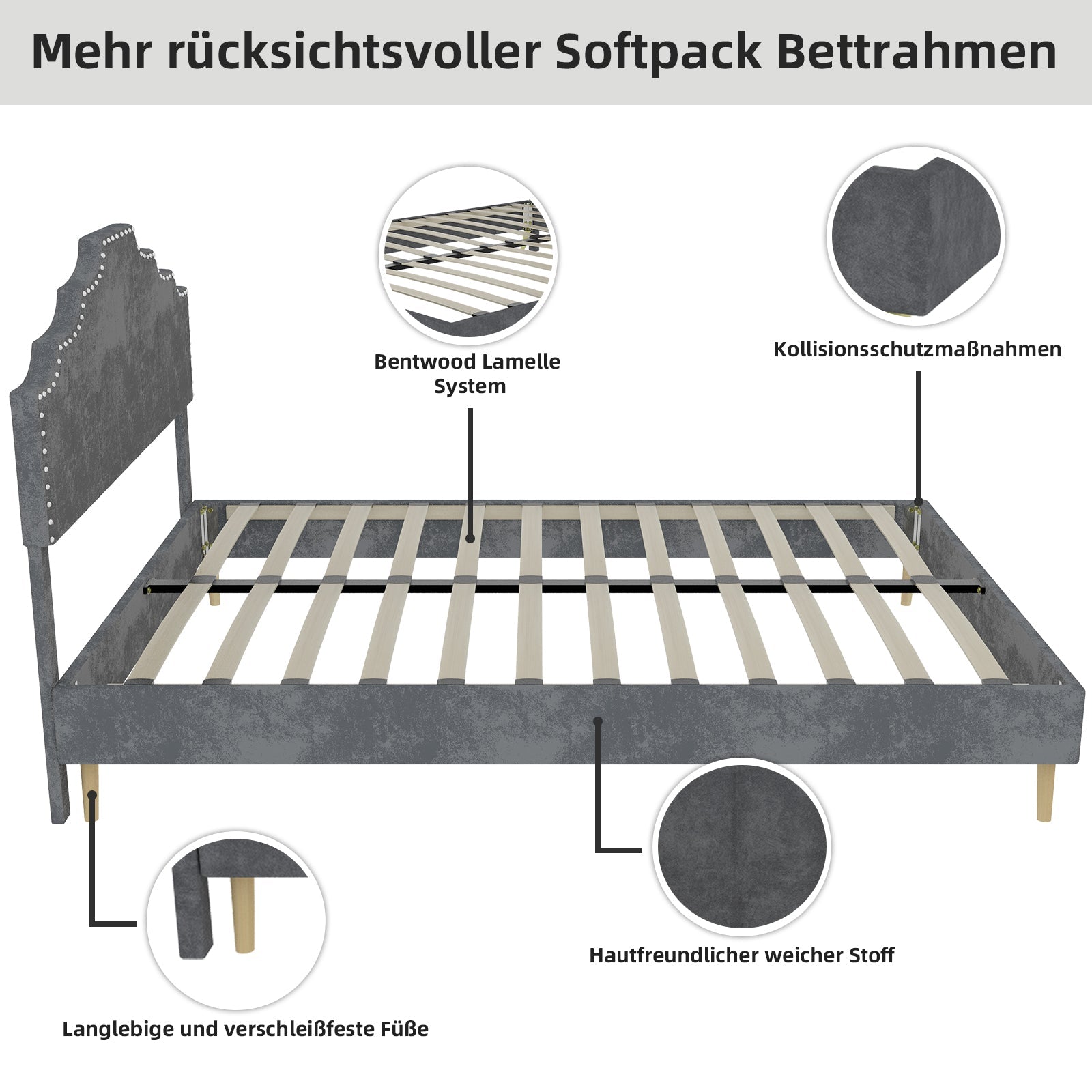 The bed frame's dimensions are rationally and scientifically designed to fit common mattress sizes such as 140x200 cm and 160x200 cm. It can be flexibly integrated into various bedroom layouts and meet various needs.