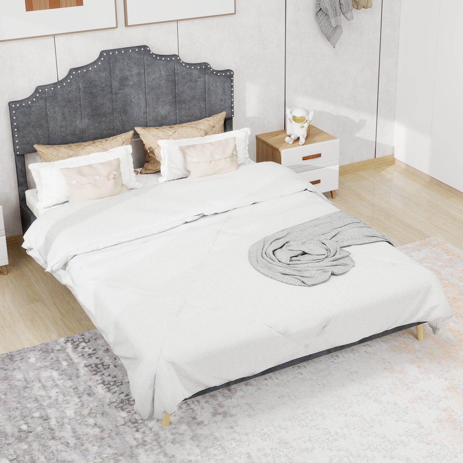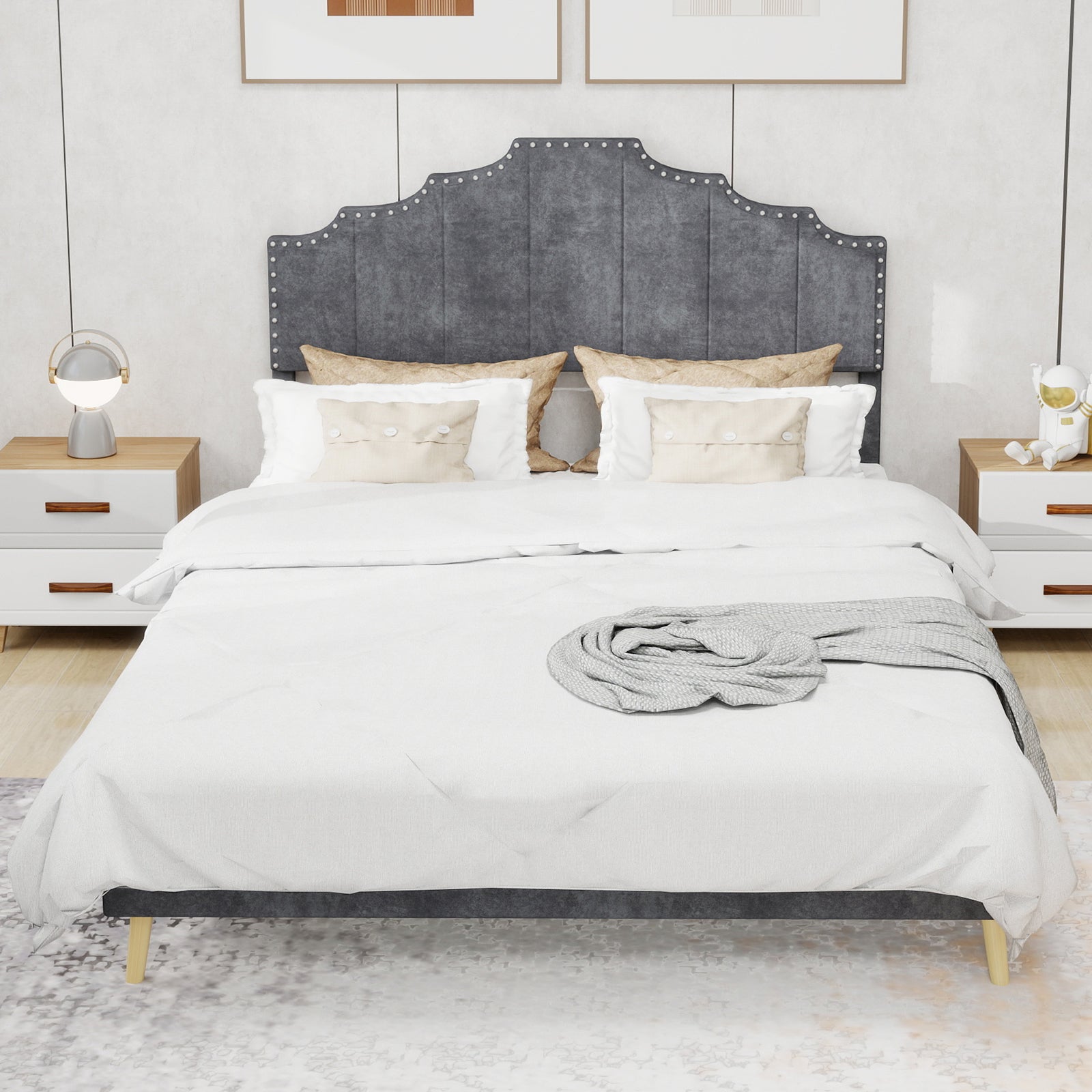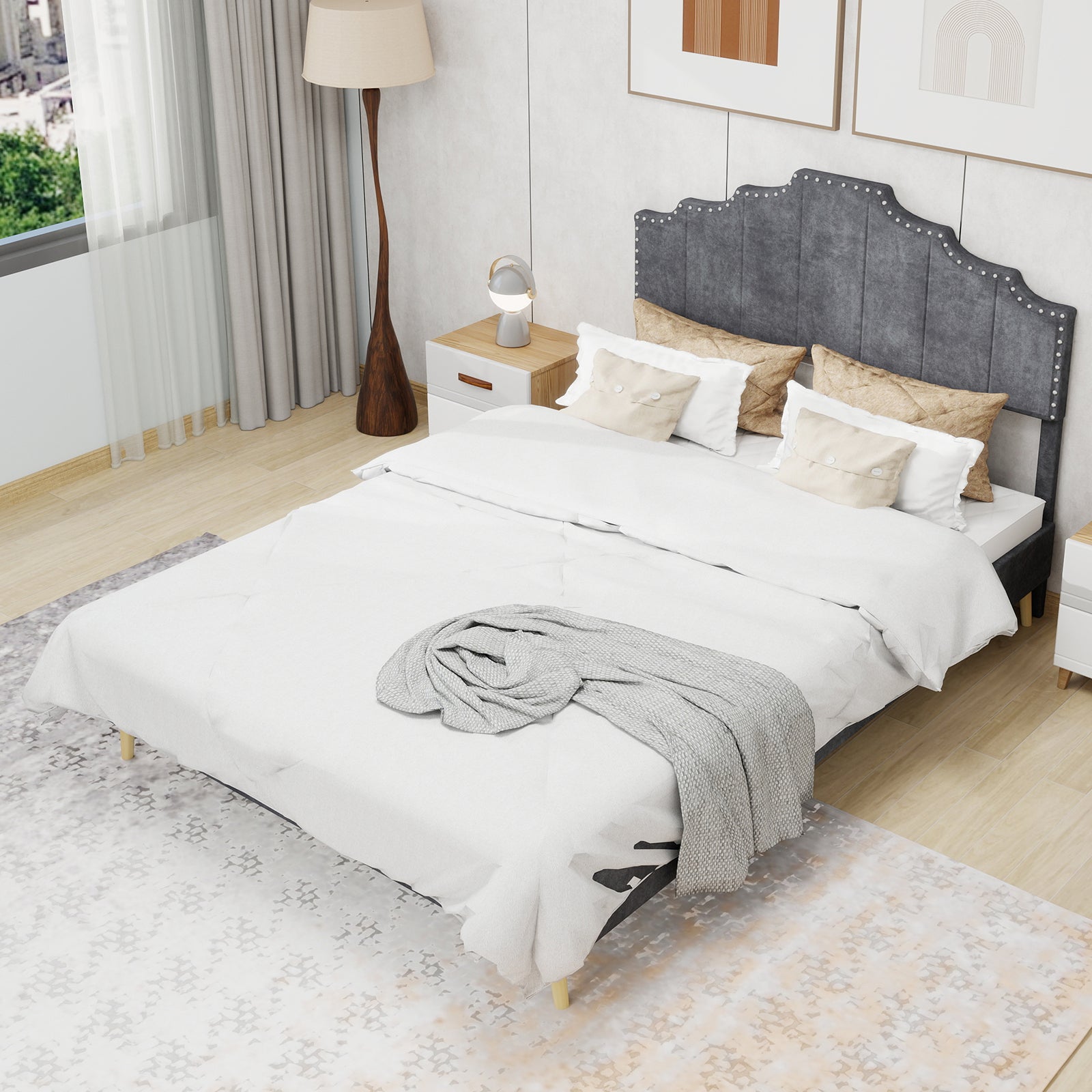The headboard features trendy geometric design elements and exquisite nailhead trim. With its sharp lines and original shape, it highlights a unique taste and effortlessly enhances the ambiance of the bedroom.