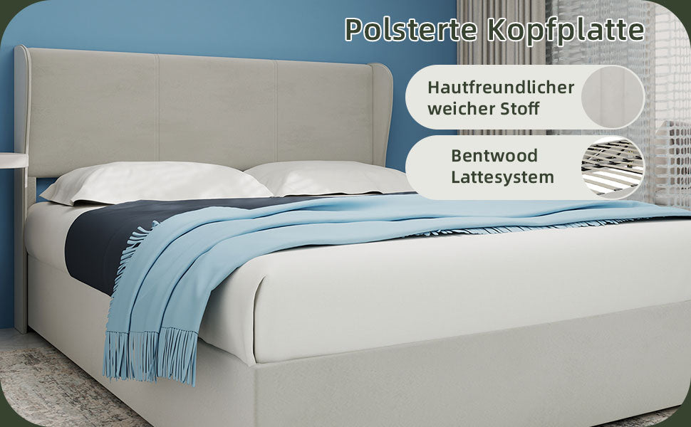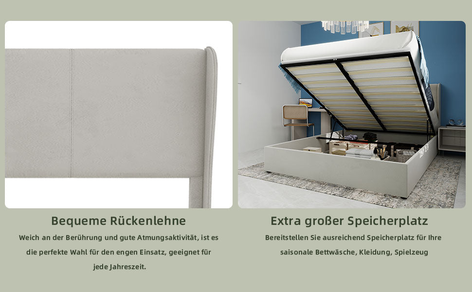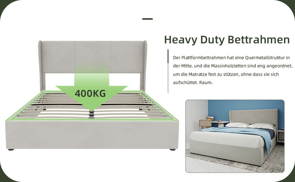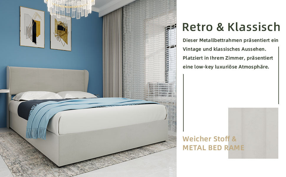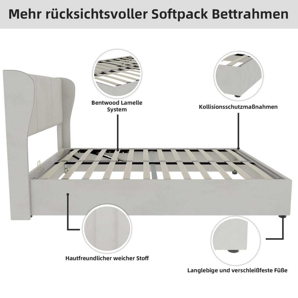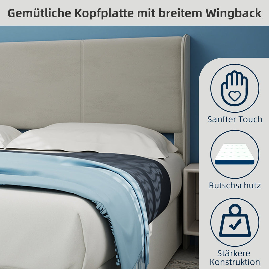 Modern Design: This bed frame showcases a modern, sophisticated style with a beautiful gray Dutch velvet upholstered headboard and backrest, perfectly complementing a variety of decor themes.