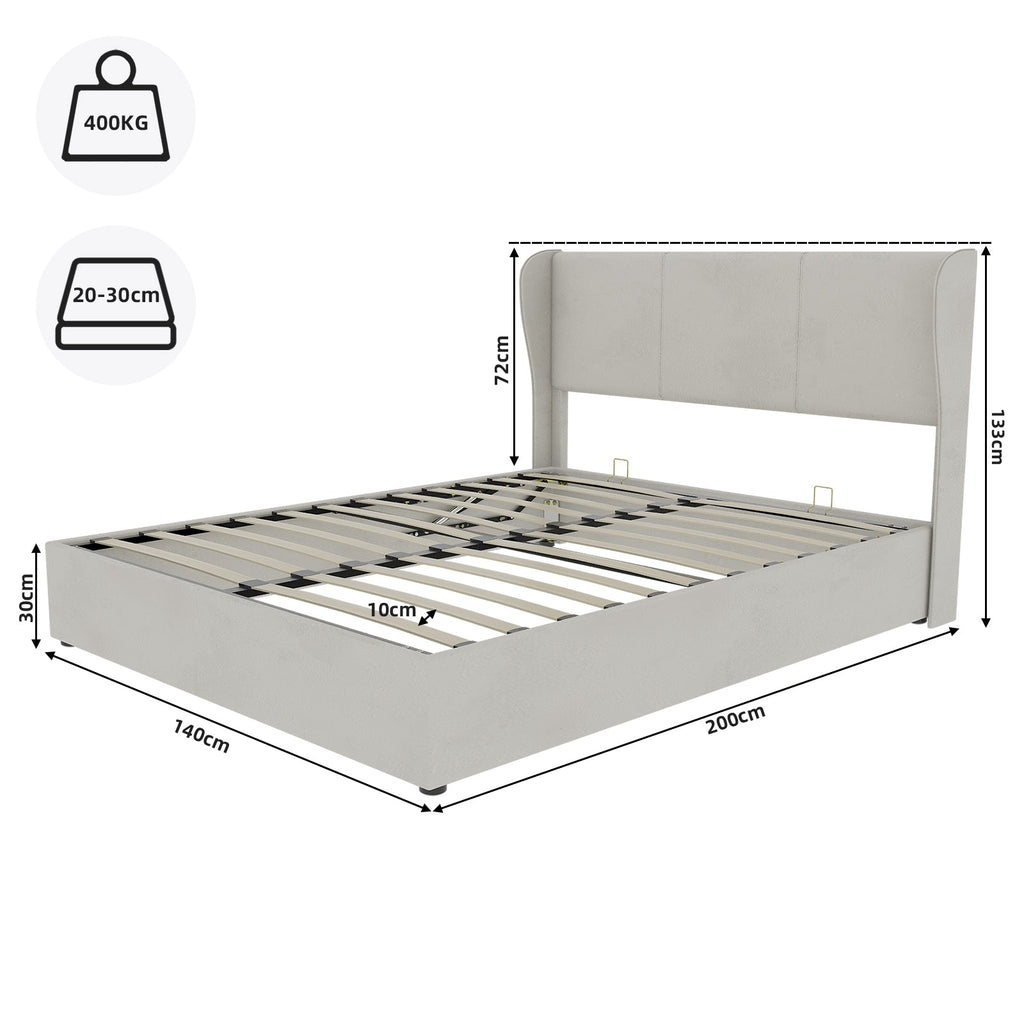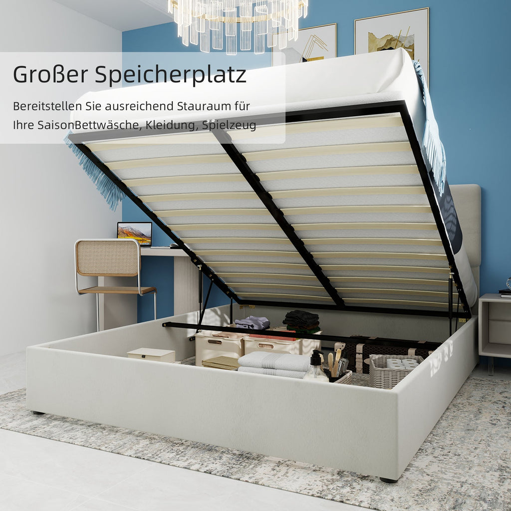 Modern Minimalist Upholstered Bed, Multi-Functional with Gas Lift, Beige