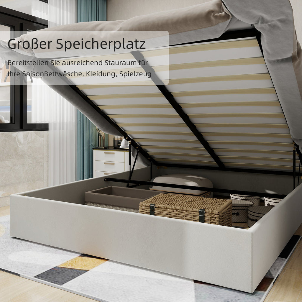 Modern Minimalist Upholstered Bed, Soft Cartoon-Design Headboard, Storage Base, Beige