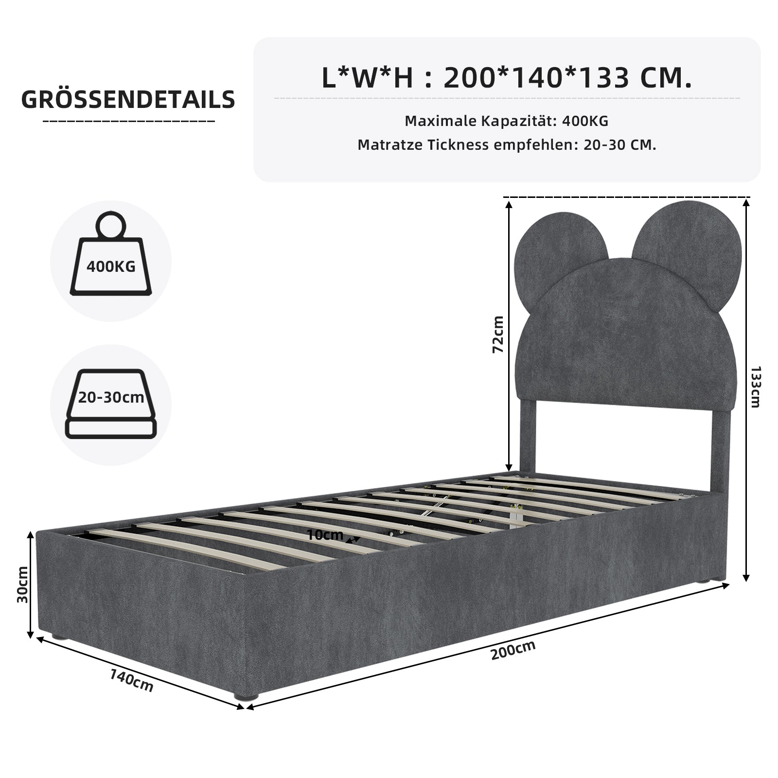Modern Minimalist Upholstered Bed with Cartoon Headboard, 140x200 cm, Grey