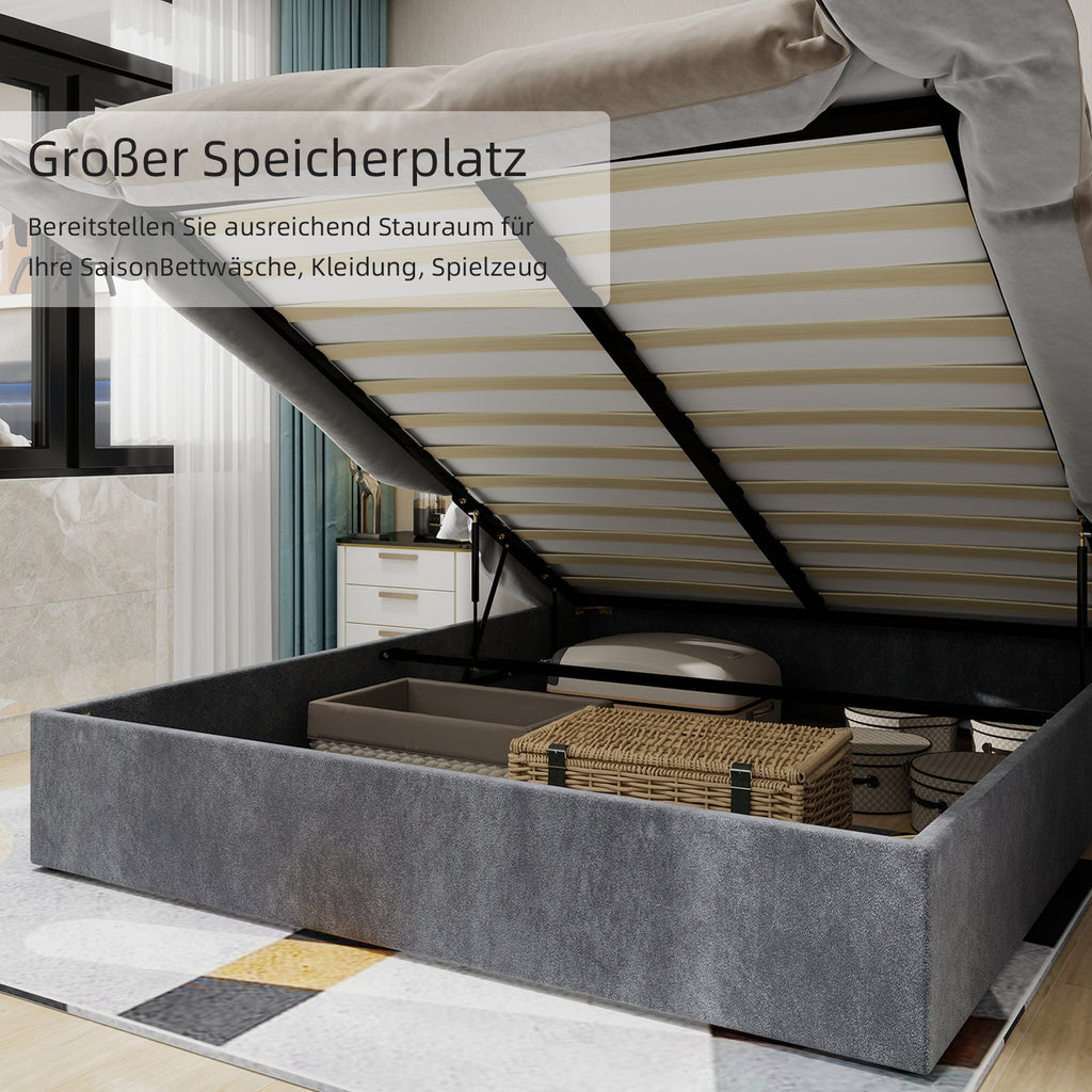 Pneumatic Rod Storage: The bed is designed with a simple pneumatic rod storage unit at the bottom of the bed, providing ample space for storing bedding, blankets, and toys, effectively maximizing the storage and functionality of the room.