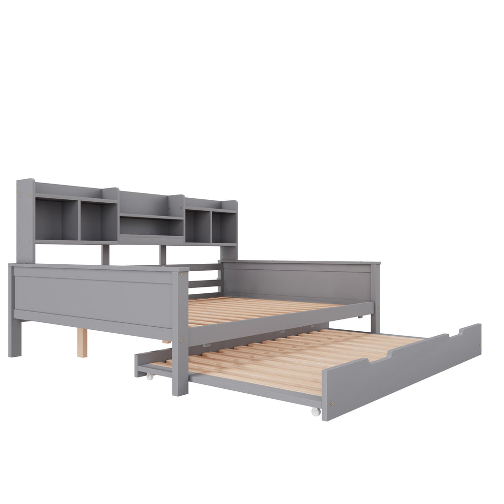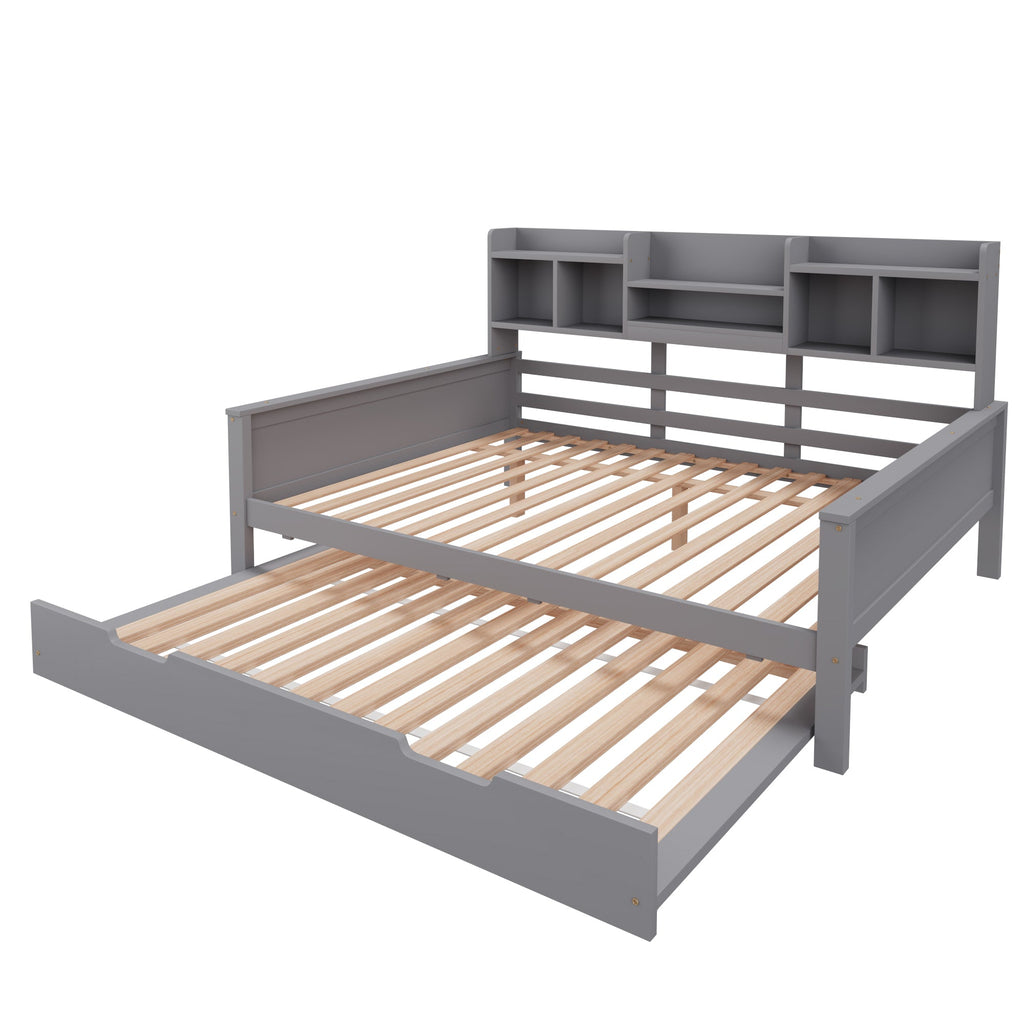 Pull-out Sofa Bed, 140x200CM with Storage, Pine Solid Wood, Gray