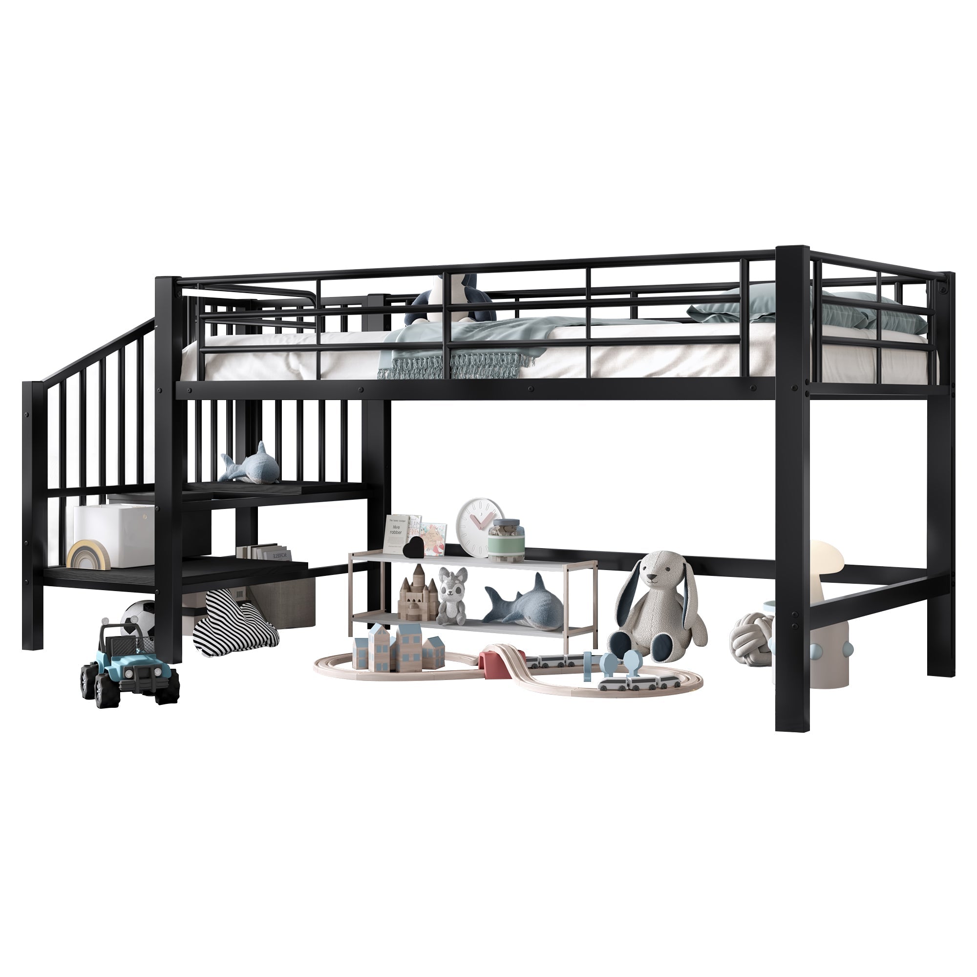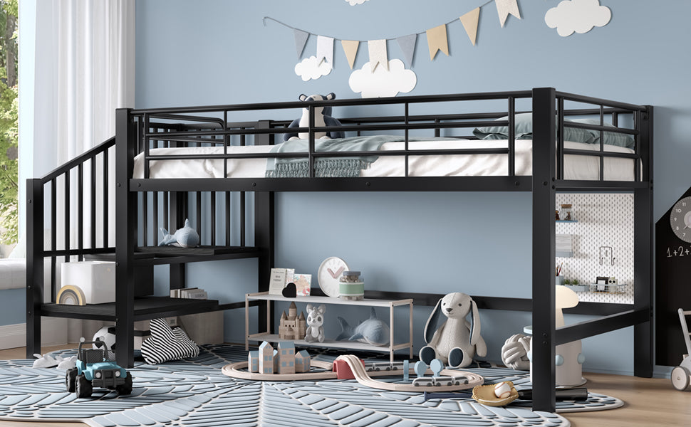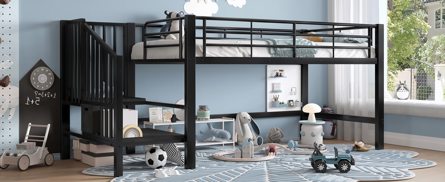 90 x 200 Mid-High Loft Bed with Storage Stairs, Black