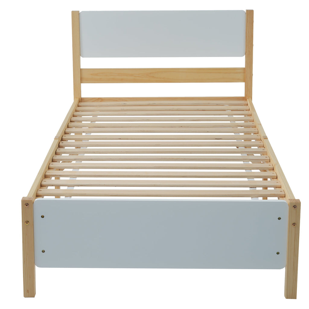Single Bed with Pine Wood Frame and MDF Headboard & Footboard, White + Natural