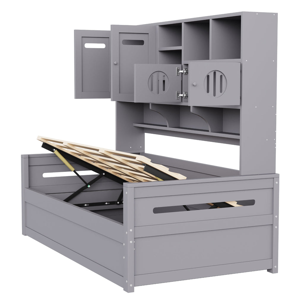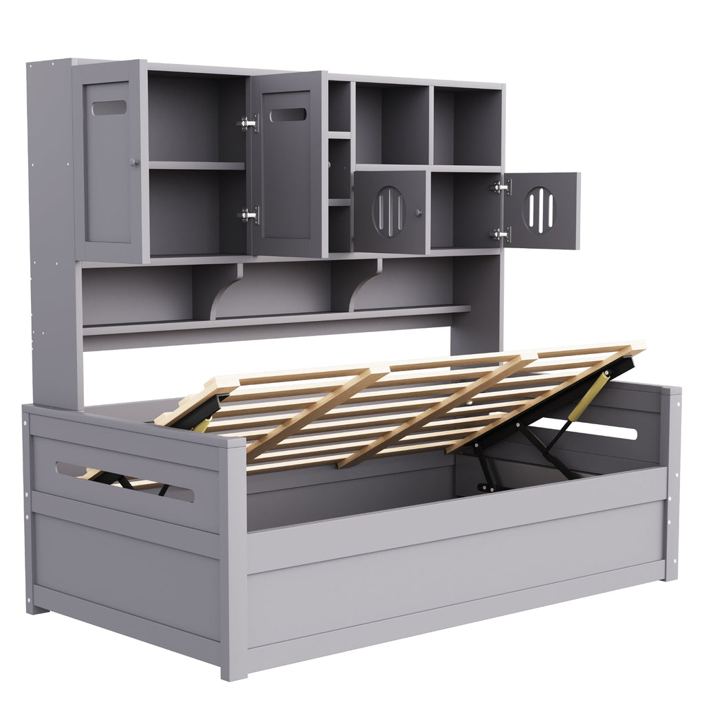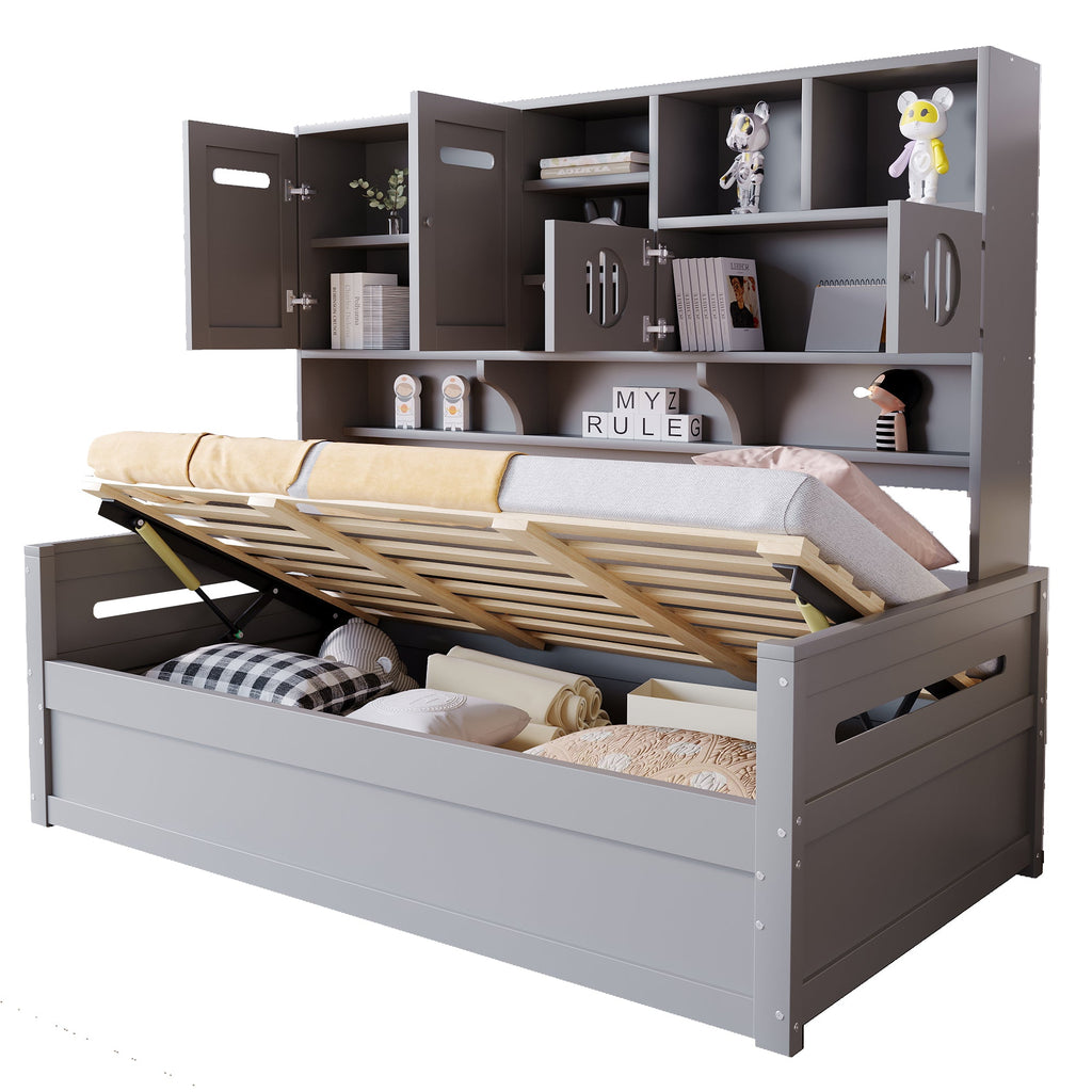Sofa Bed, 90 x 200 cm Multifunctional Hydraulic Single Bed Frame, Grey Wood