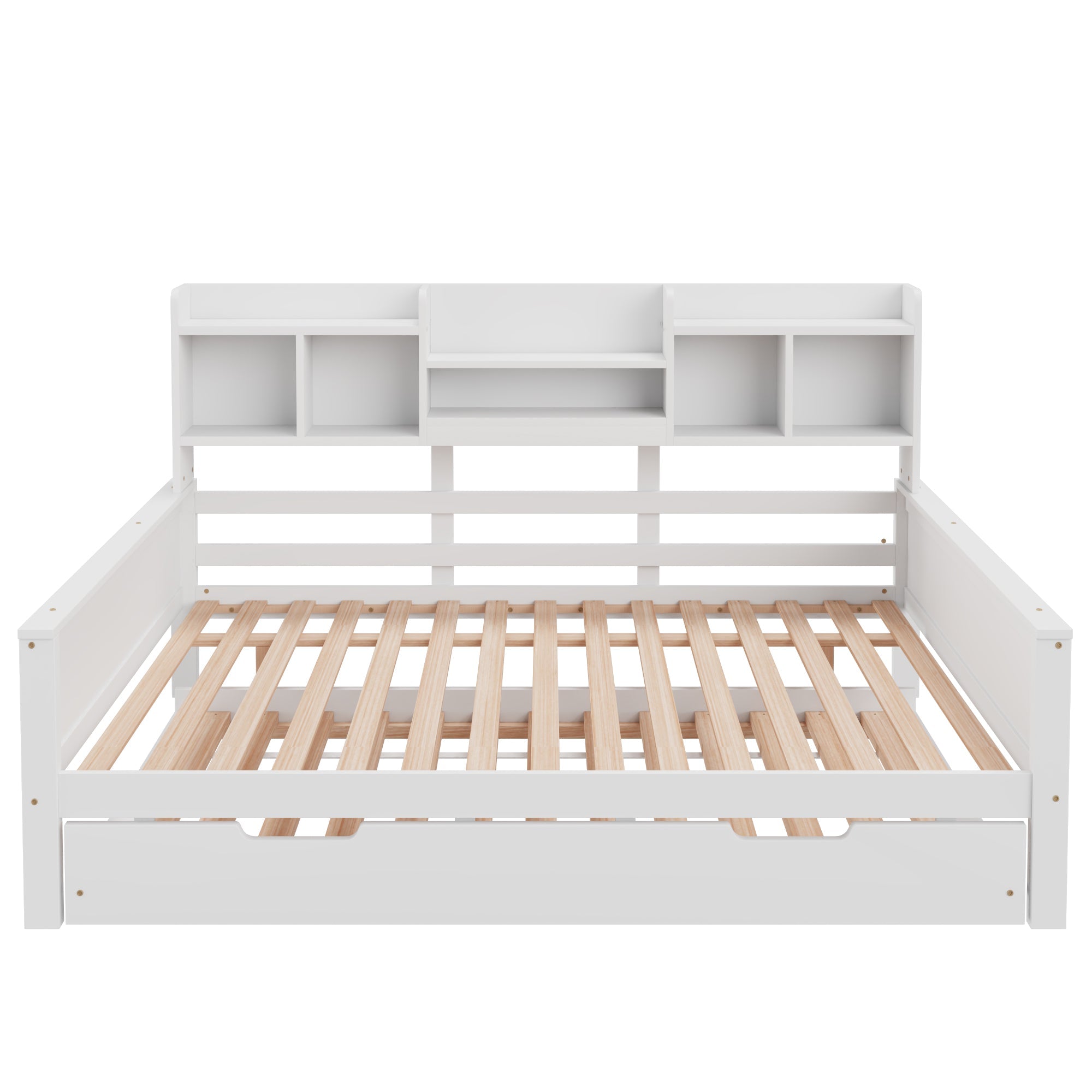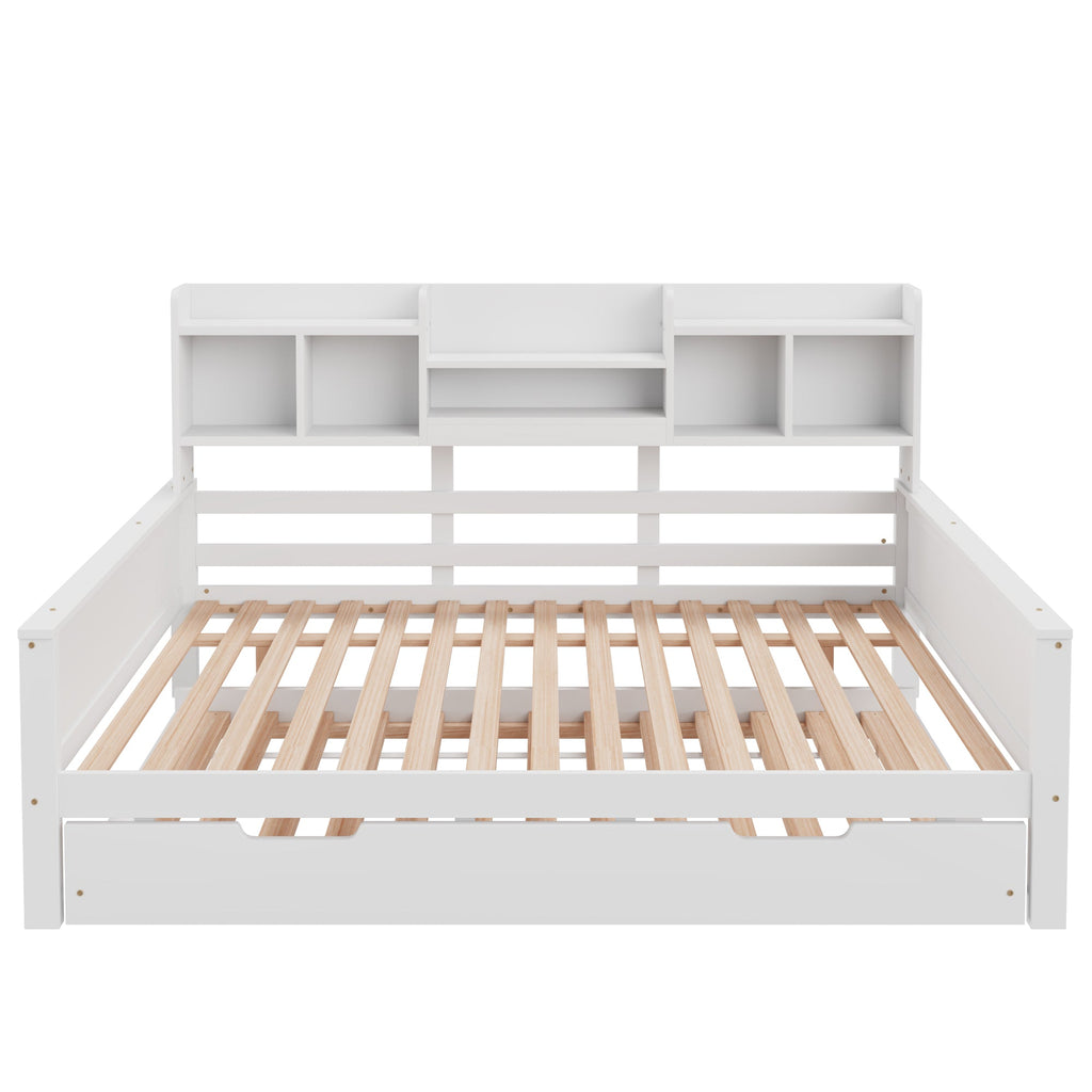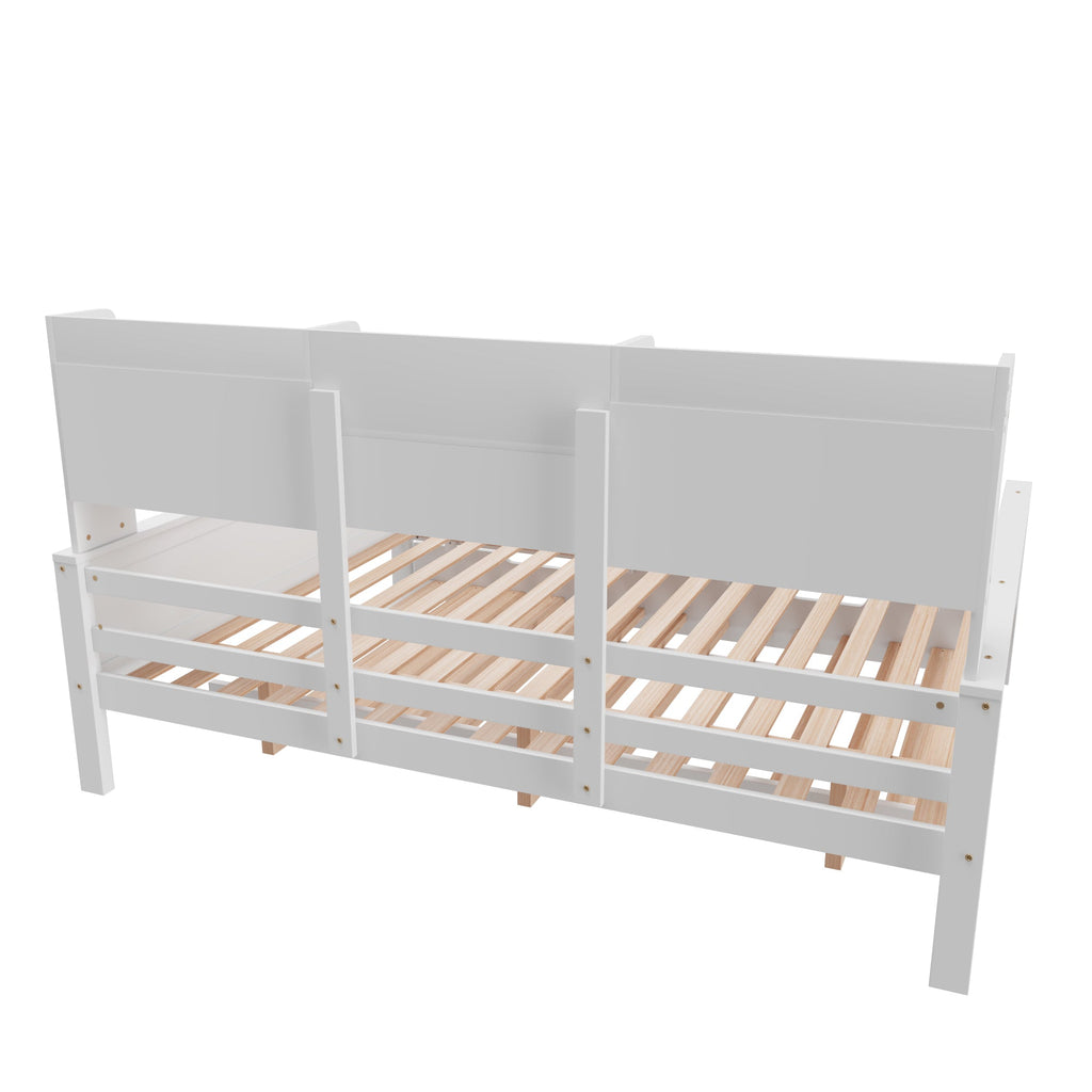 Sofa Bed, Pull-Out 140x200CM, Storage & Slatted Frame, Pine Wood White