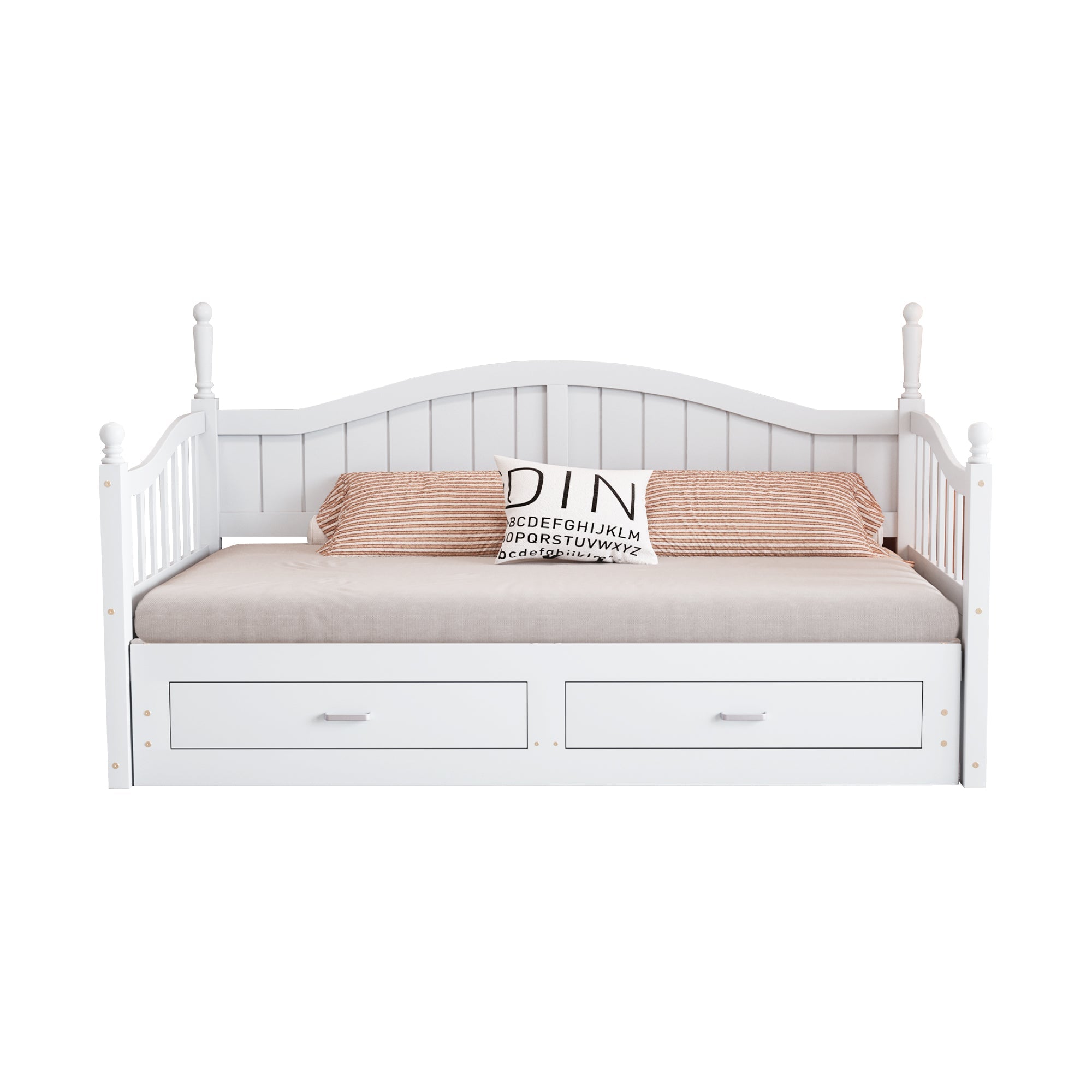 Sofa Bed, Pull-Out Multifunctional with Drawers & Slatted Frame, Pinewood White