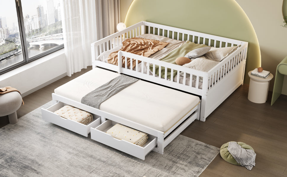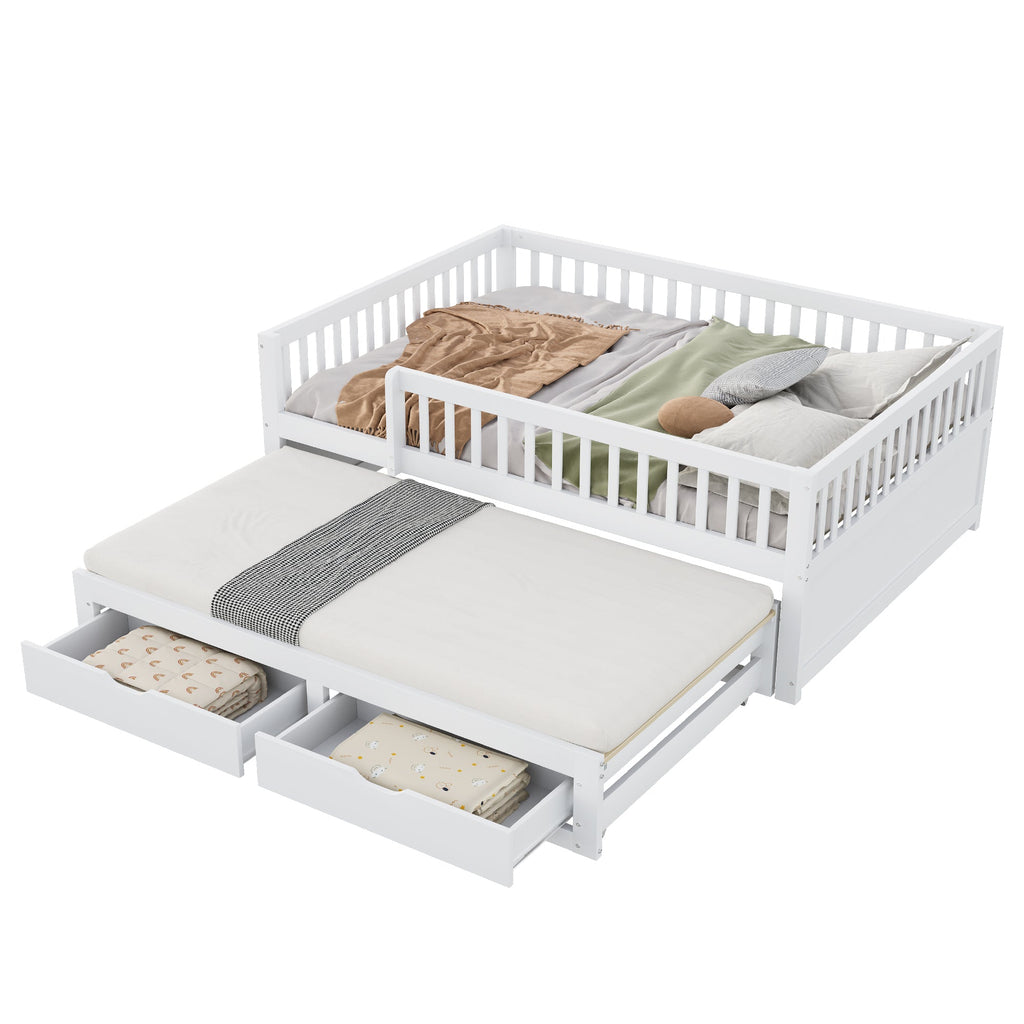 Sofa Bed, Pull-Out with Safety Gate & 2 Drawers, Solid Wood, White