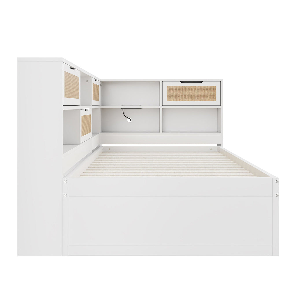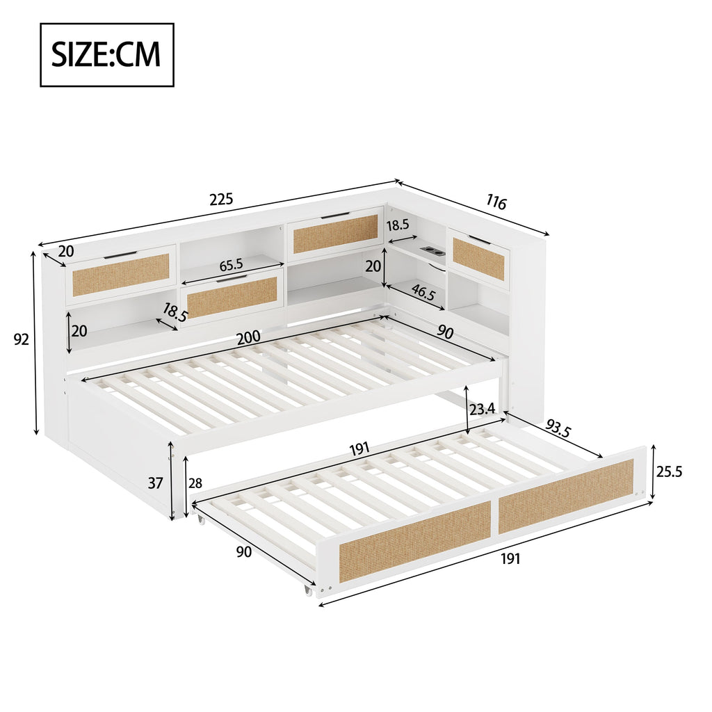 Sofa Bed, Wooden 90*200 Pull-out Multifunctional Single with Storage & Charging Port, White
