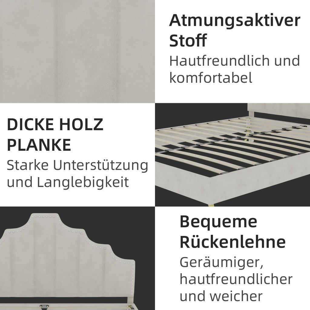 Soft Bed, Minimalist Headboard, 140*200CM, Beige