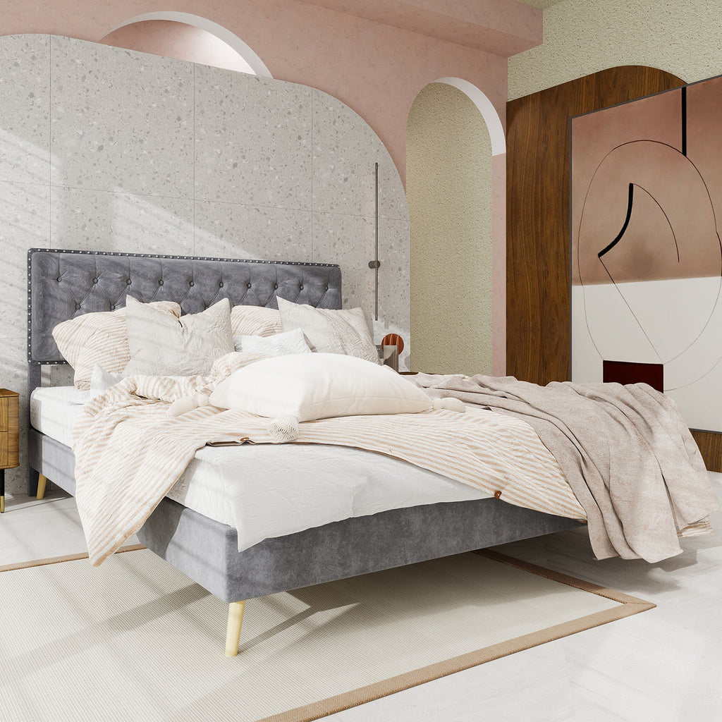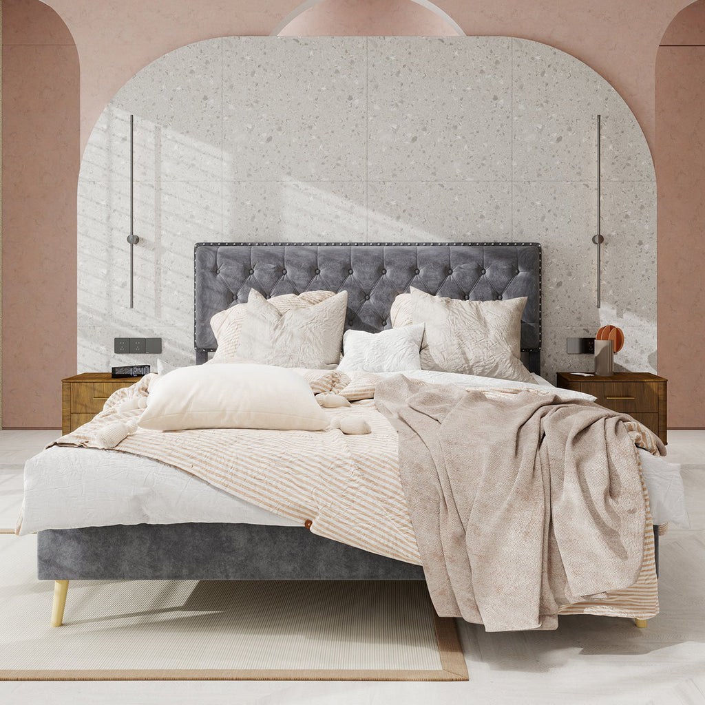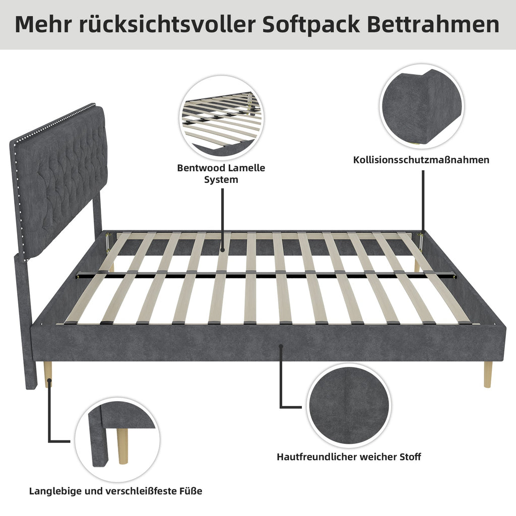 Soft Bed, Modern Minimalist Headboard 140x200CM, Gray