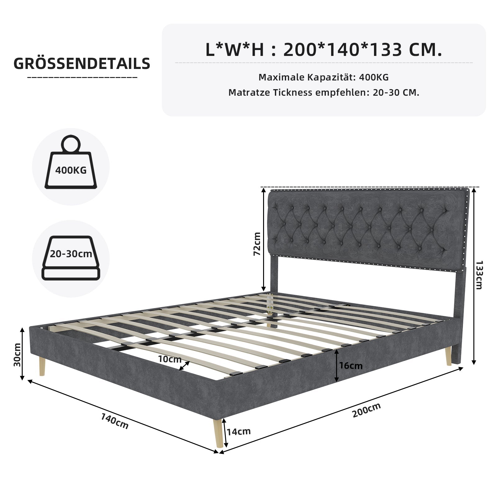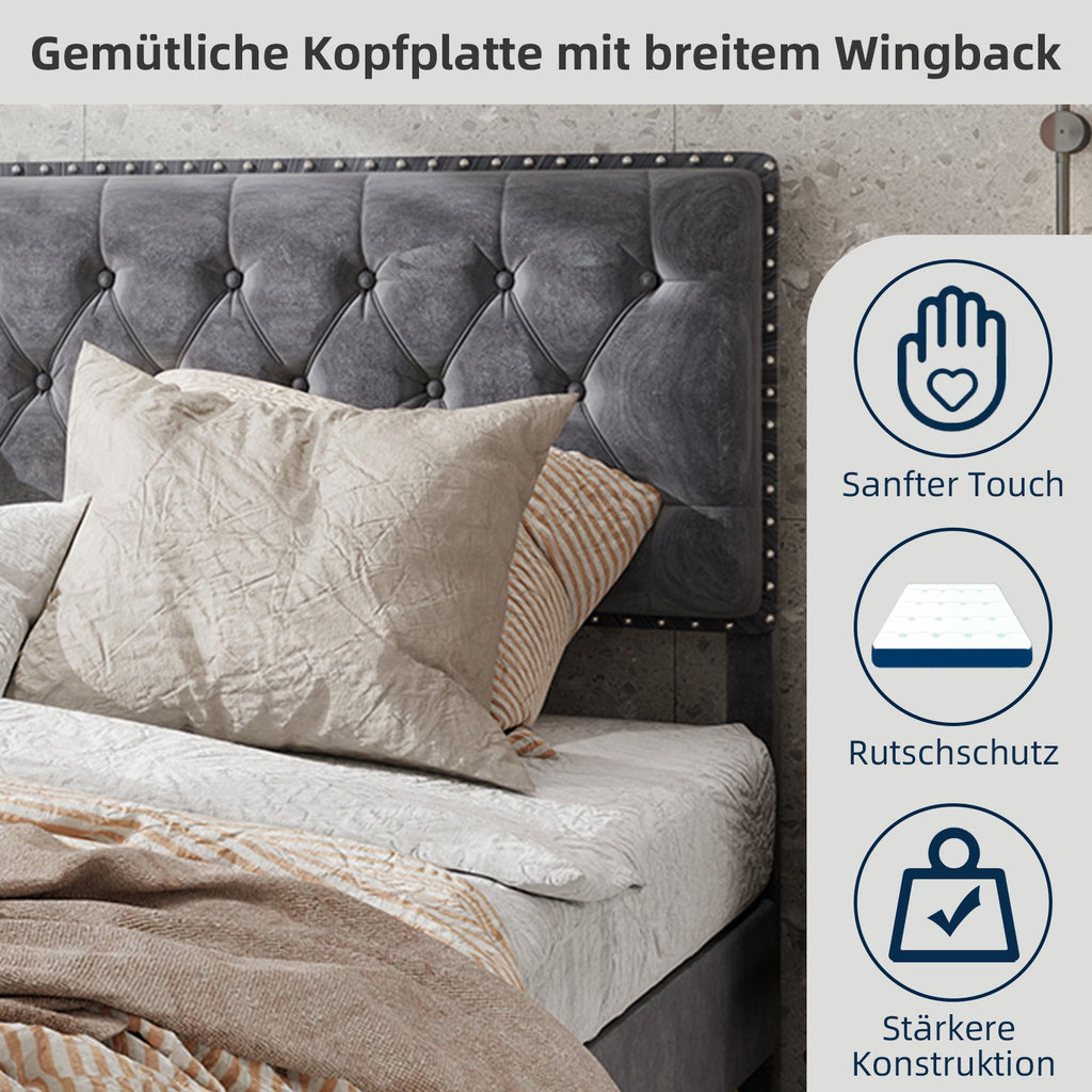 Perfect Size: This extra-modern bed frame is available in two sizes, 140cm x 200cm and 160cm x 200cm, perfect for your bedroom. The tall headboard adds a touch of glamour, while the overall size ensures a comfortable and spacious sleeping area. Please note that the mattress is not included.