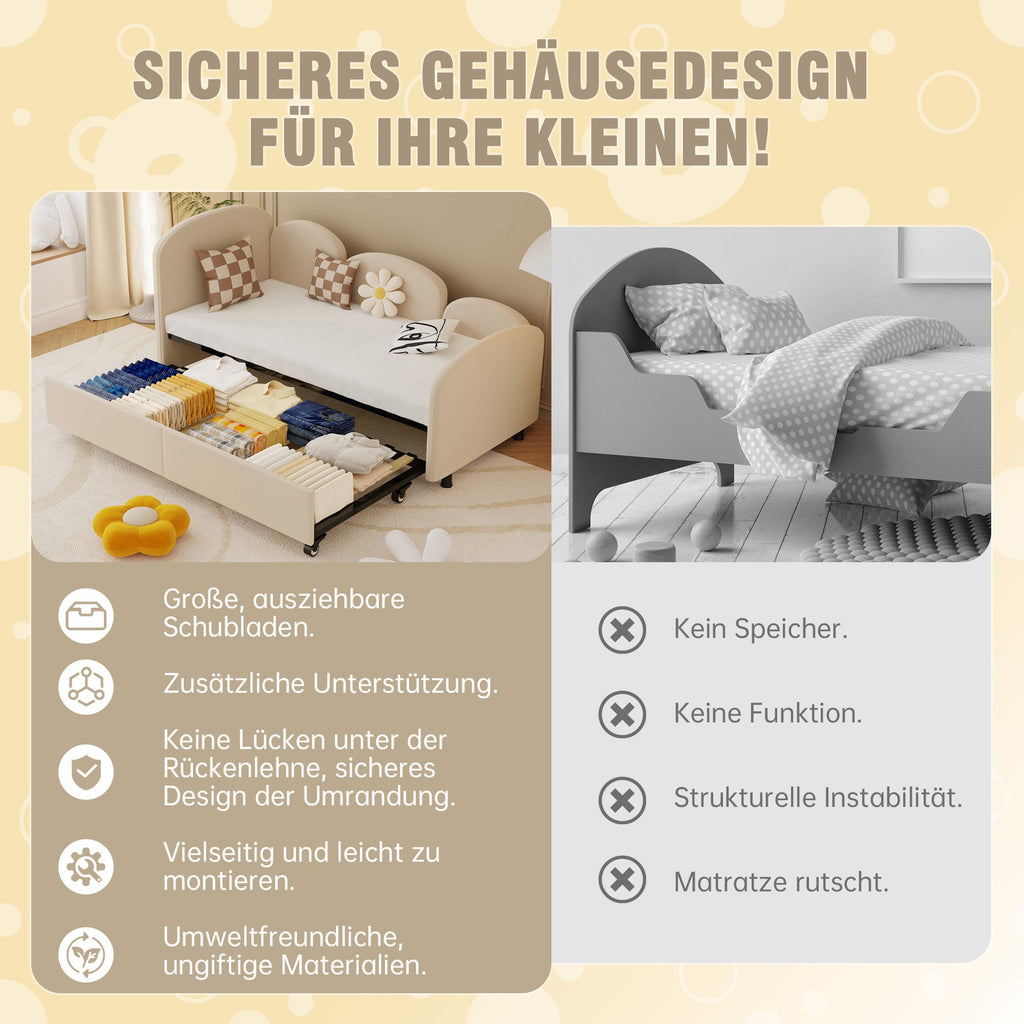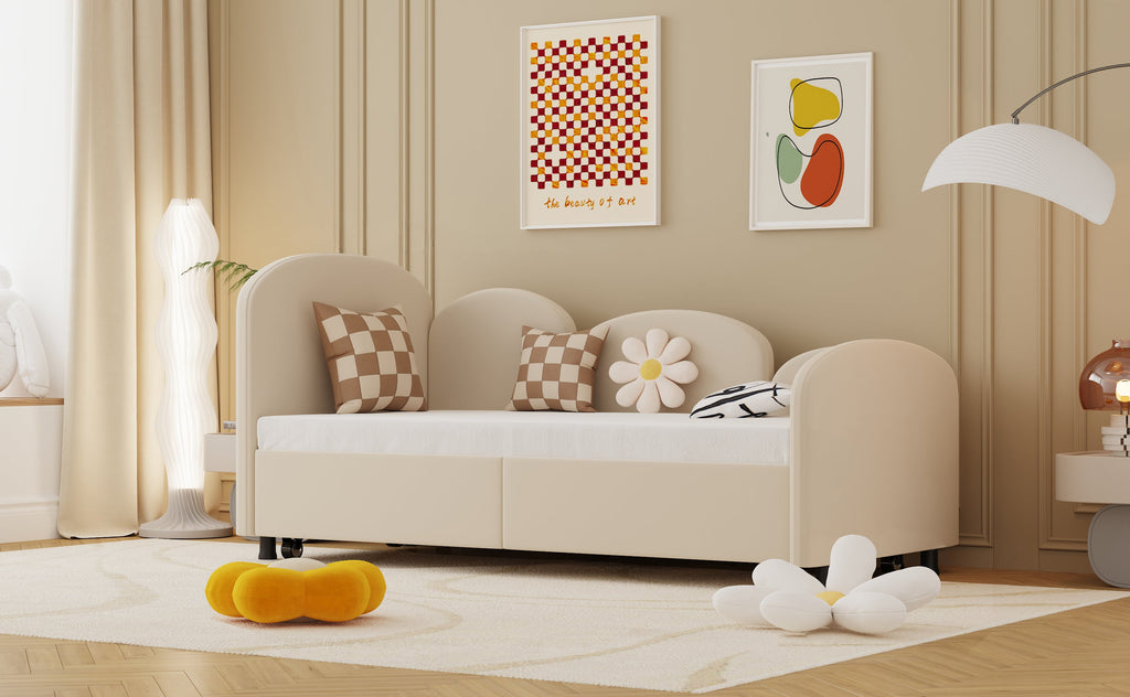 SOFTSEA Twin Size Daybed with Storage Drawers, Modern Sofa Bed, Velvet Upholstered