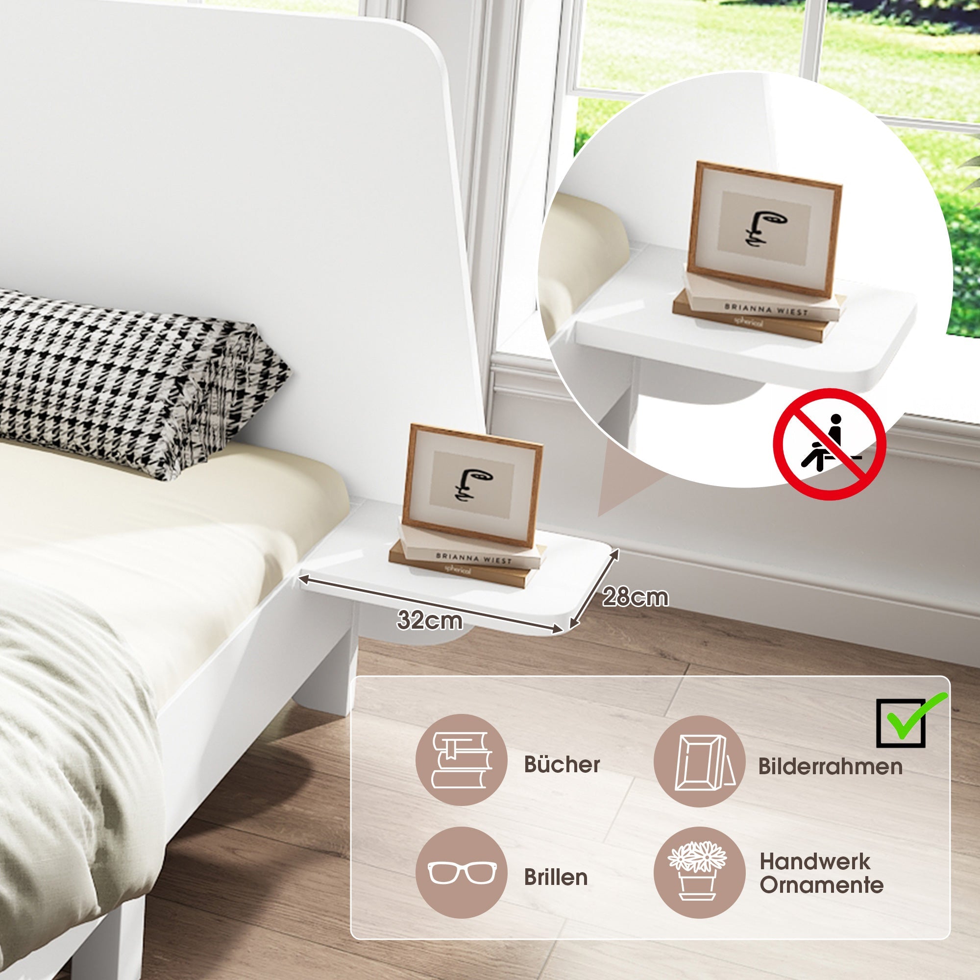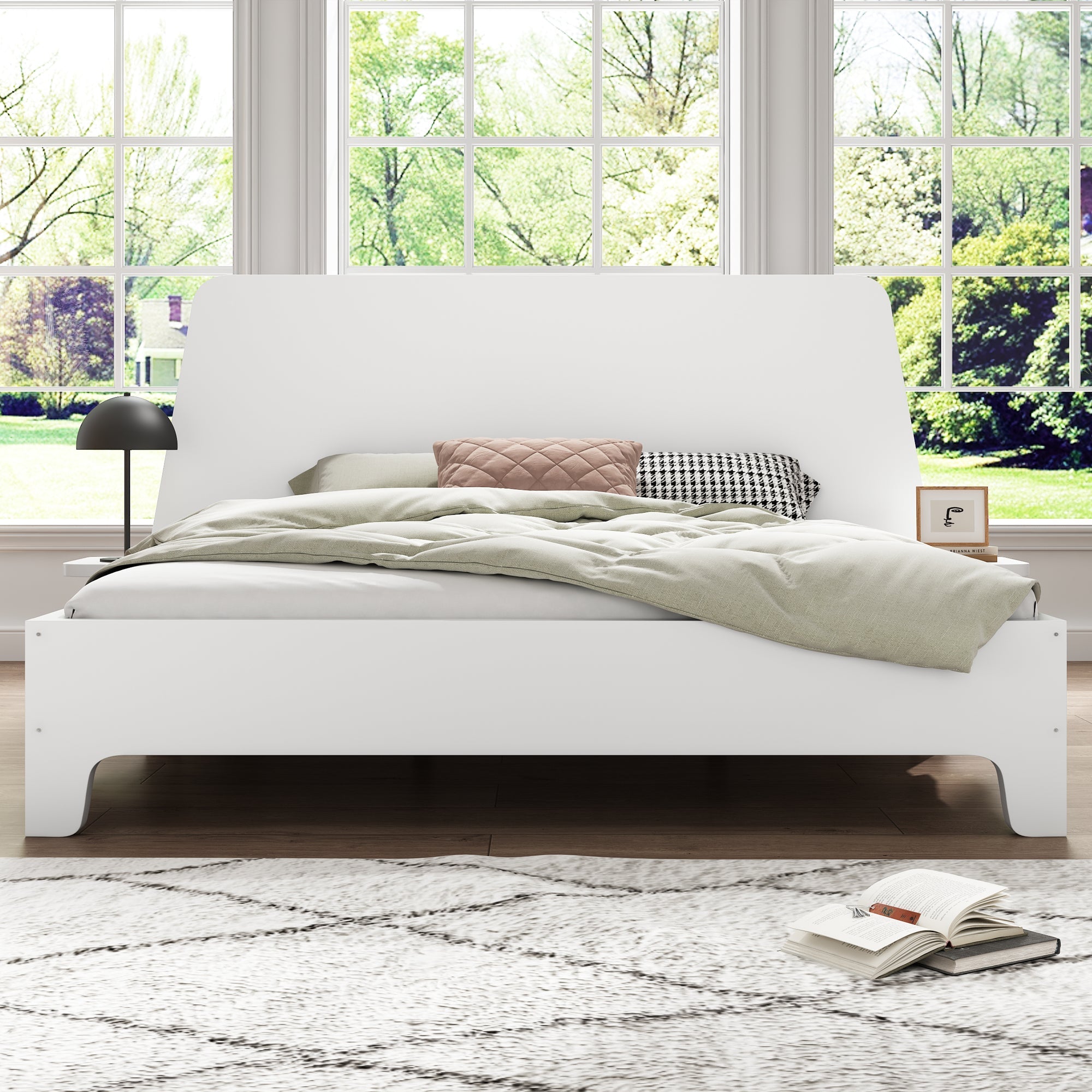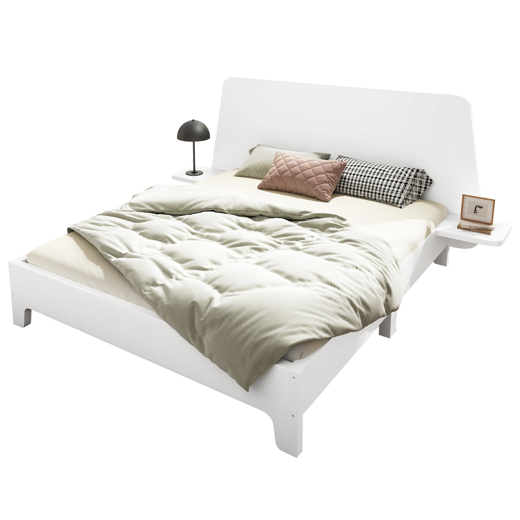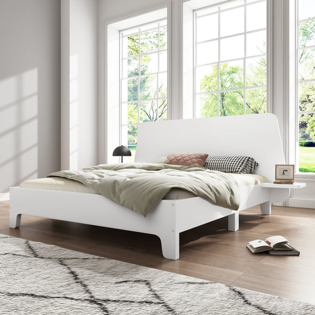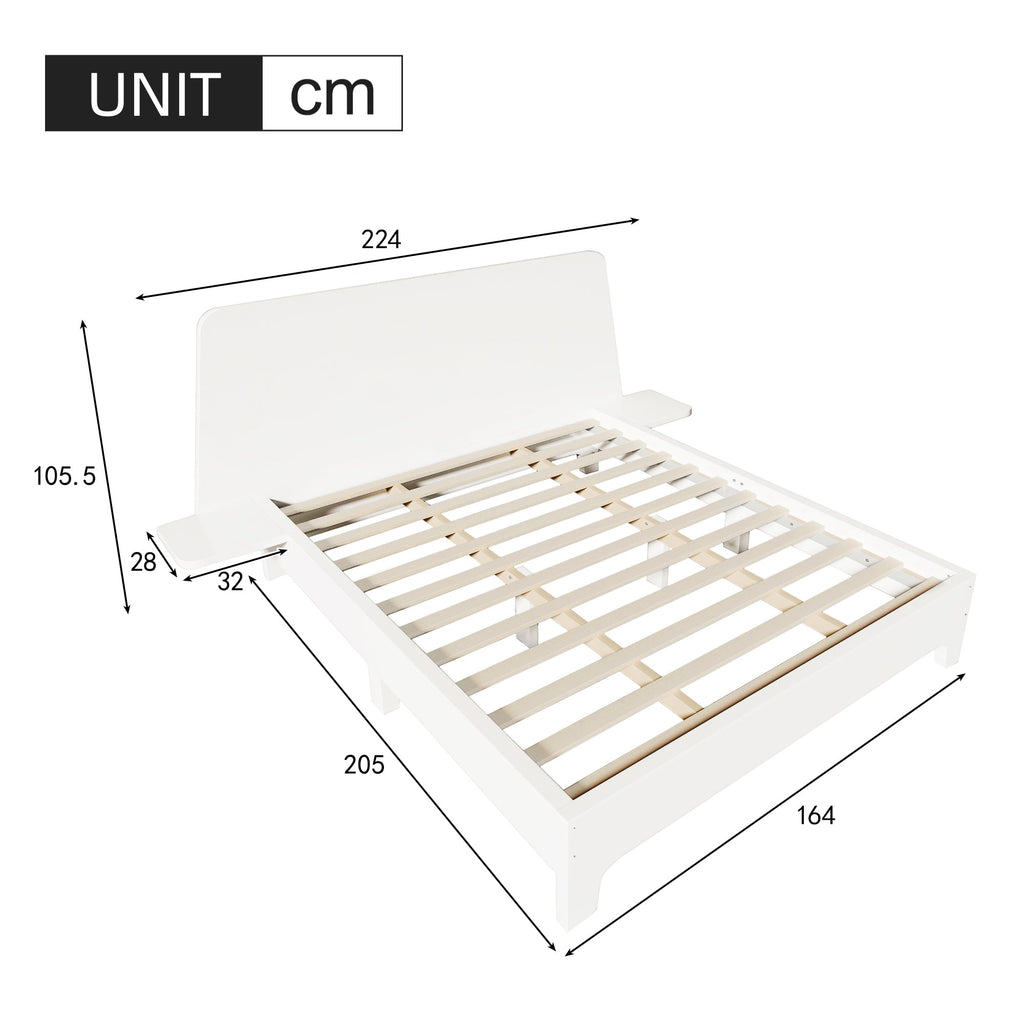 Solid Wood Bed 160x200cm, Double Bed Frame with Storage Headboard and Slatted Frame, White