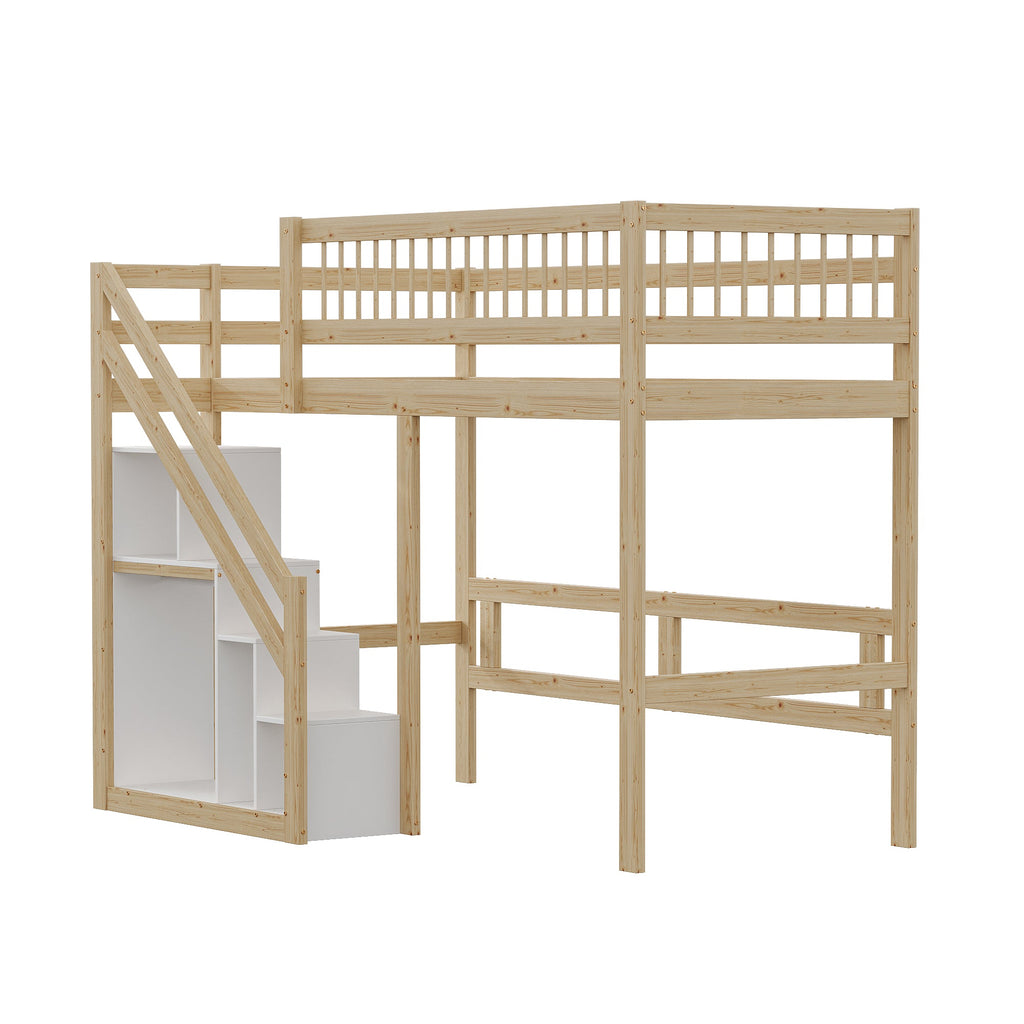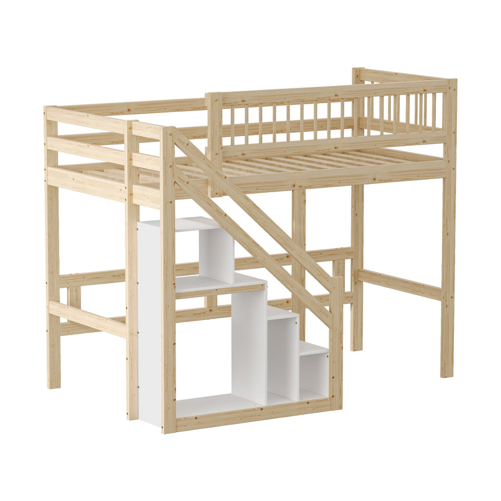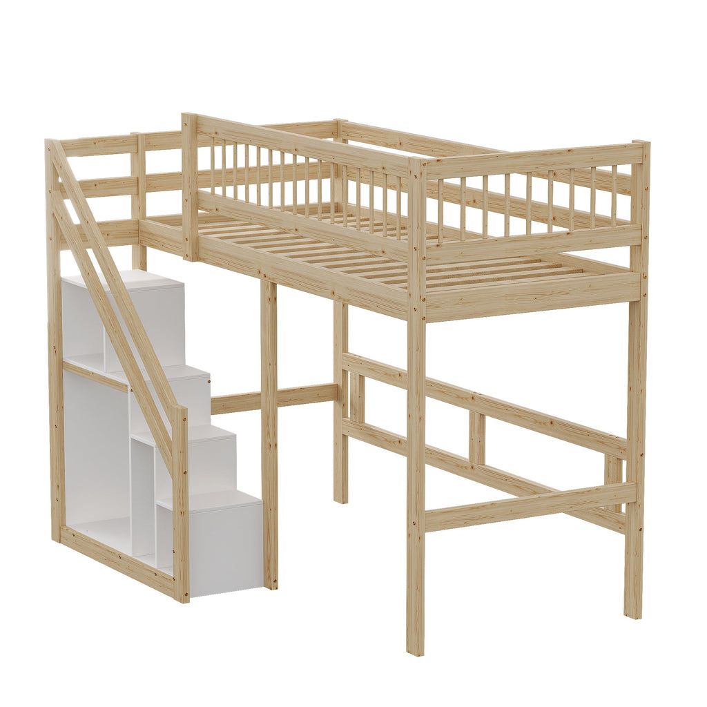 Solid Wood Bed 90*200, Storage Stairs, High Version, Wood Color