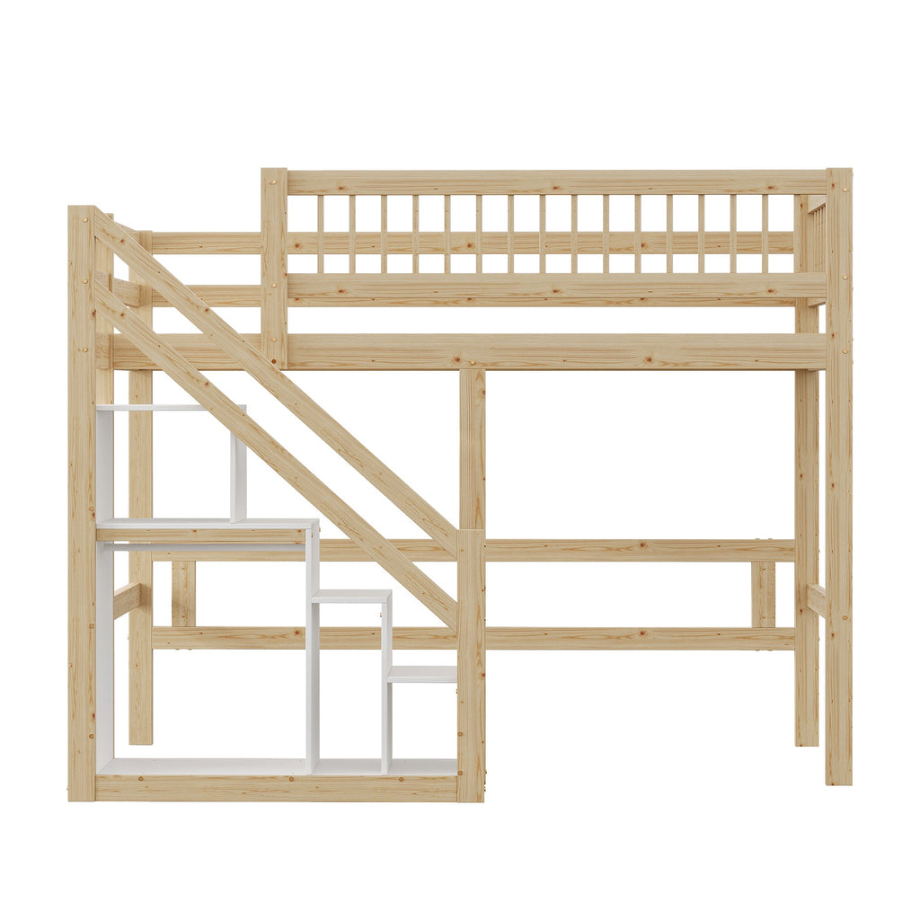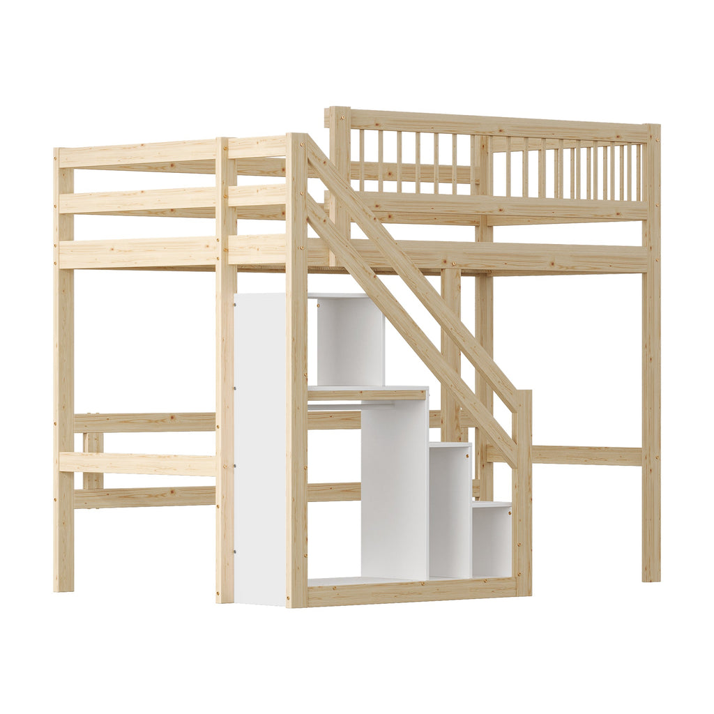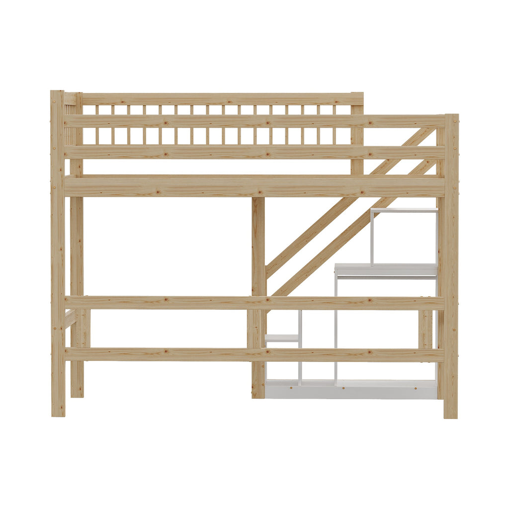 Solid Wood Bed 90*200, Storage Stairs, High Version, Wood Color