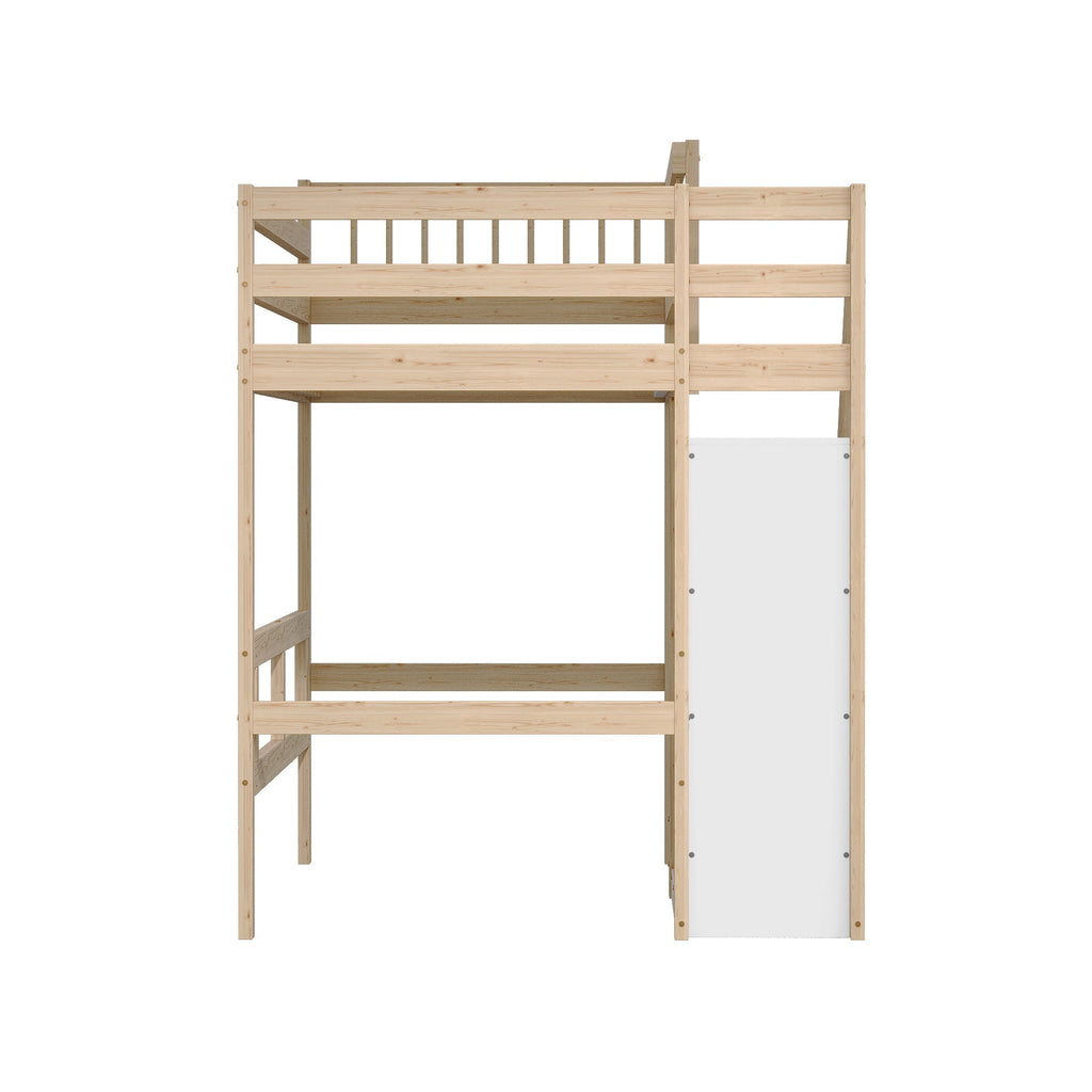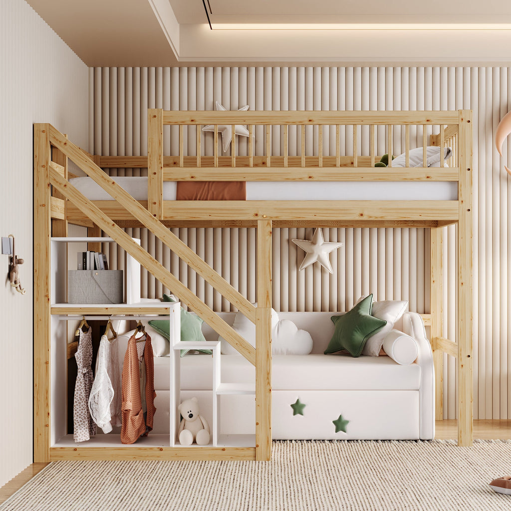 One of the most striking features of this bed is the step with integrated storage. Each step has been designed to serve as storage, providing ample space for toys, books, clothes, and other essentials, keeping them organized and easily accessible. This clever design helps keep the room clutter-free and maximizes space, making it an ideal solution for smaller bedrooms. A sofa or desk can be placed under the bed to maximize your child's needs, whether as a playful hideaway for your child or a stylish retreat for your teen.