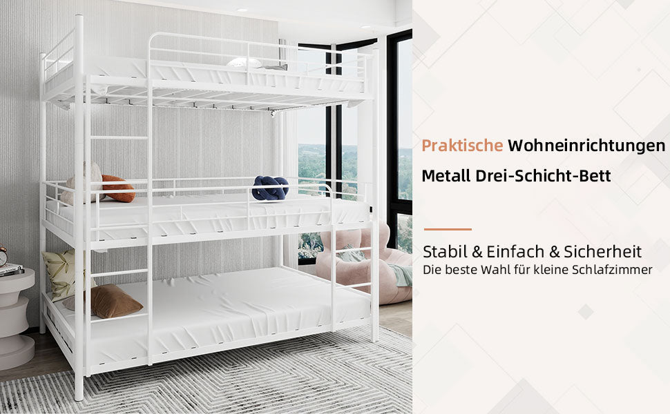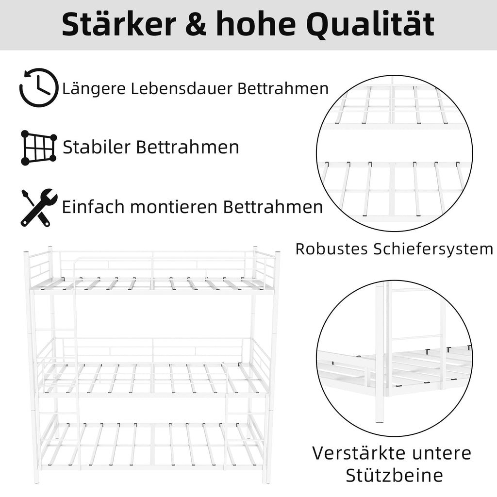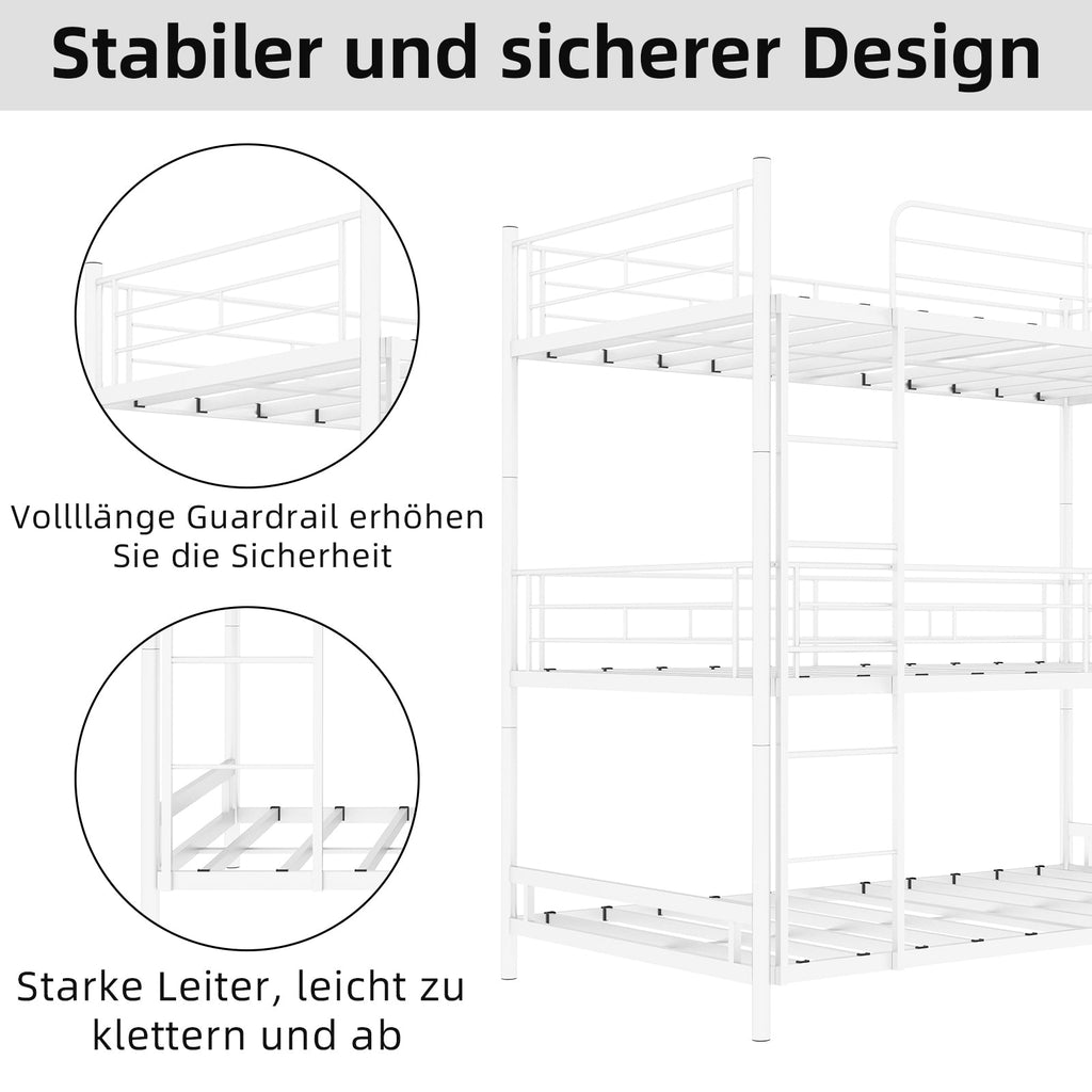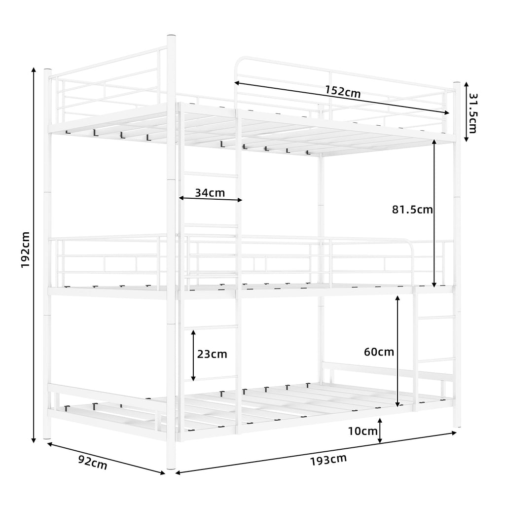 Triple Frame Bed, Heavy-Duty with Built-in Ladder & Railing, Metal