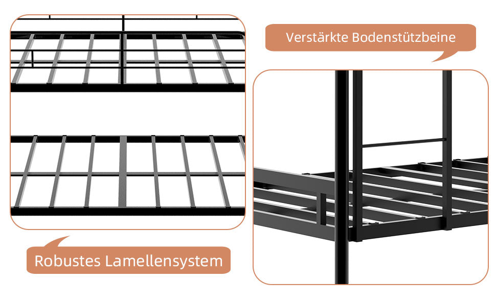 No Springs Required: Say goodbye to bulky springs! Our bunk beds are equipped with sturdy metal slats that provide excellent mattress support and prevent sagging. This not only extends the life of the bed but also simplifies installation and maintenance. You can enjoy a comfortable night's sleep without having to pay extra for springs.
