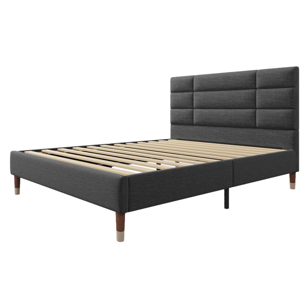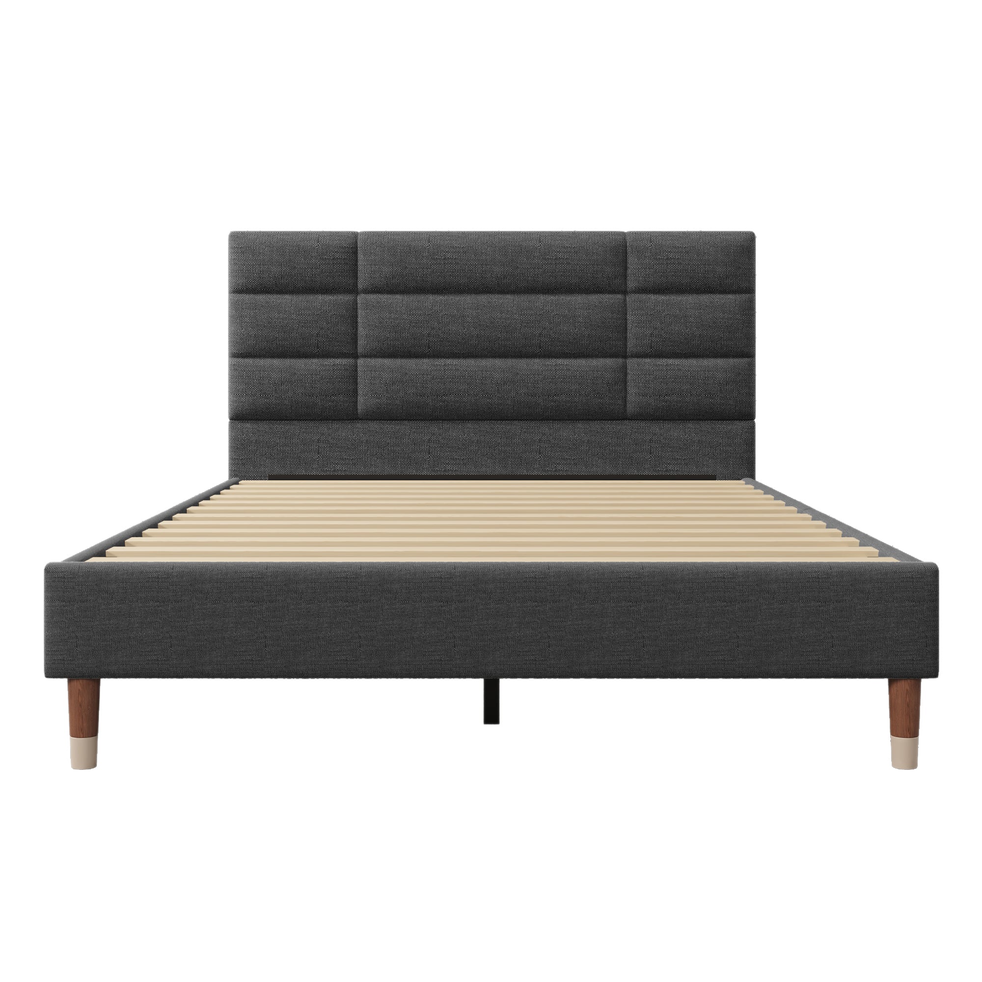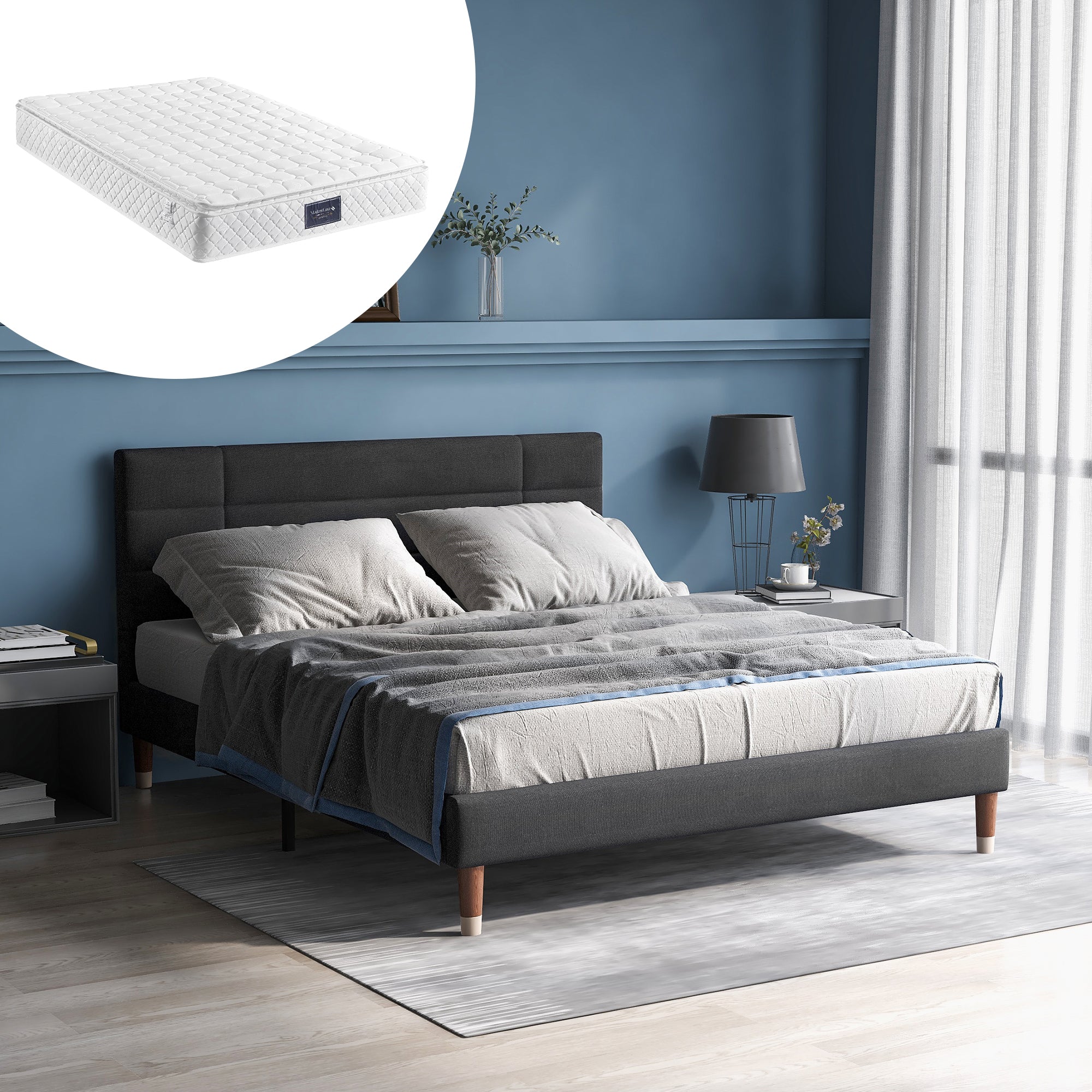 Upholstered Bed, 140x200cm Double with Bed Box & Slatted Frame, Innerspring Mattress